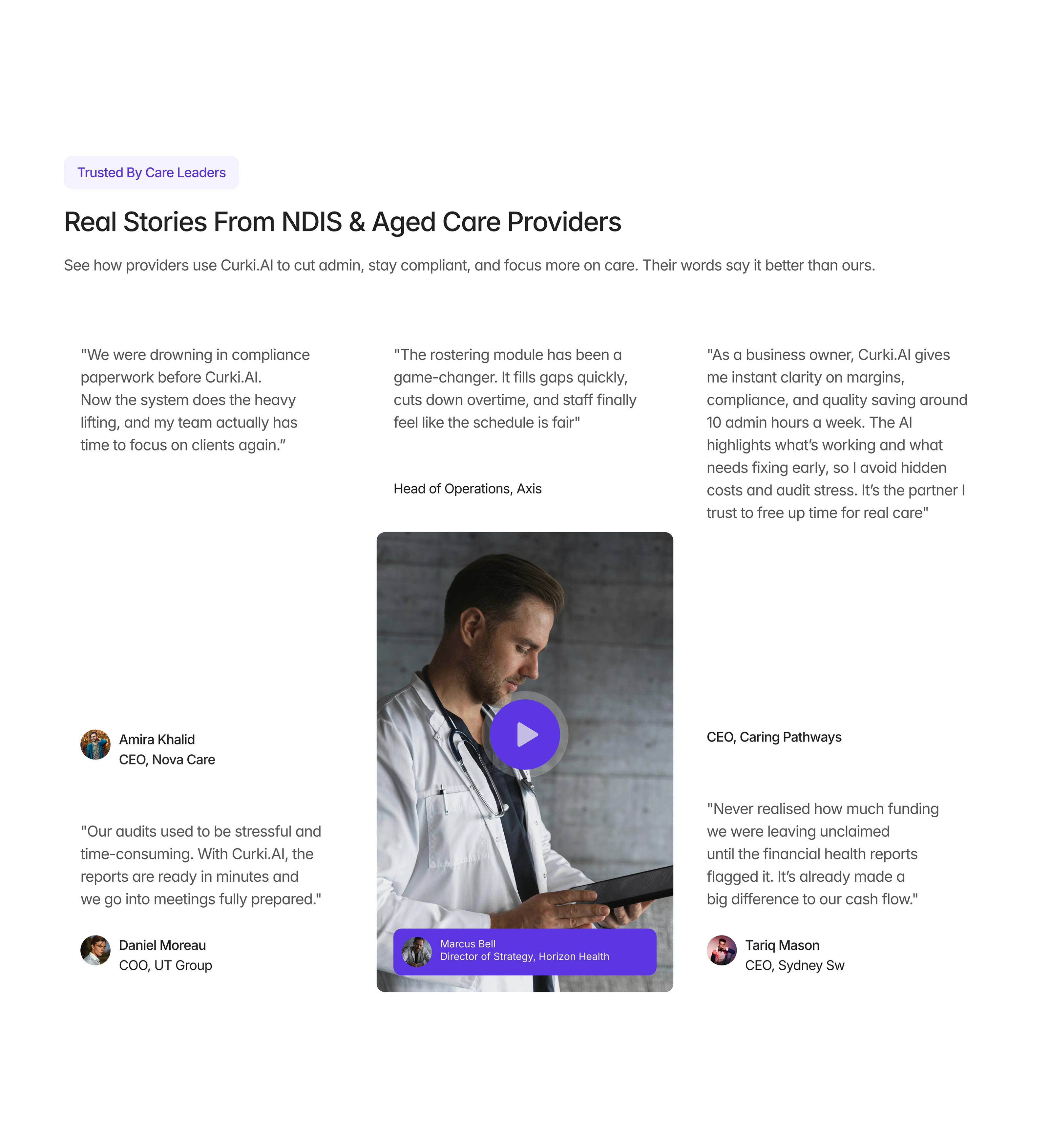 Aged care is one of the most trust-sensitive industries in the world. Every interaction, every interface, every word on a screen carries weight because the people depending on the product are vulnerable, and the administrators managing their care are busy, under pressure, and largely non-technical.