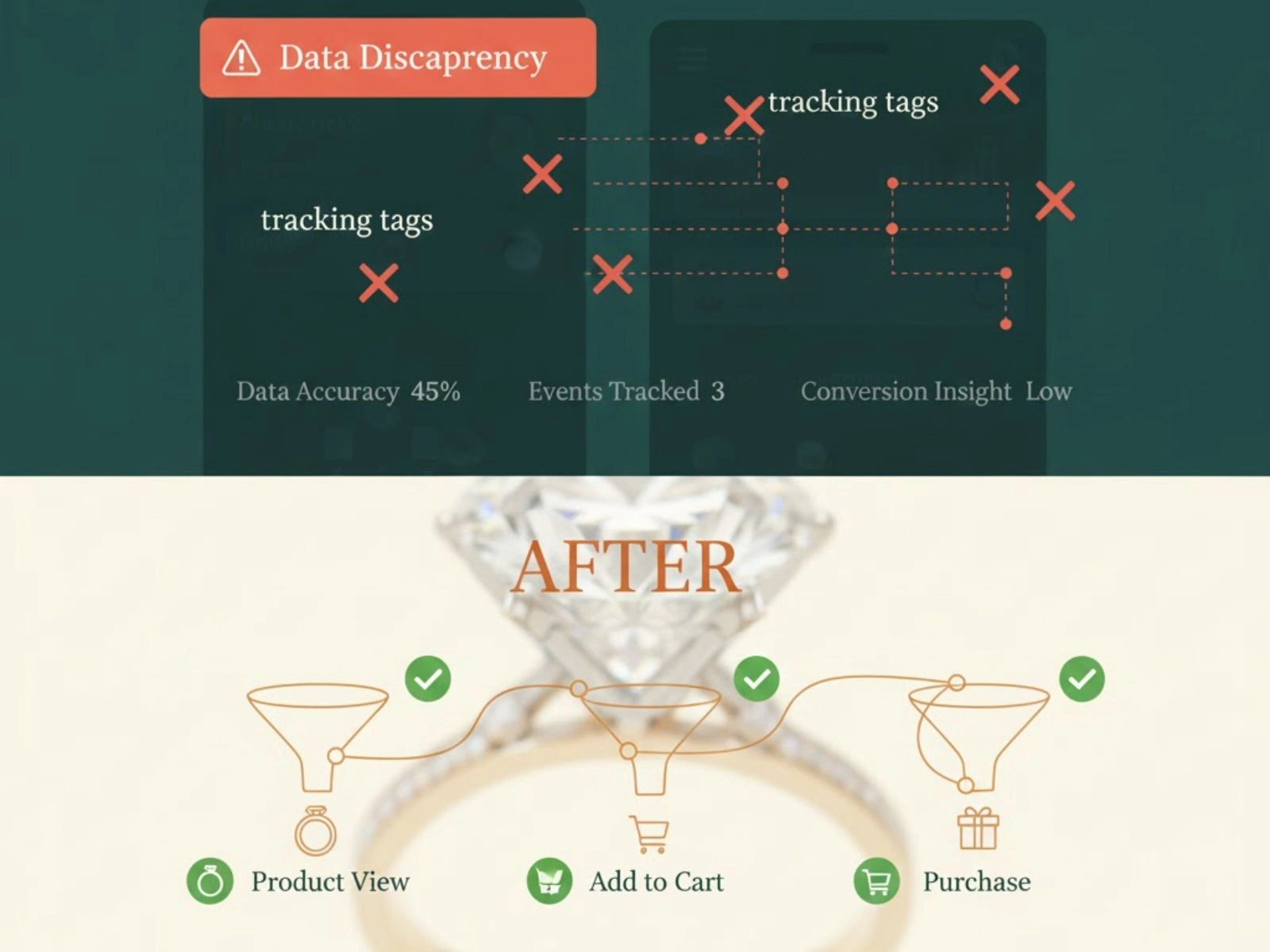 Fixed tracking issues, implemented custom solutions, and aligned analytics with business goals for a premium online jewelry store.
