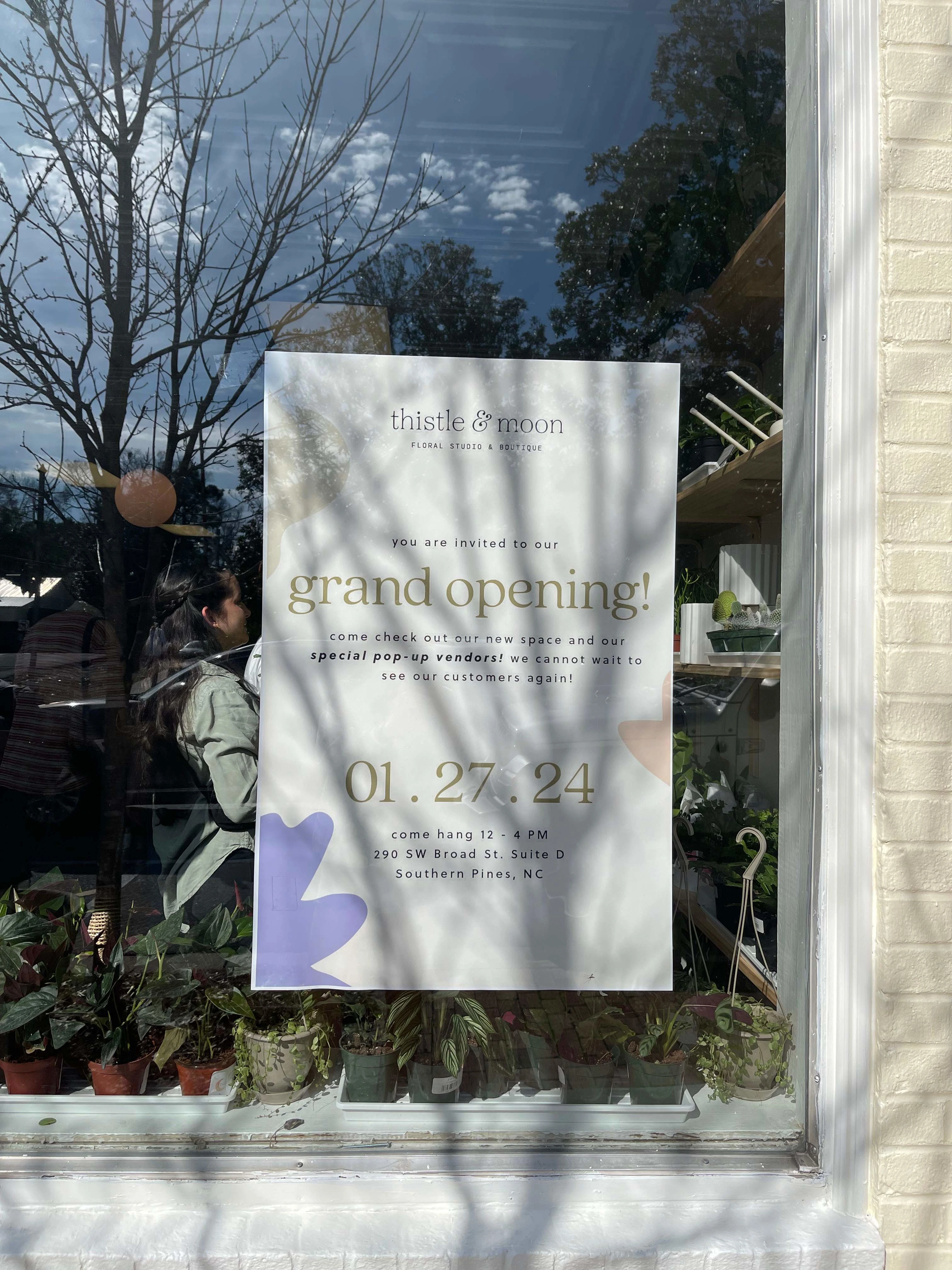 Thistle & Moon, nestled snugly in downtown Southern Pines, North Carolina, isn't your average floral artistry studio—it's a haven of creativity and natural allure. When Mary, the creative force behind the blooms, sensed that her business was ready to shed its boho skin and step into a more refined identity, we knew it was time to roll up our sleeves.