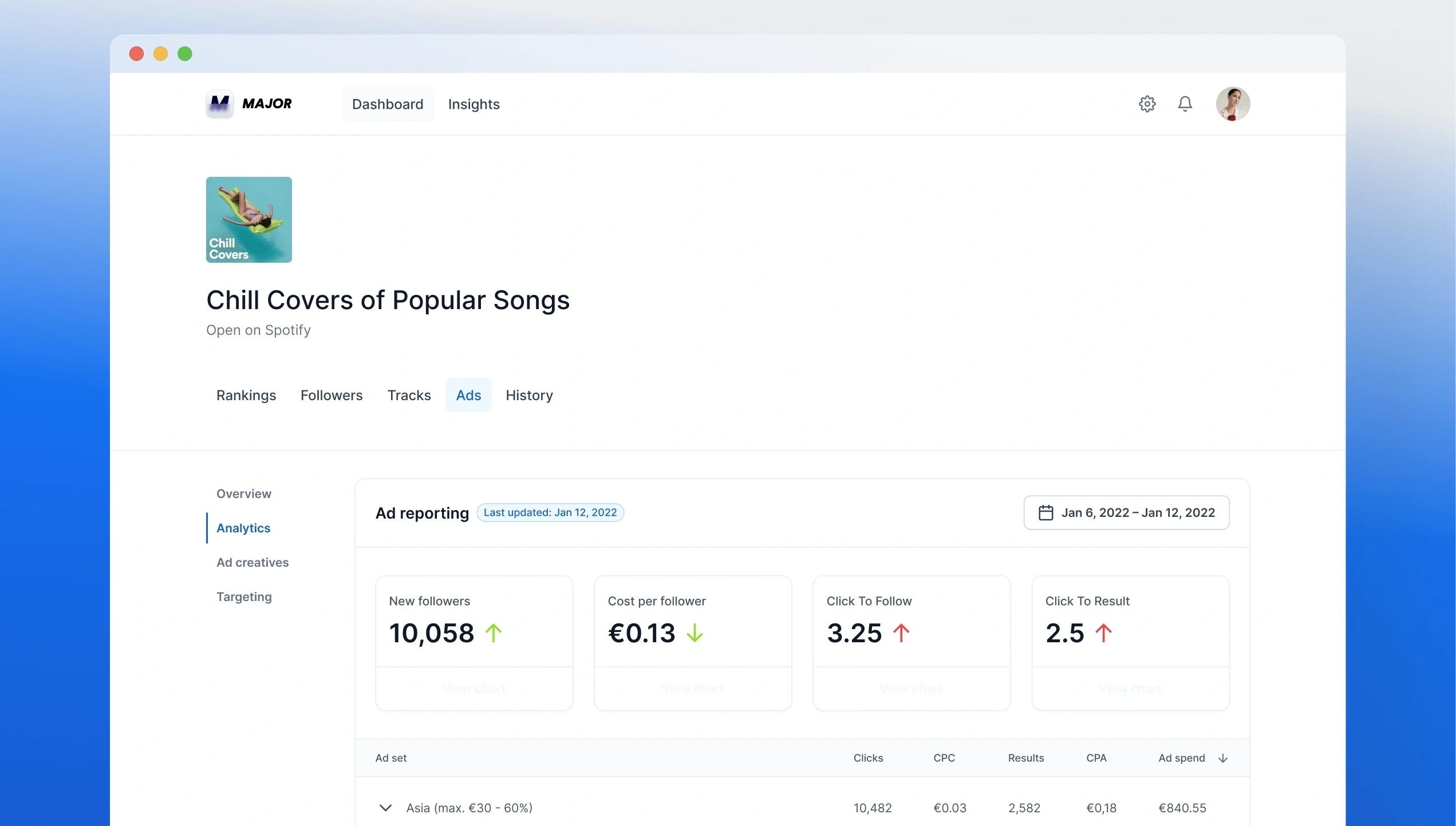 Major.app's feedback. Then we built a backend system that could handle millions of Spotify data points per day, working around API limits by using multiple accounts and RapidAPI.