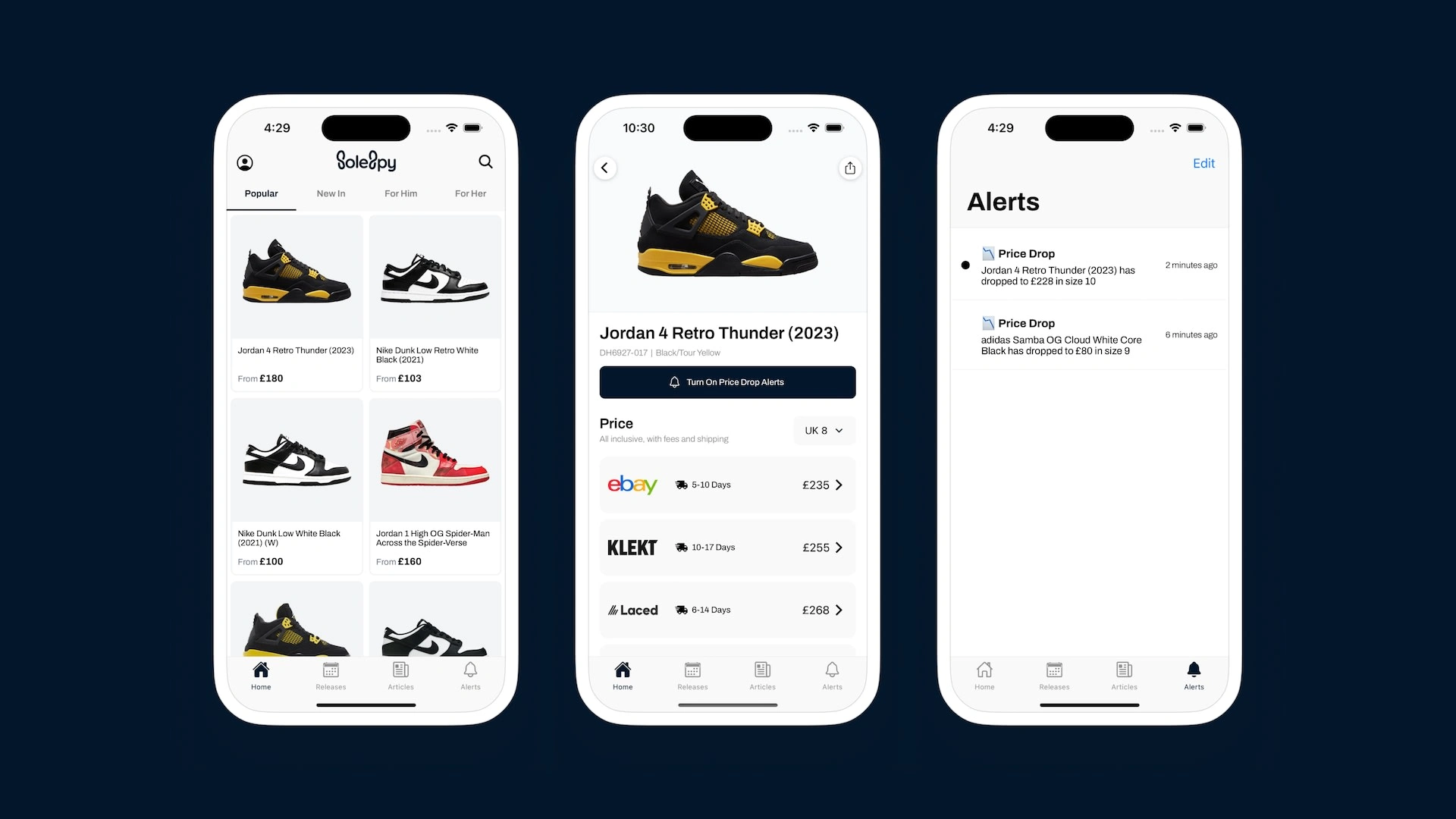 Following the successful rollout of the SoleSpy website, it became evident that the vast majority, about 95%, of users were accessing the platform via mobile devices. Acknowledging the advantages of mobile apps in terms of enhancing user retention and integrating added features, I embarked on the journey to develop the SoleSpy App, utilizing React Native and Expo.