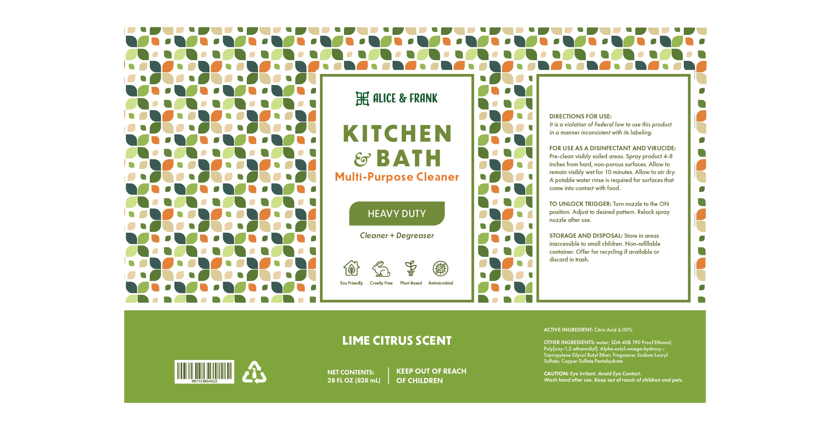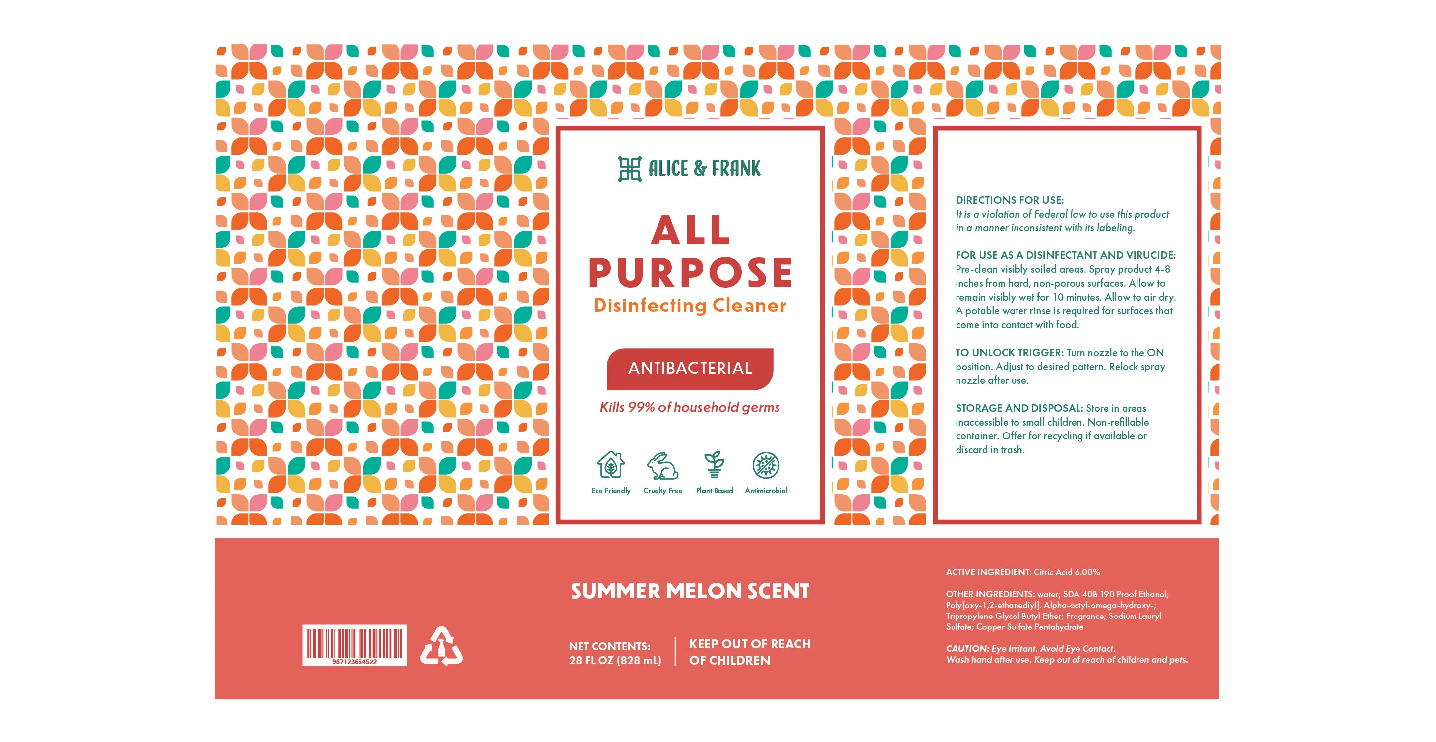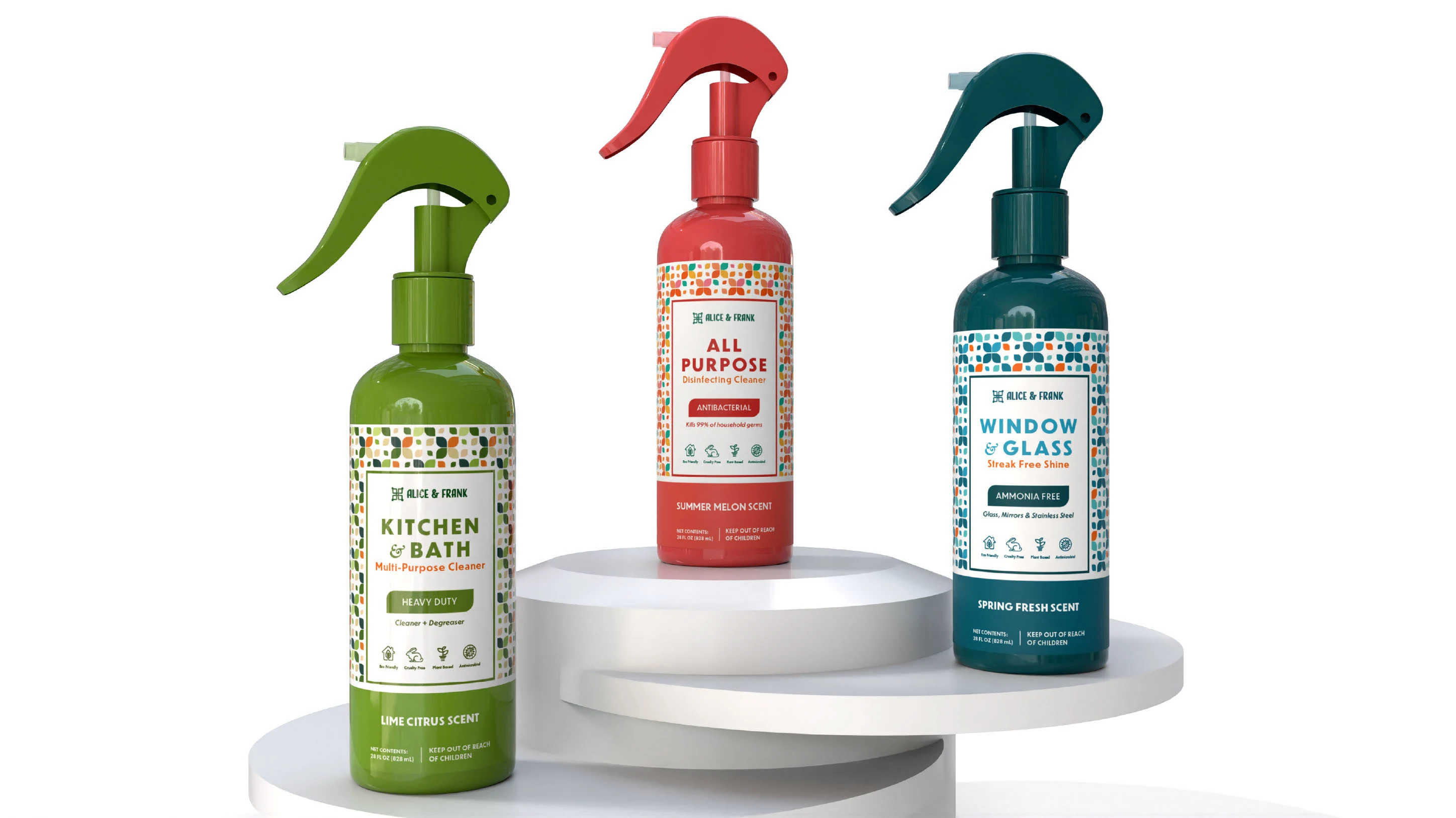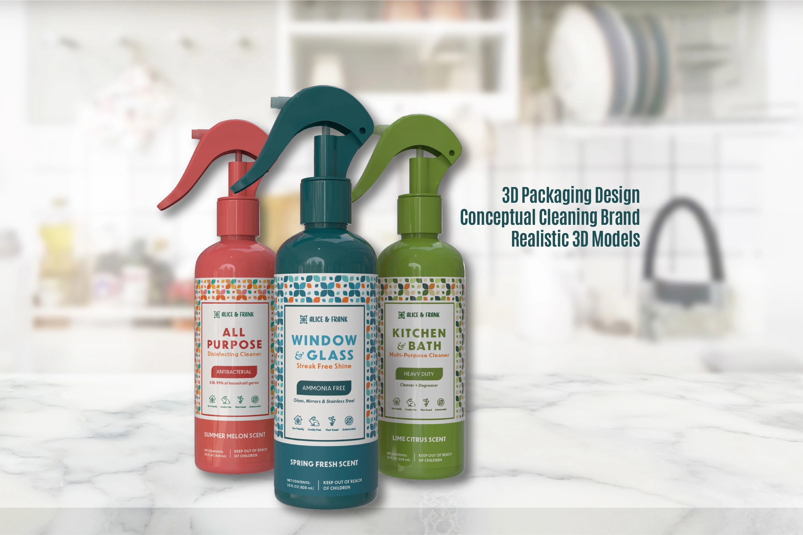 Packaging for conceptual brand, Alice & Frank, cleaning sprays.