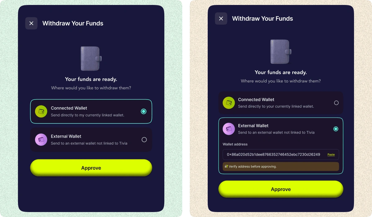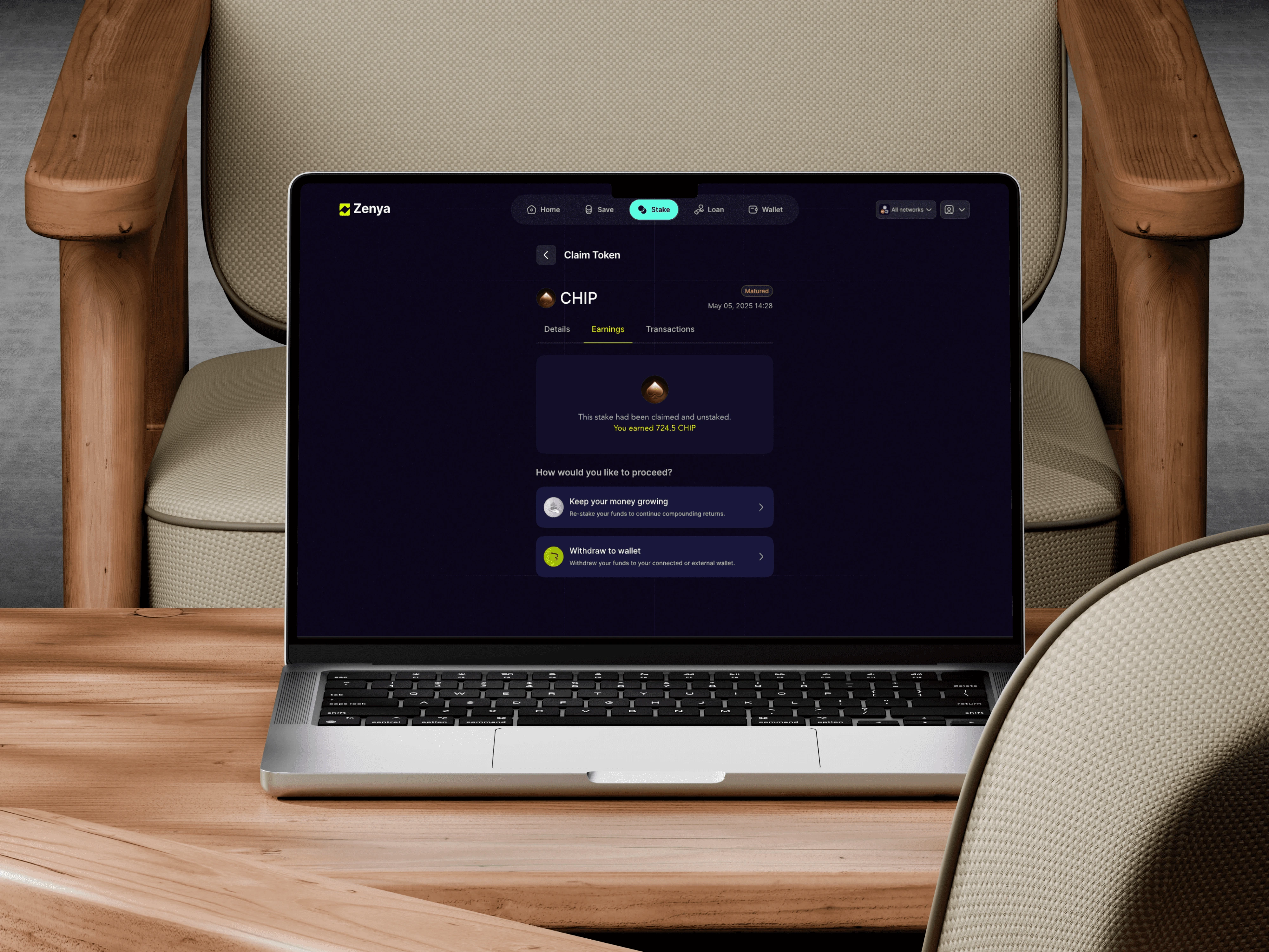 Growth means little without freedom at the end of the journey. Zenya gave users full control of their matured funds — whether savings or staking. At maturity, assets could be routed directly to a connected Zenya wallet or sent to any external wallet address.