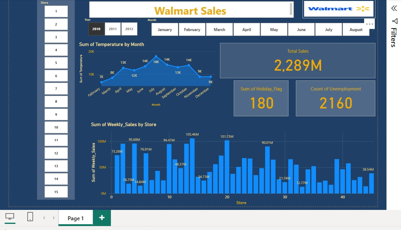 The dashboard elaborates the volume of sales for each branch over years and months.