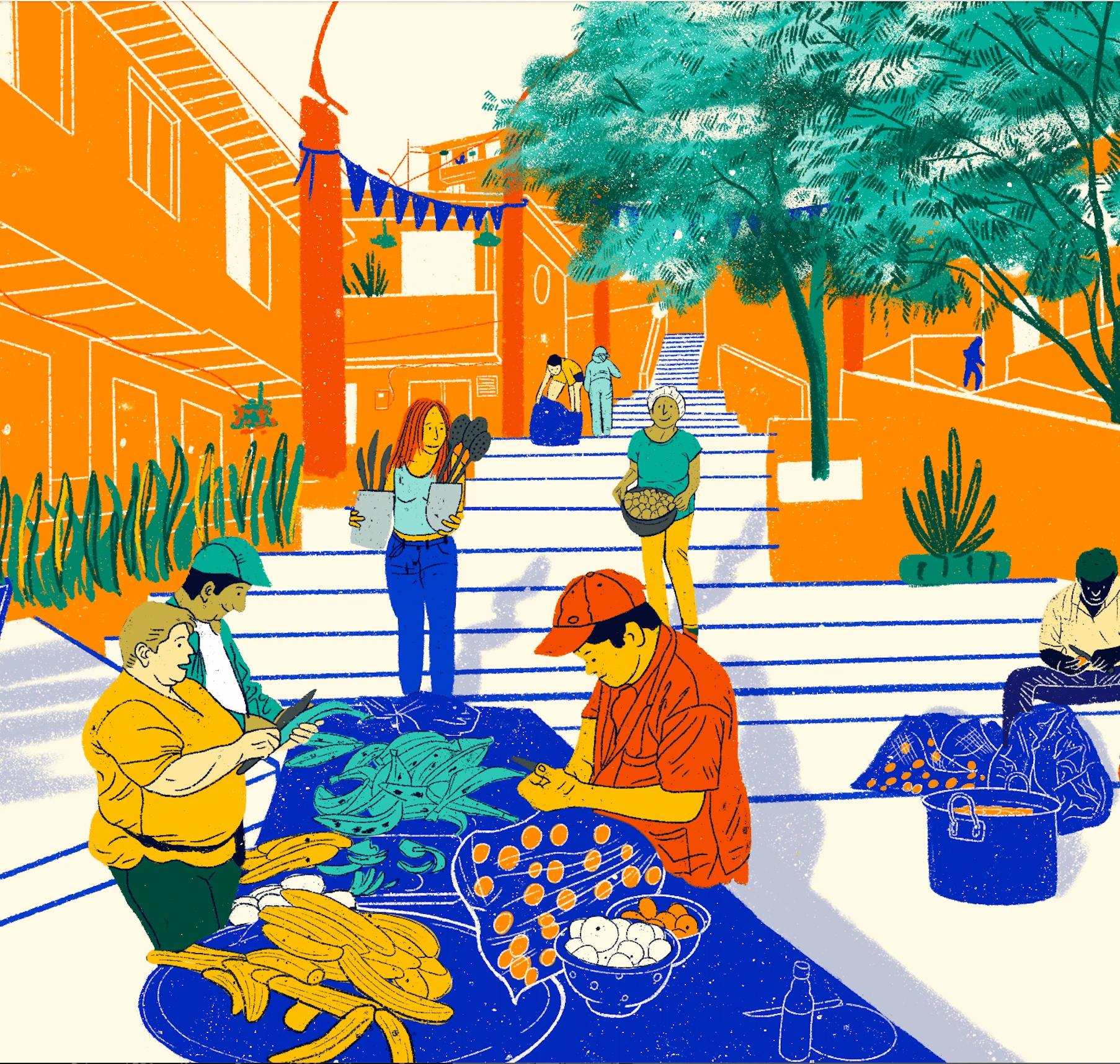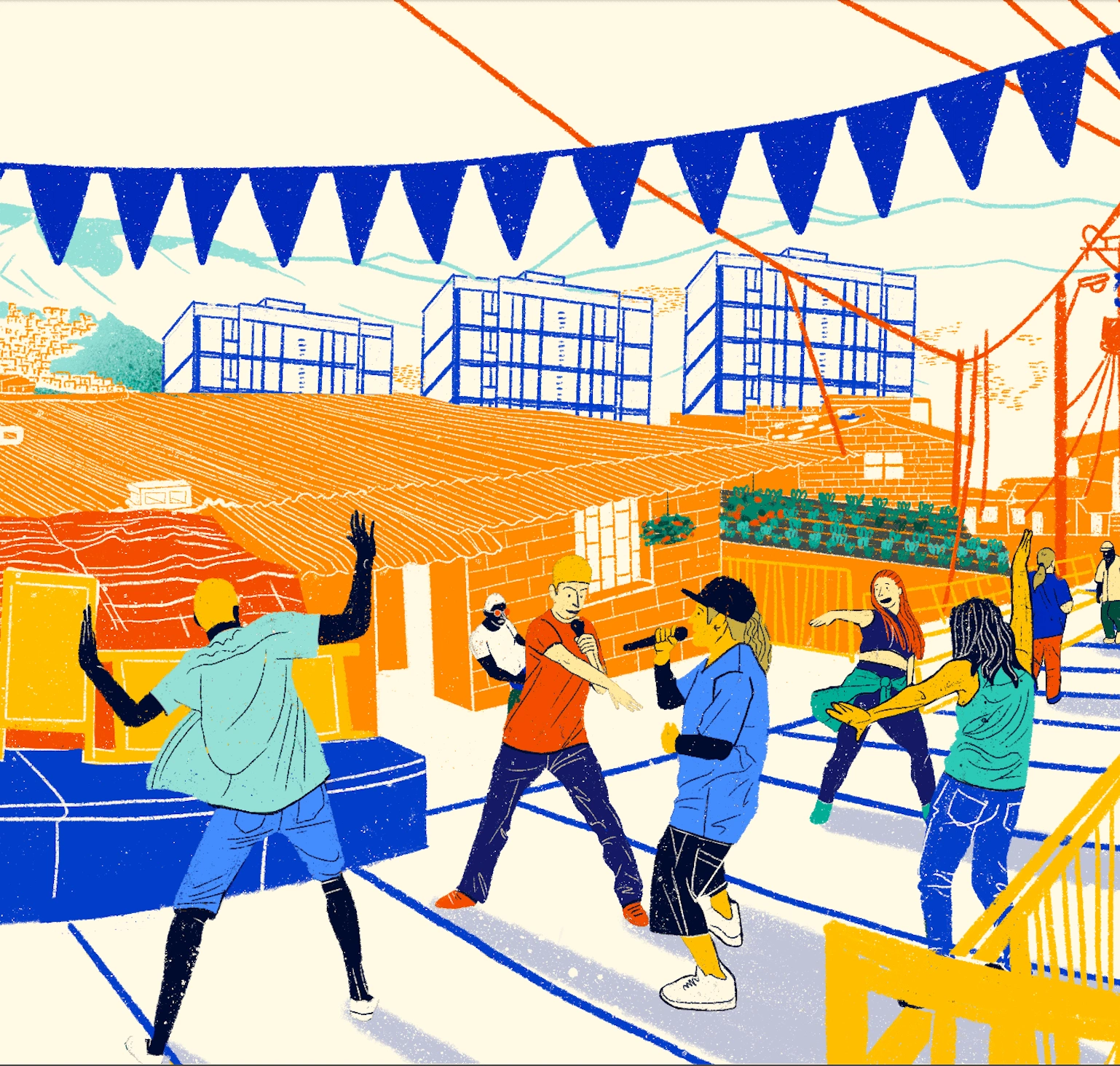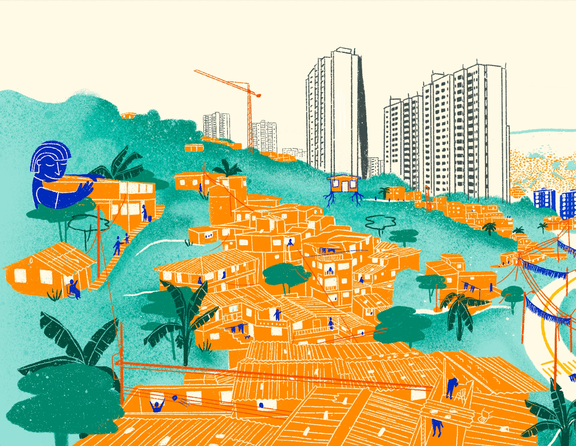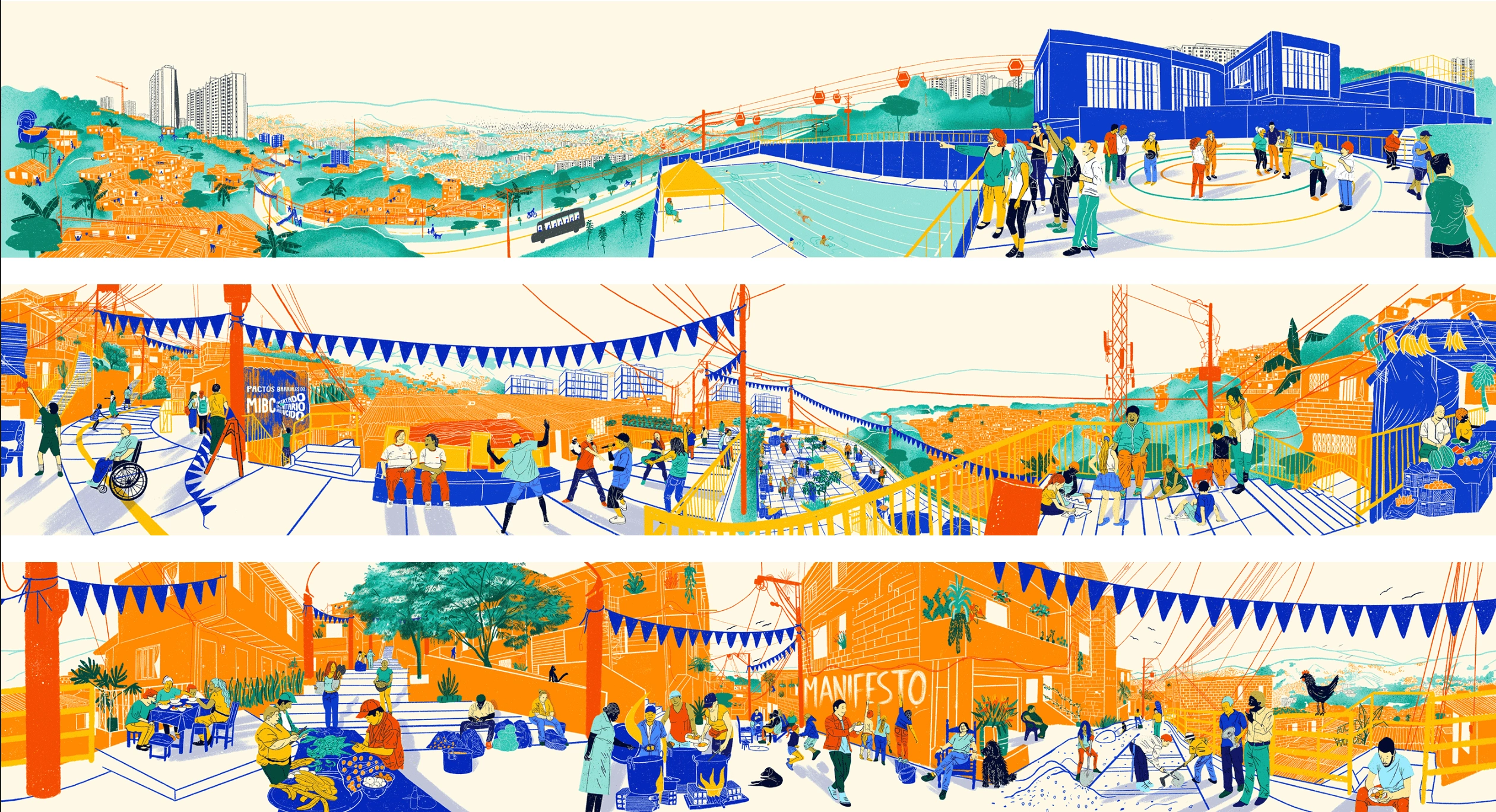 Illustrations for interactive web 360 experience for Coinvite project. The city of Medellín as a case study and model on Slum Upgrade experiences.