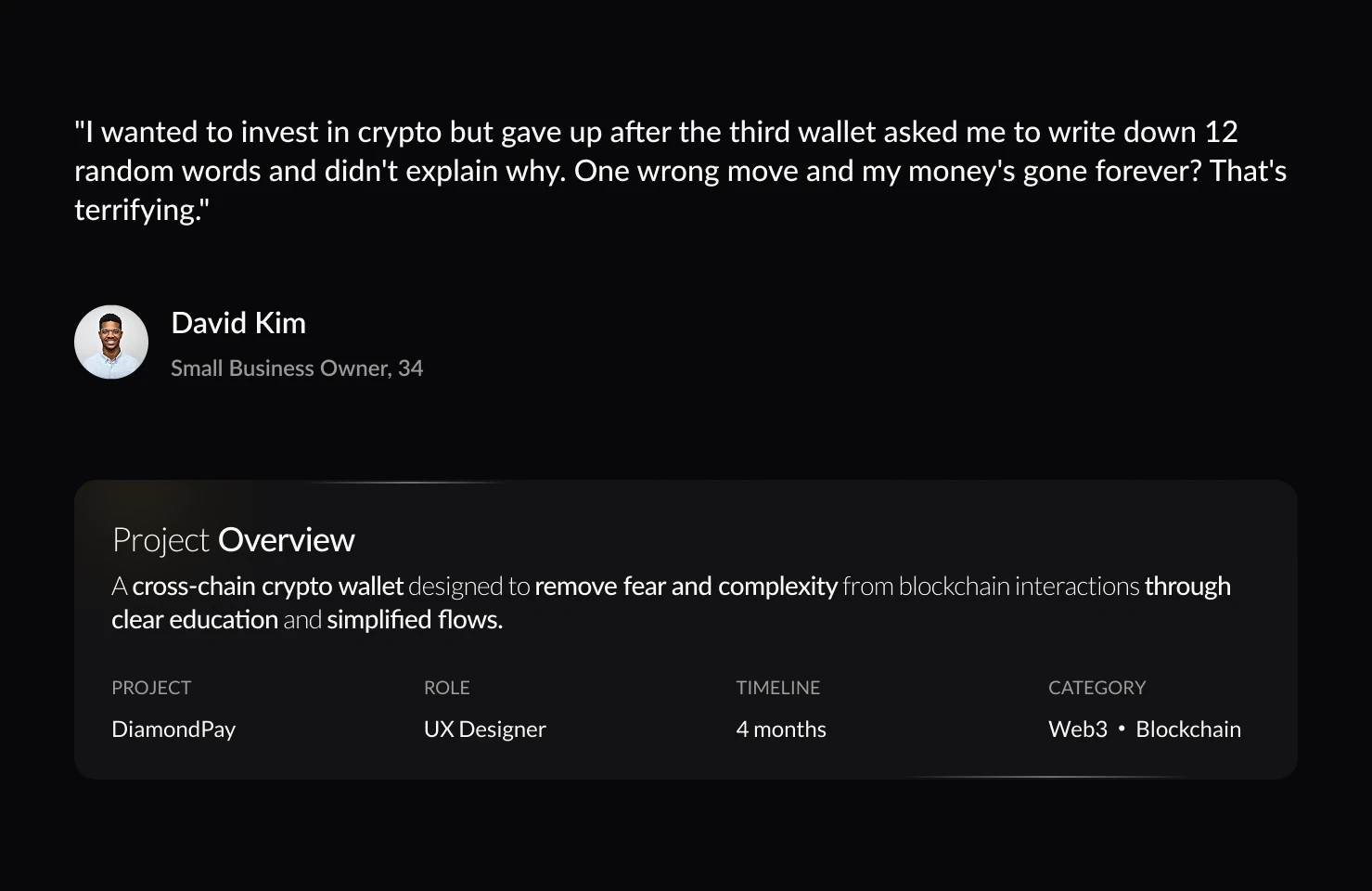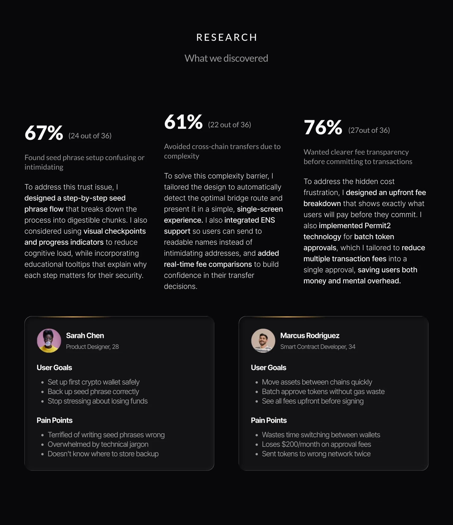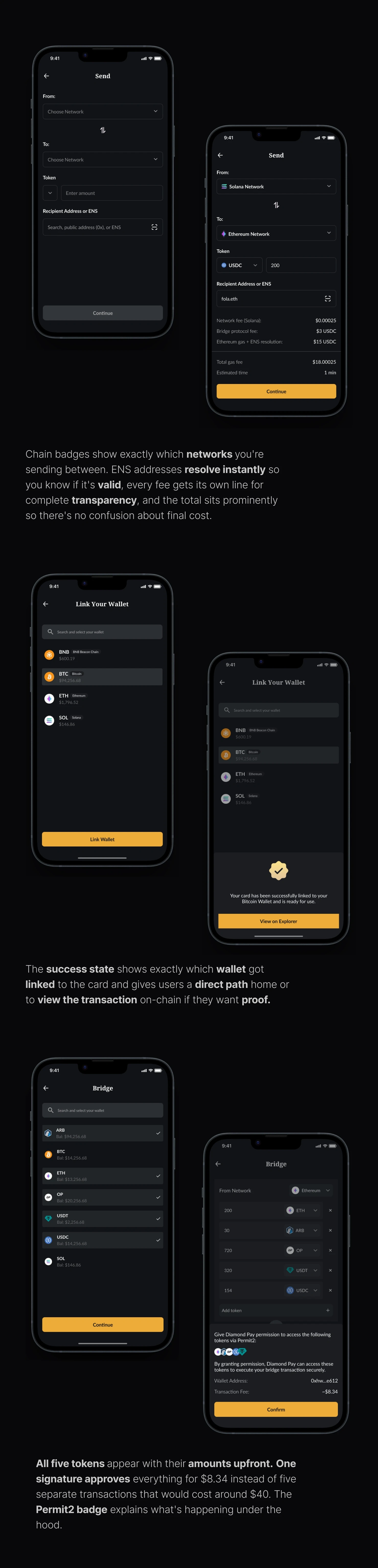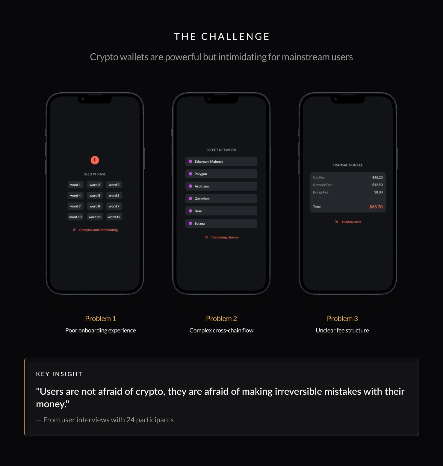 Designed a crypto wallet that bridges 5 tokens at once instead of forcing users through 5 separate transactions. Made complex blockchain stuff feel simple.