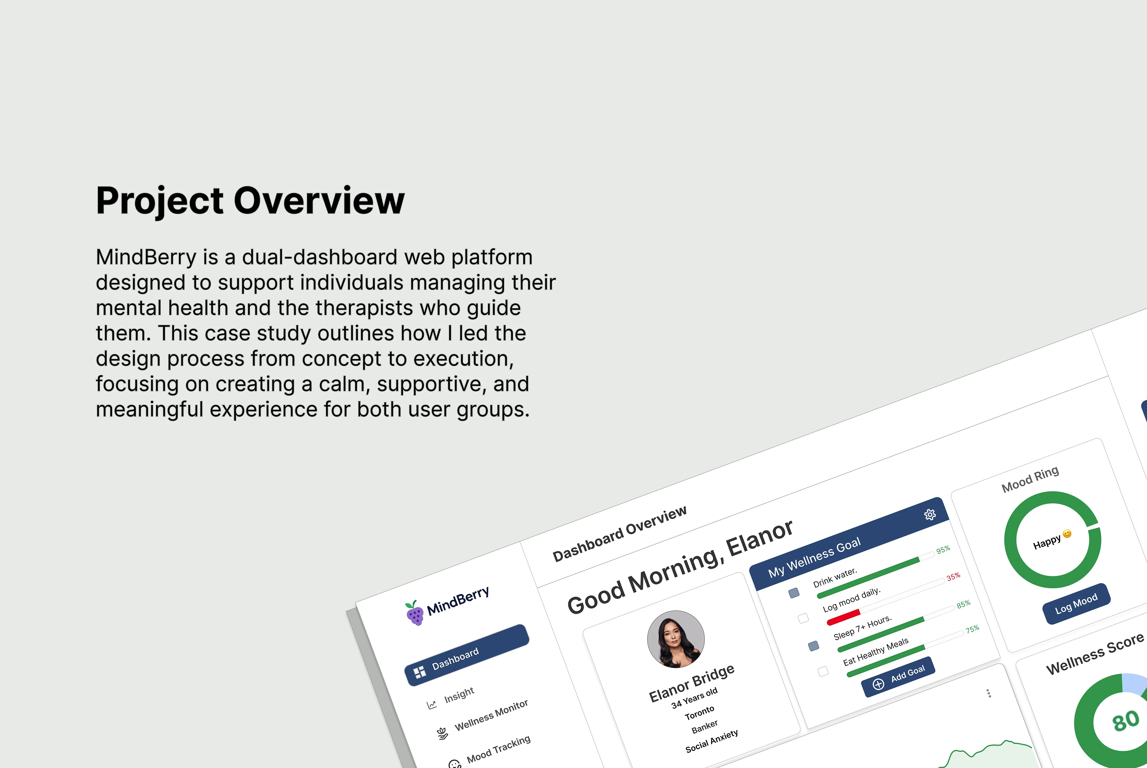 MindBerry is a responsive dashboard designed for patients and therapists to track emotional health and therapy progress.