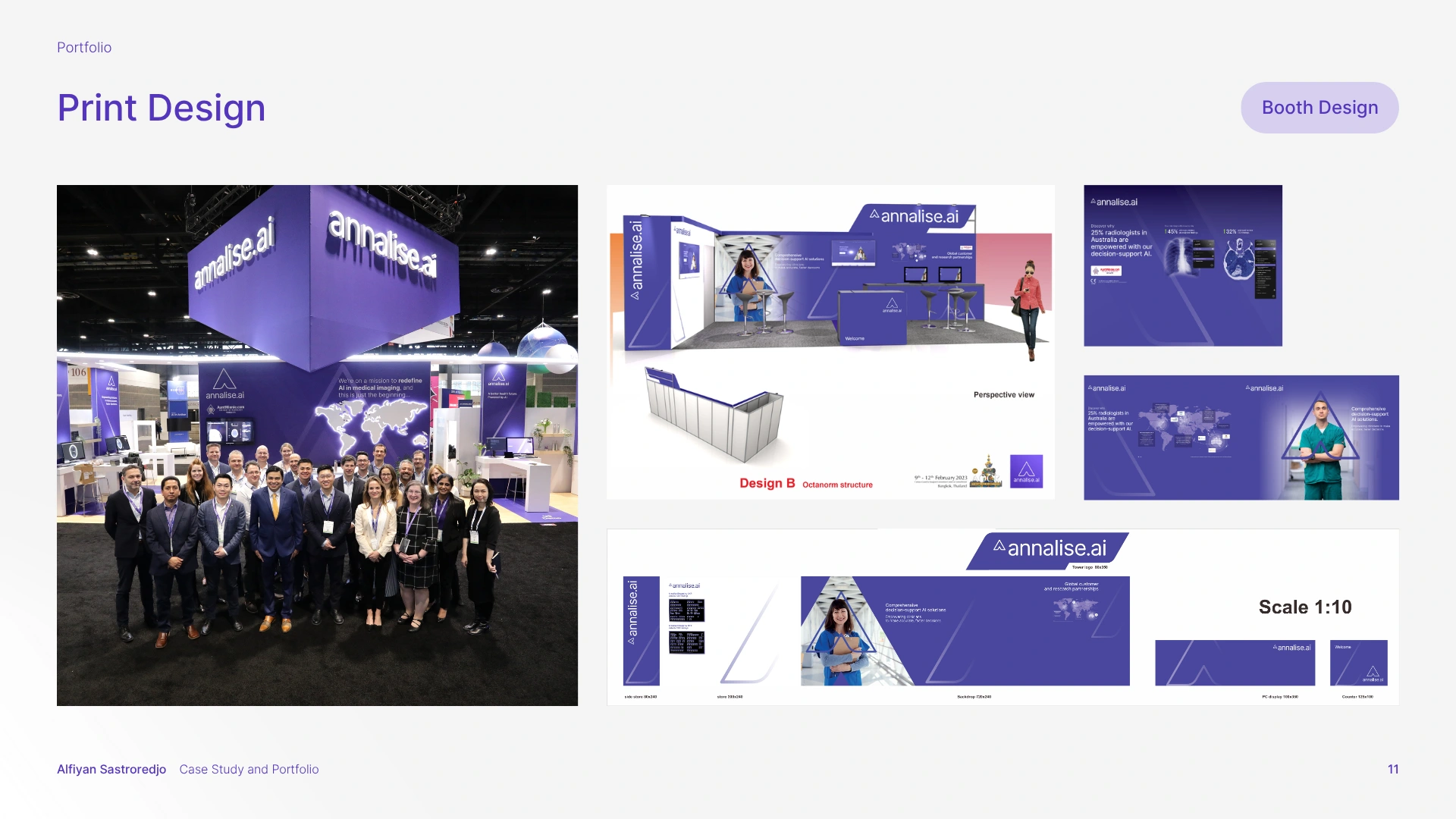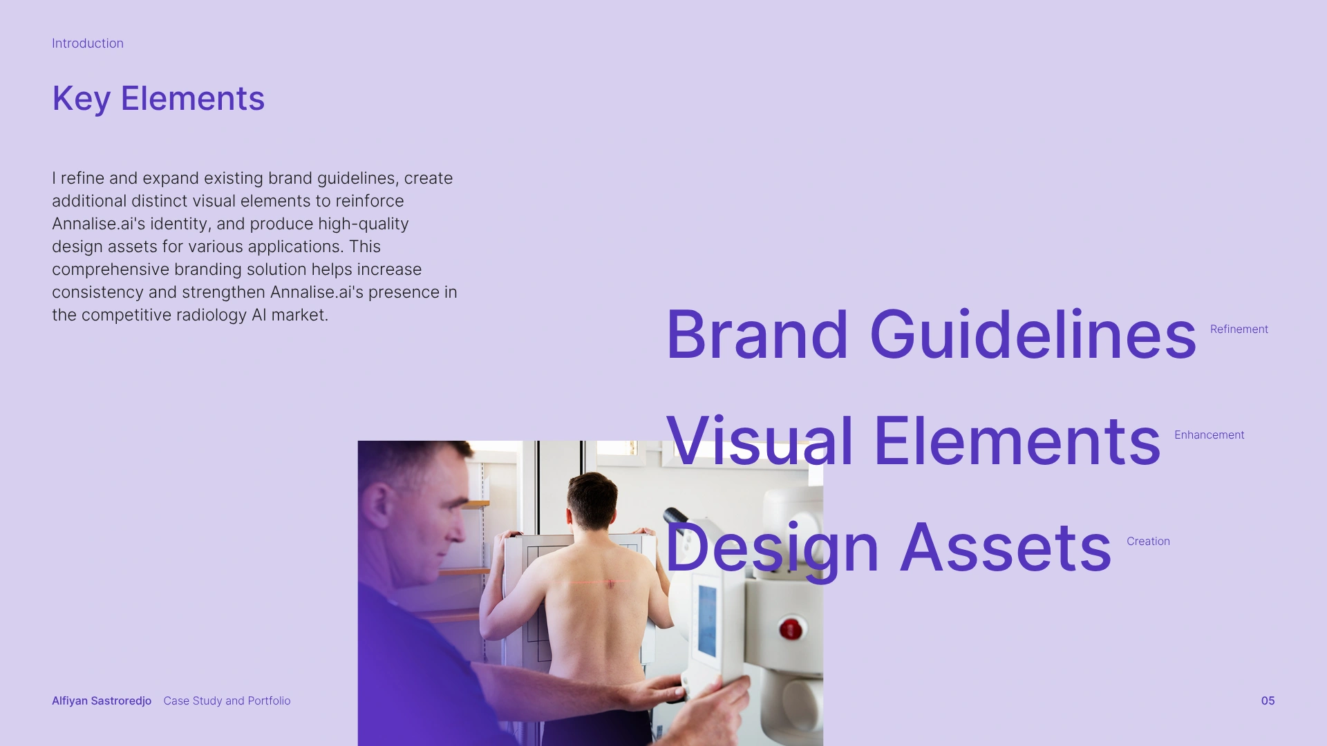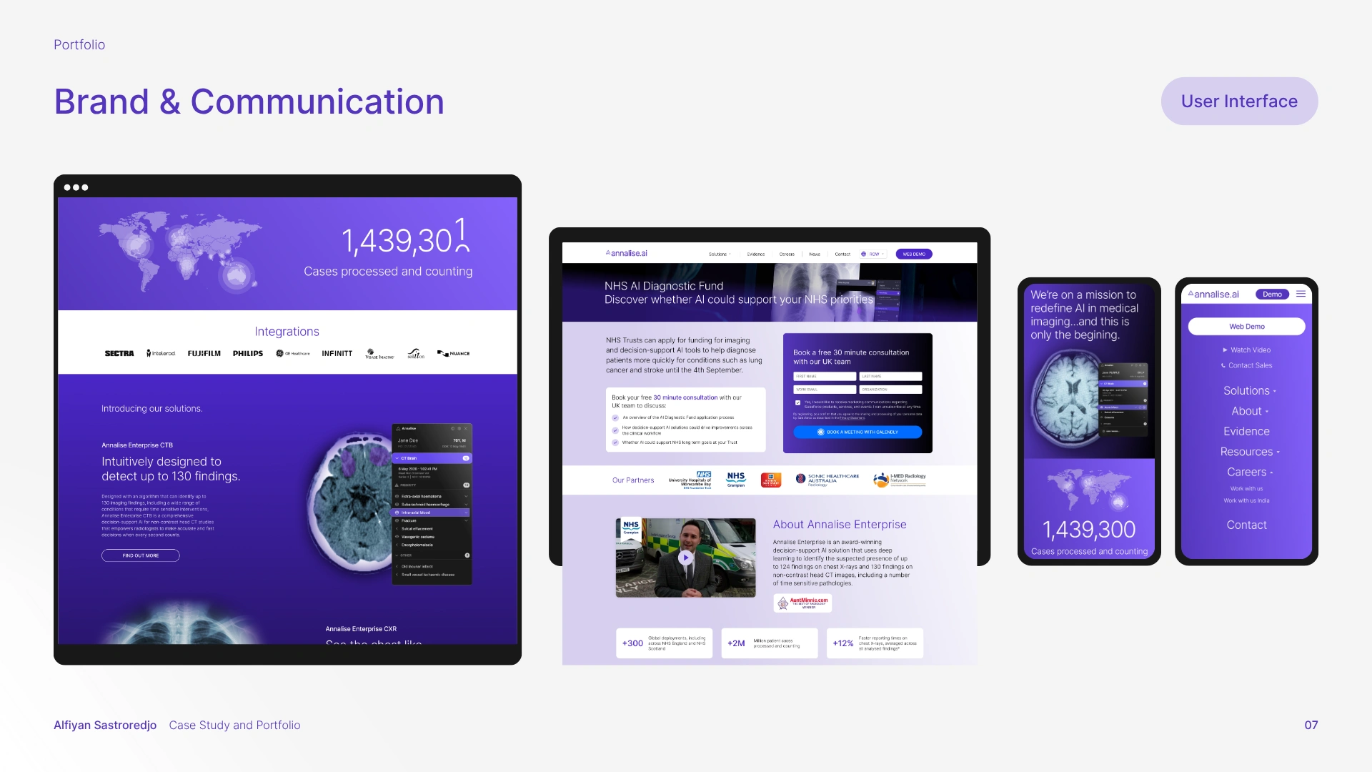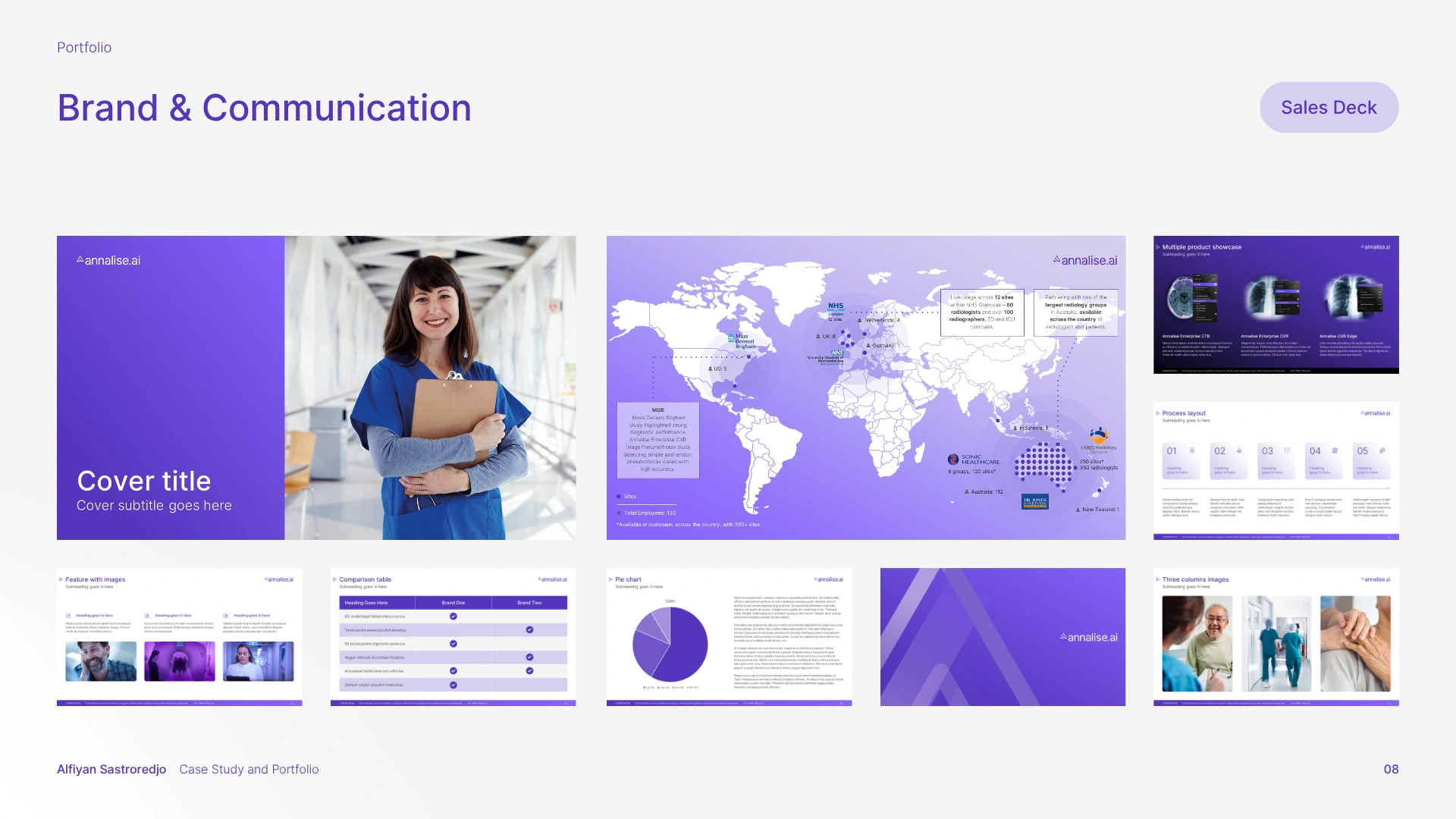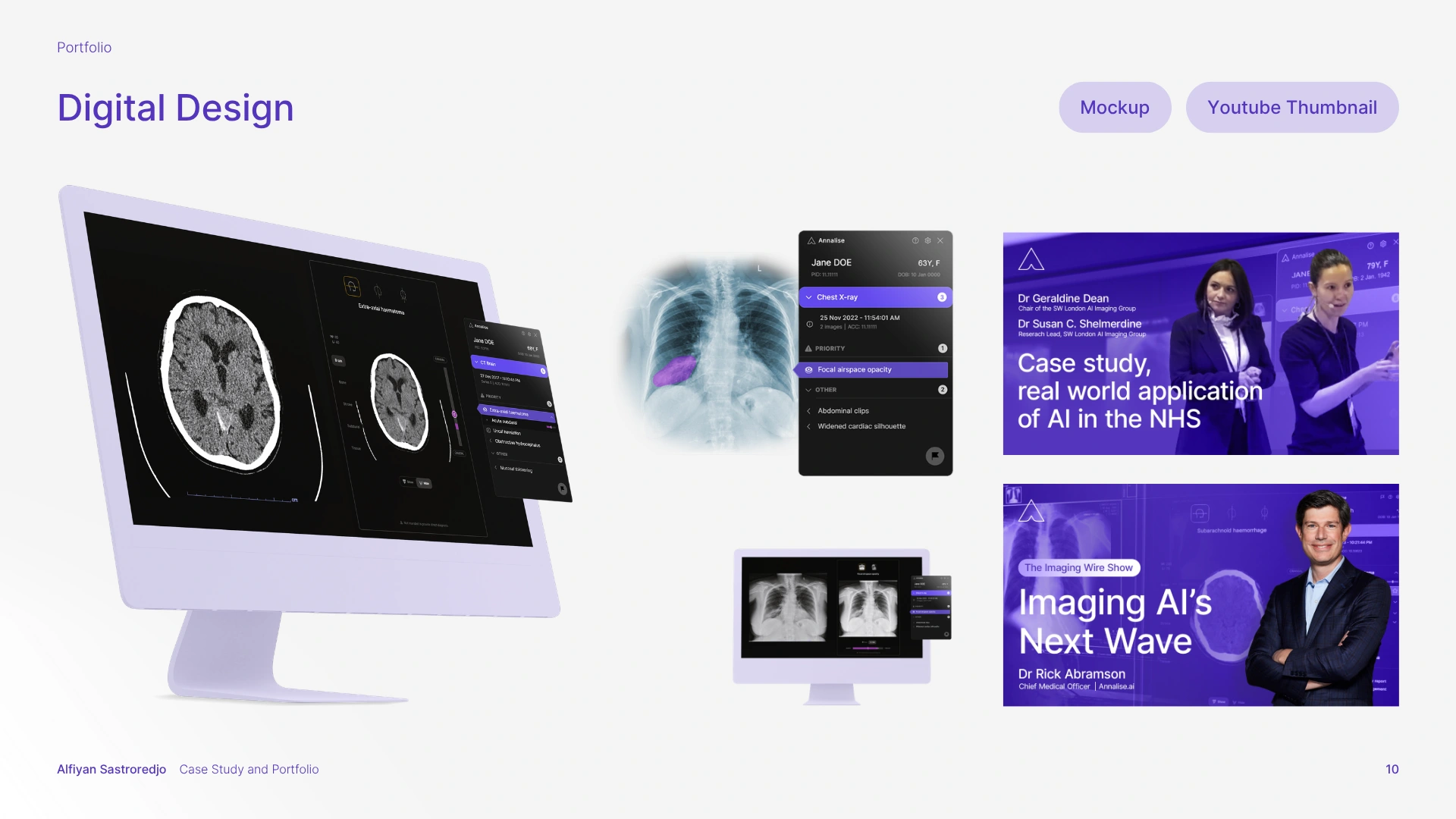 The solution was a comprehensive branding strategy that aligned with Harrison.ai's existing guidelines while carving out a unique, memorable identity for Annalise.ai. This meant refining and expanding the brand guidelines, enhancing the visual elements, and creating a full suite of design assets, spanning UI, sales decks, email newsletters, social media, YouTube thumbnails, print collateral (brochures, flyers, posters, stationery, banners), and motion graphics.