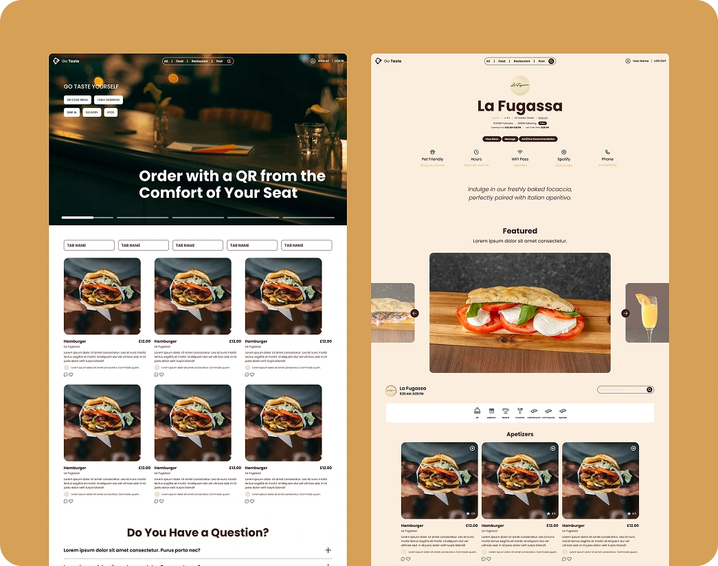 Go Taste is a curated portal of local restaurant menus, streamlining the ordering experience. I’ve worked for the redesign of the website with another designer.