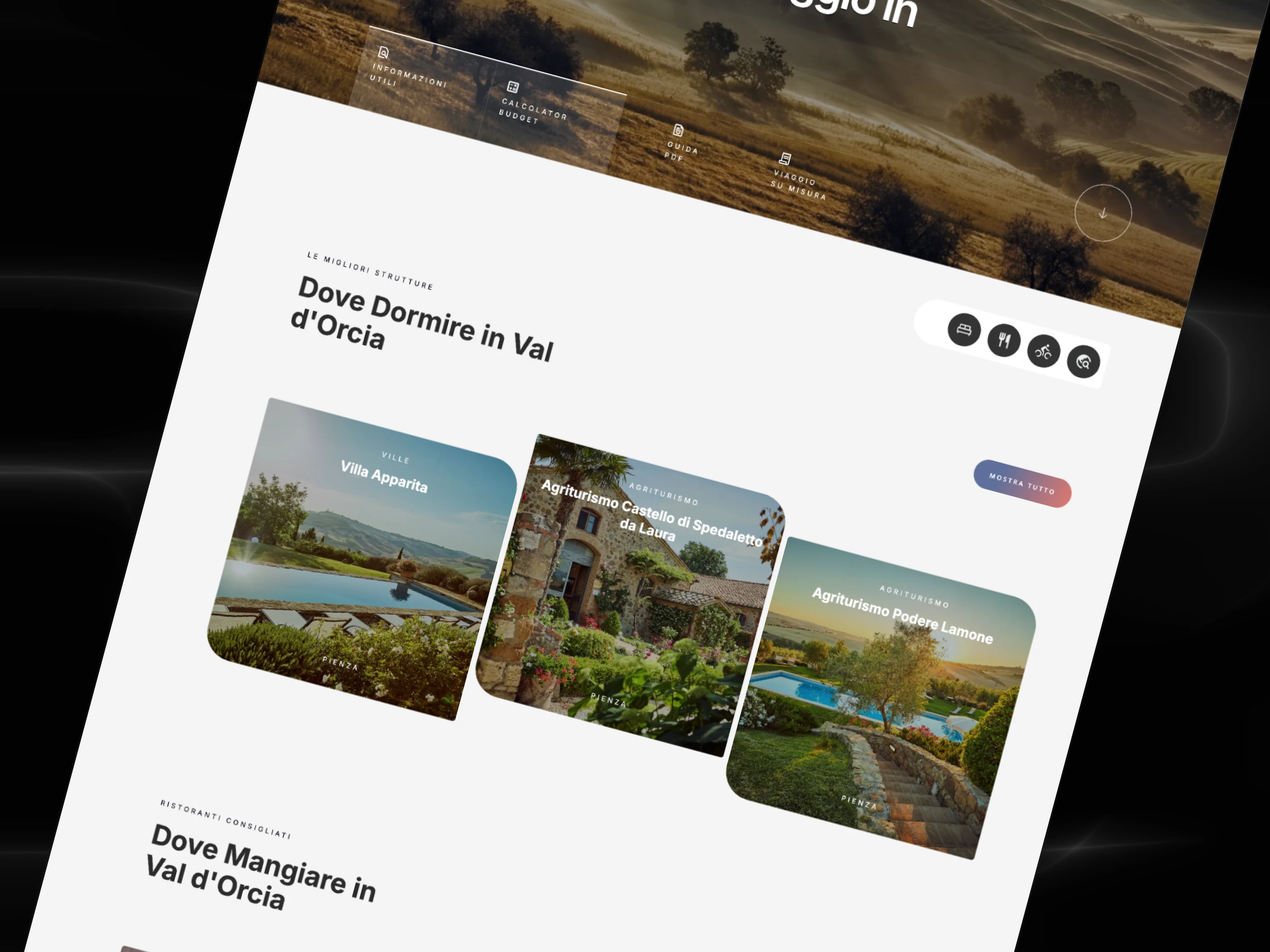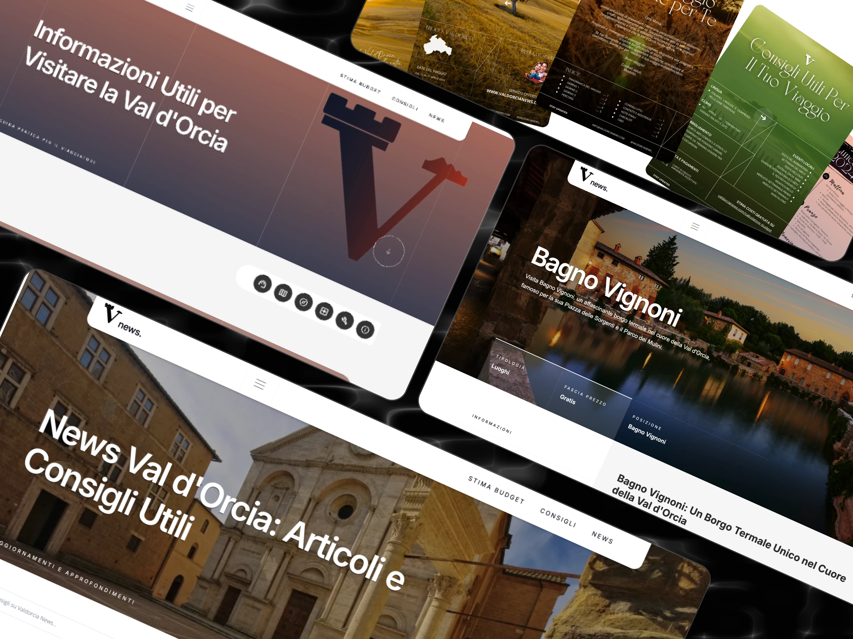 Development of a large-scale regional tourism portal featuring over 190 dynamic pages. Val d’Orcia News is a content-driven ecosystem built on Webflow, designed to dominate SEO rankings through integrated travel guides, podcasts, and interactive tools. The project focuses on high-end responsive design and intuitive navigation, transforming a traditional news site into a comprehensive digital concierge for one of Italy’s most iconic destinations.