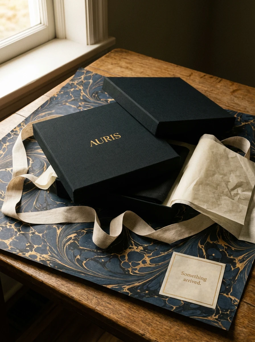 #faf5e4 — containing one line of bold serif gold type. The panel is never full-width as a rule. It floats, anchors to a corner, sits as a ticket or label — its shape determined entirely by what the composition needs. The line inside it is never more than two lines. It always stands alone.