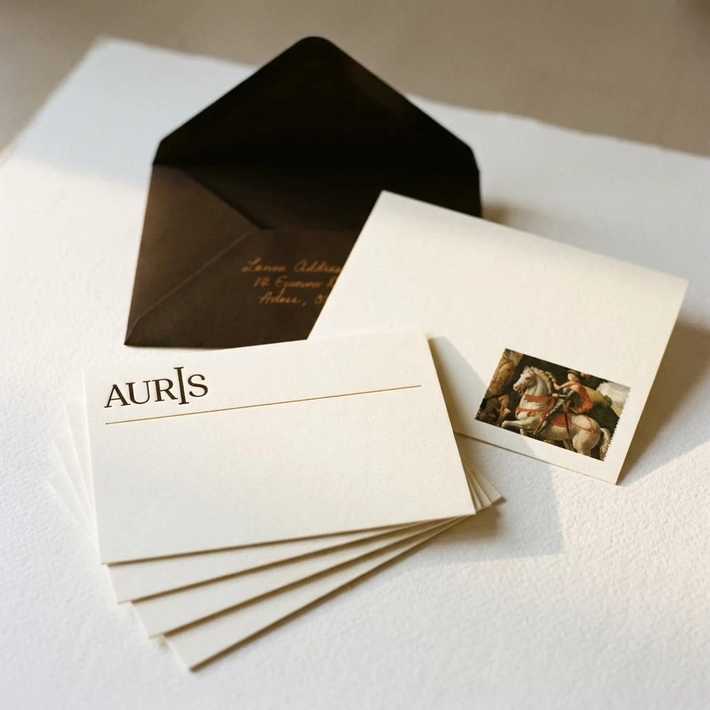 #b8922a on midnight #1c1710. The defining detail is the vertical bar bisecting the I — a plumb line, a measure, a scribal mark. It reads as both an architectural element and a typographic flourish, referencing the precision of Renaissance draftsmanship without decorating it. The mark has the weight of something carved, not printed.