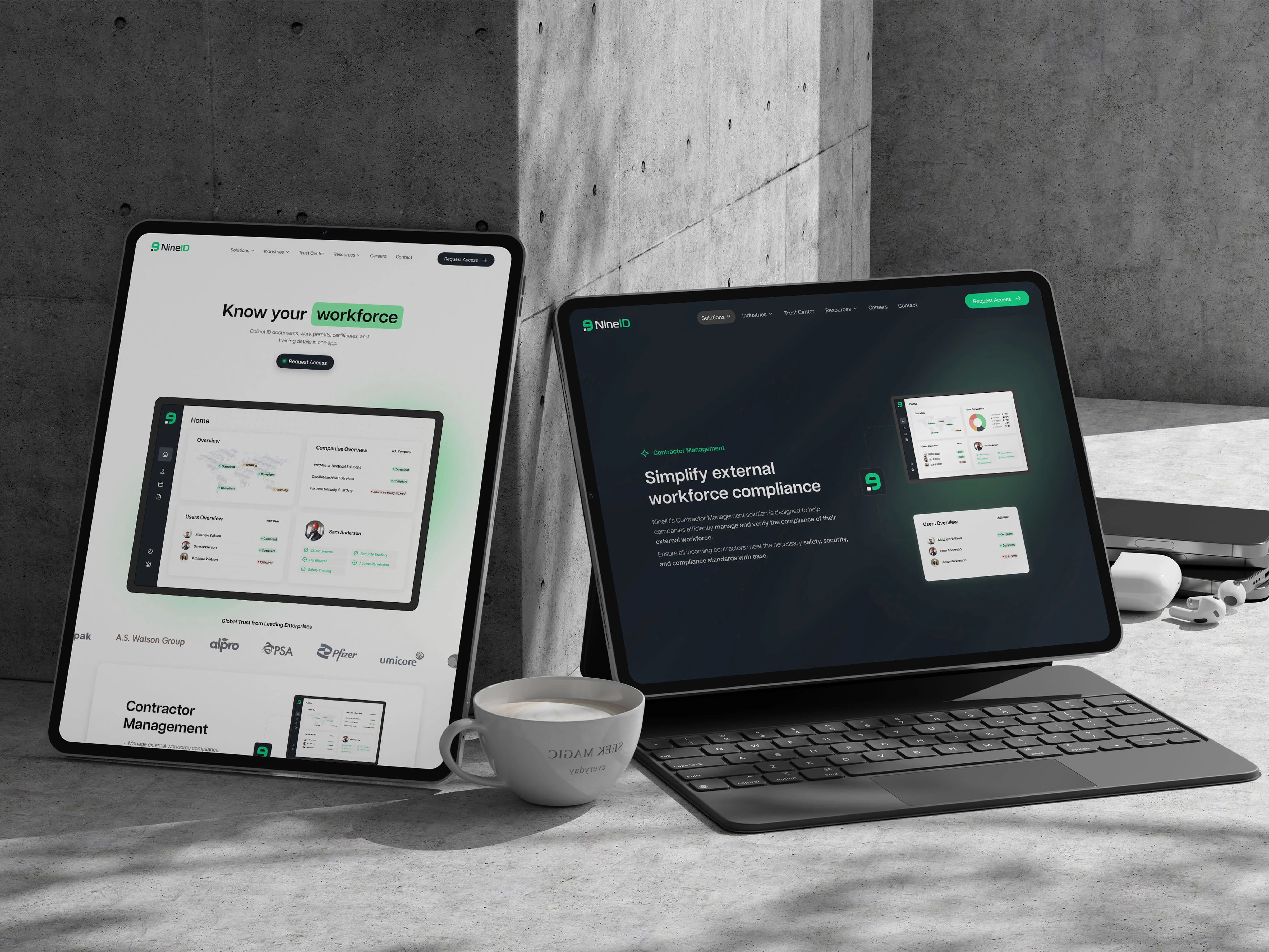 The overall design process was focused on creating a user experience that feels secure, intuitive, and scalable. From the beginning, I knew the interface had to simplify complex compliance workflows, so I kept the layout minimal and user-focused. The hero section leads with a clear message and product visuals to immediately show value. Throughout the site, I made sure CTAs are easy to find and consistent in style. I also used visual elements like dashboards, maps, and status indicators to communicate information quickly without overwhelming users with text.