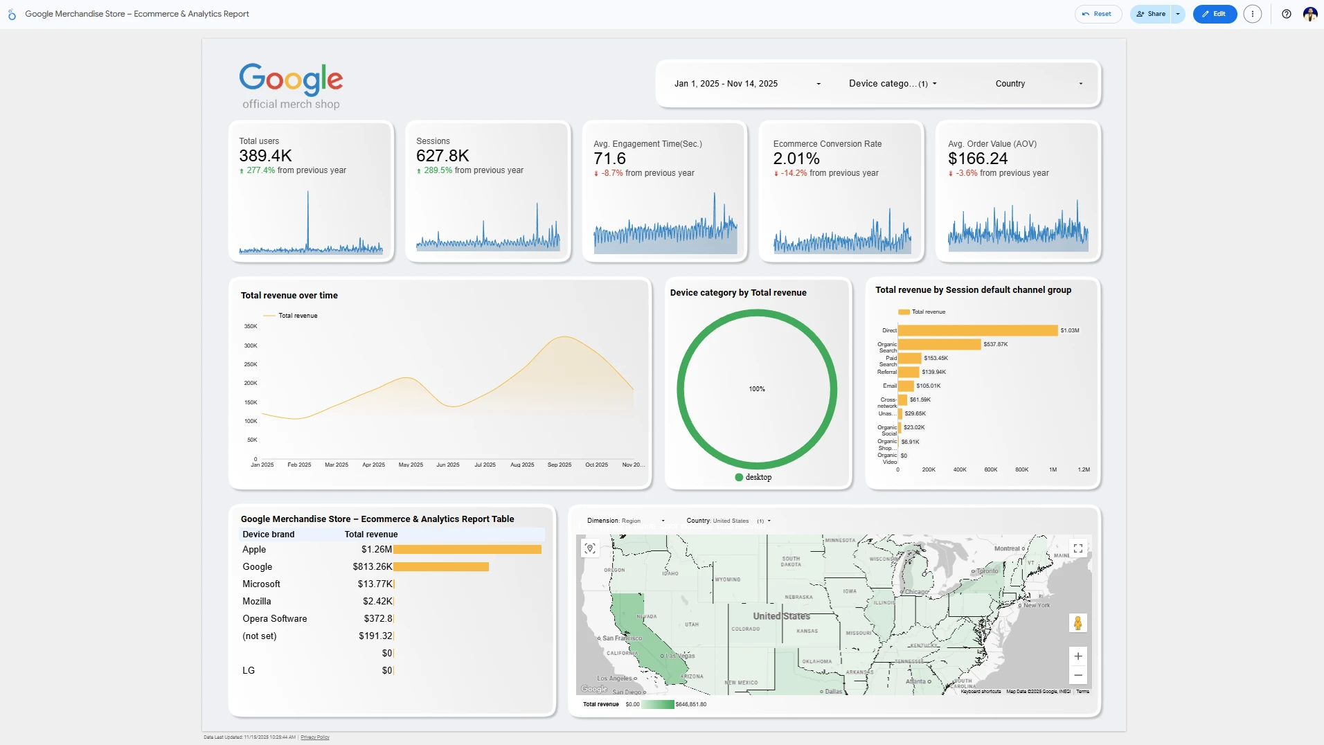 The dashboard consolidates complex GA4 data into a single, intuitive view that highlights the most essential KPIs—such as user acquisition trends, traffic patterns, engagement rates, product performance, conversion behaviors, and revenue insights. By transforming raw analytics into a structured executive-level story, the dashboard helps teams quickly identify what’s driving growth, where users drop off, and which channels deliver the highest value.