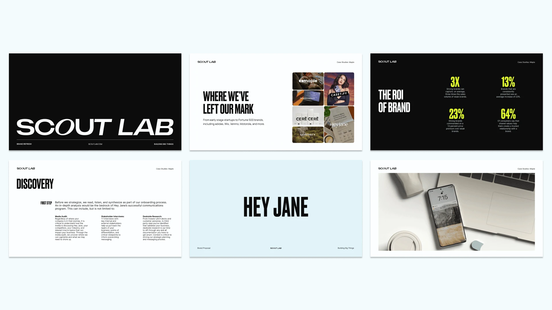 Spearheaded Scout Lab's full-spectrum rebranding, introducing a refreshed visual identity, including an innovative logo and design system,.