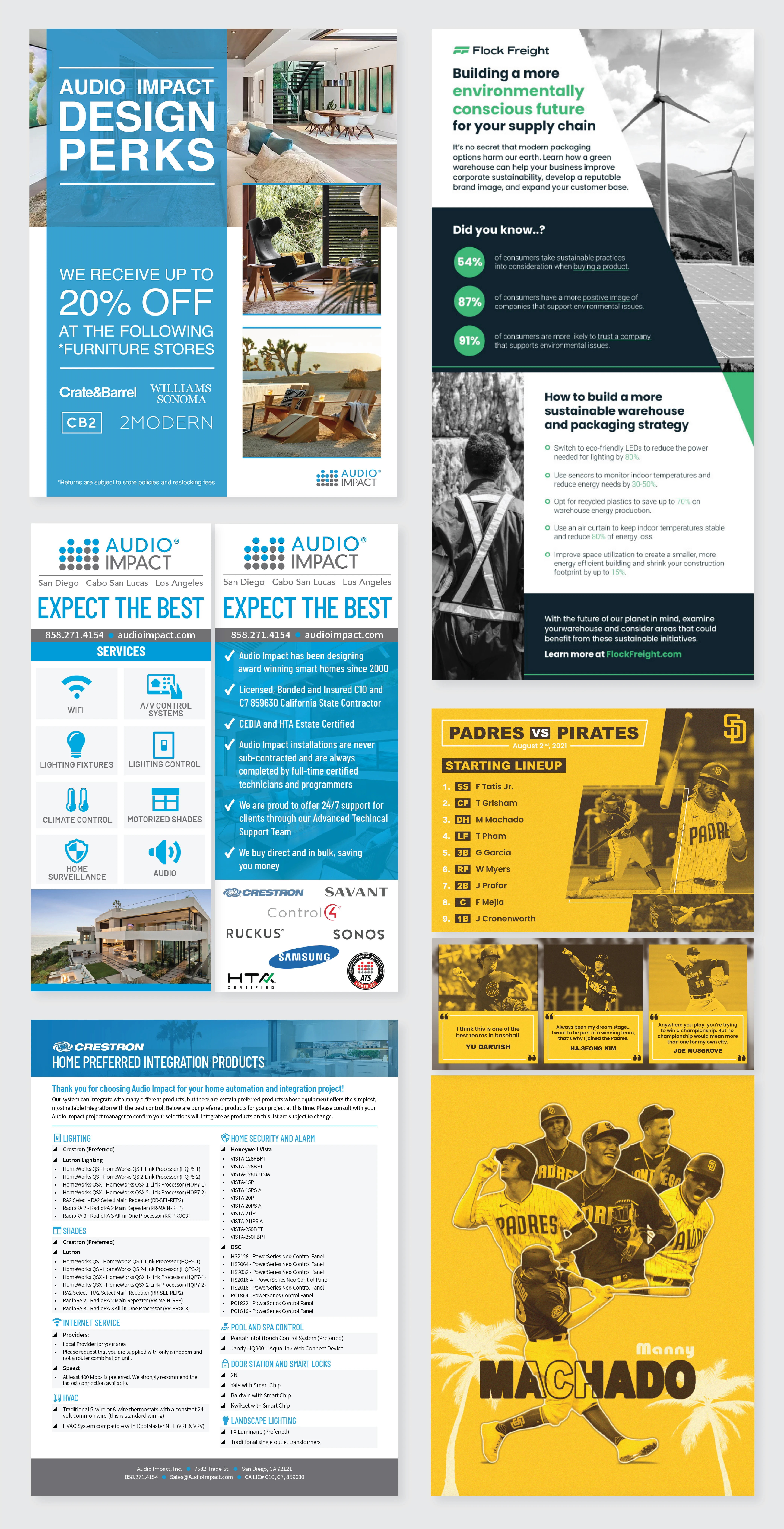 I have extensive experience designing one-pagers, brochures, banners, advertisements, proposals, etc.