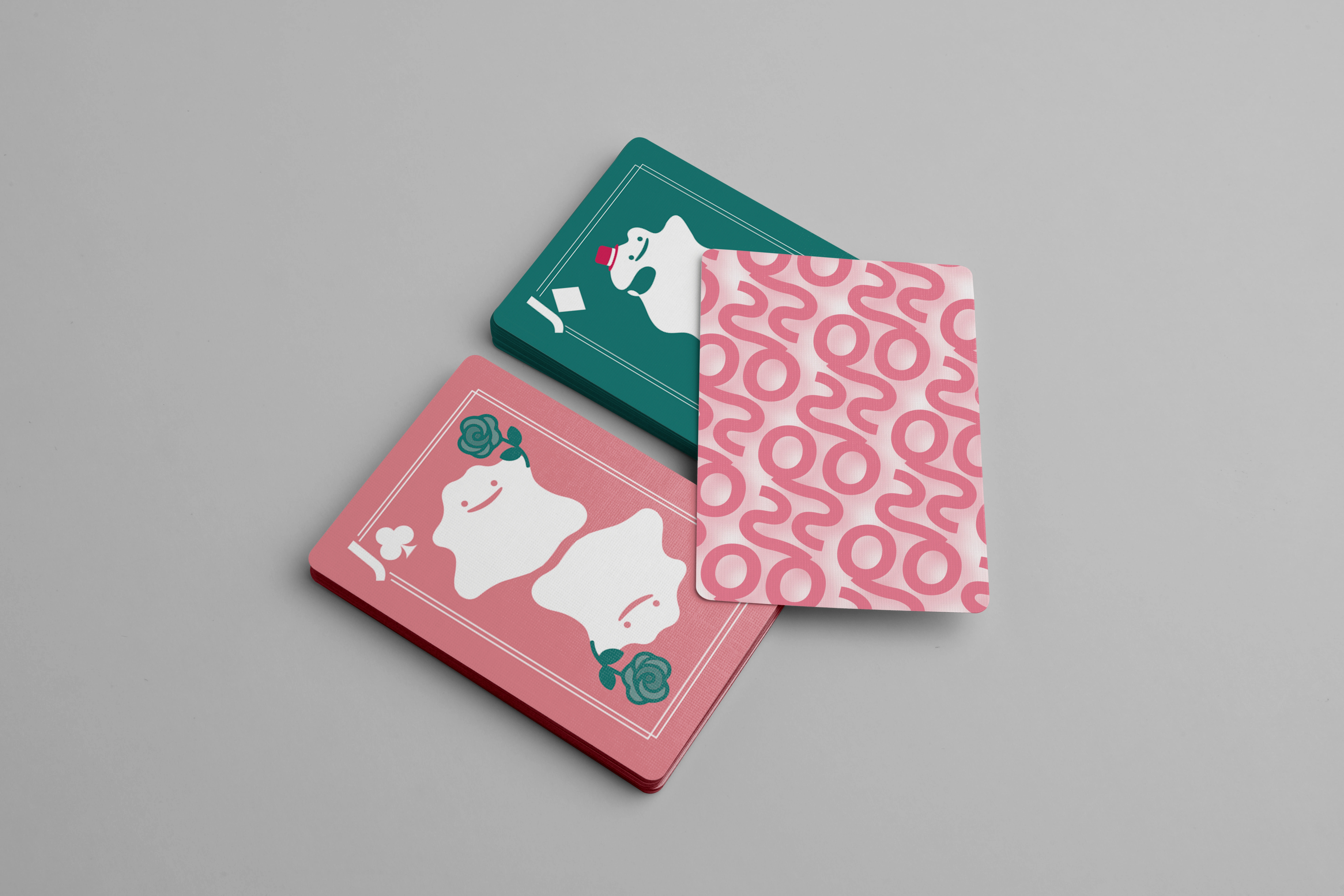 The font was associated with a jack playing card, because it is suitable for both displays and prints – a jack of all trades. Additionally, due to this trait, the Pokemon named Ditto (a shapeshifter) was used as the face of the playing card to further depict its ability to be able to fit into every concept.