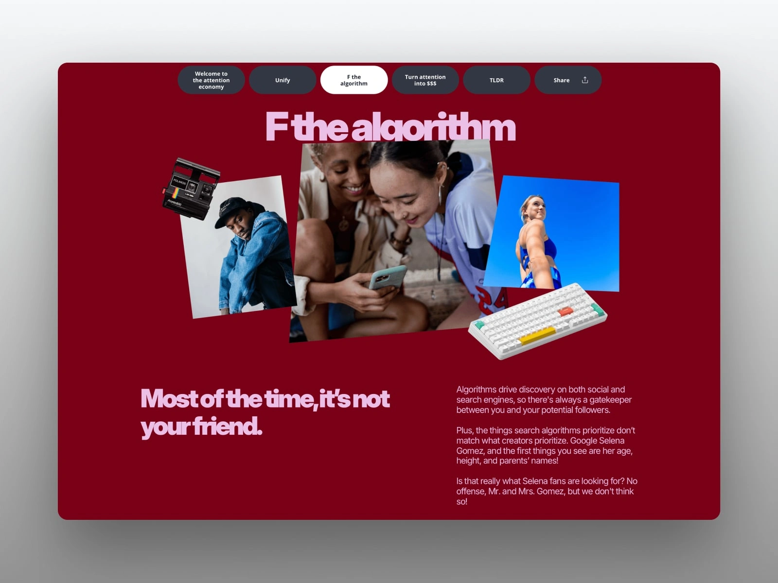 The challenge was to translate Linktree’s minimalist product philosophy into a visually rich yet intuitive website. The new site needed to capture the brand’s vibrant identity while remaining fast, functional, and modular enough for marketing teams to scale easily.