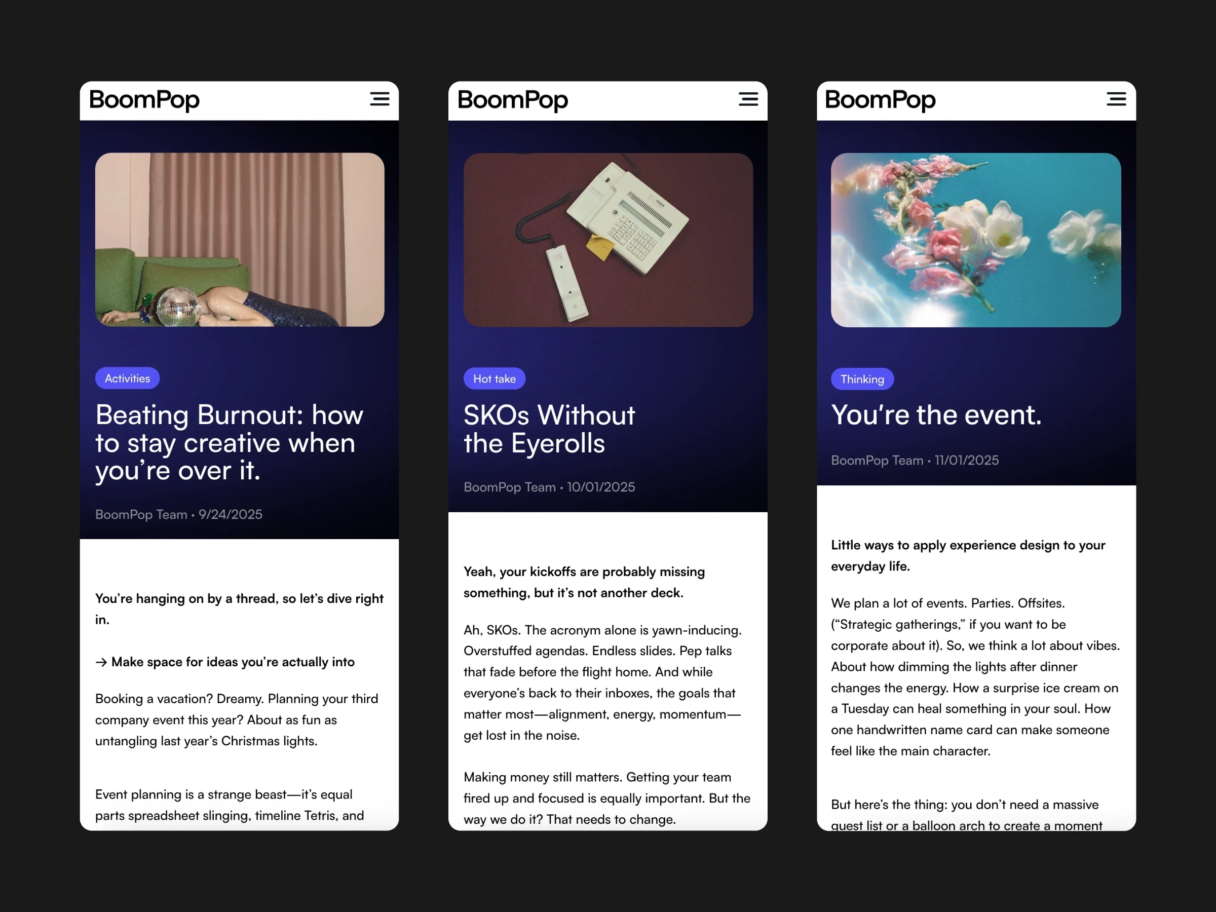 I helped translate BoomPop's refreshed tone into blog content people actually want to stop and read.