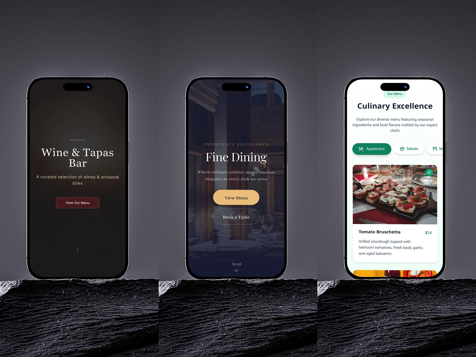 Designed and built a series of digital landing pages for hospitality venues, restaurants, cafes, and bars as part of a larger commercial template collection. Unlike the print work, these are fully live pages, designed to function as lightweight brand presences that venue owners could use immediately.