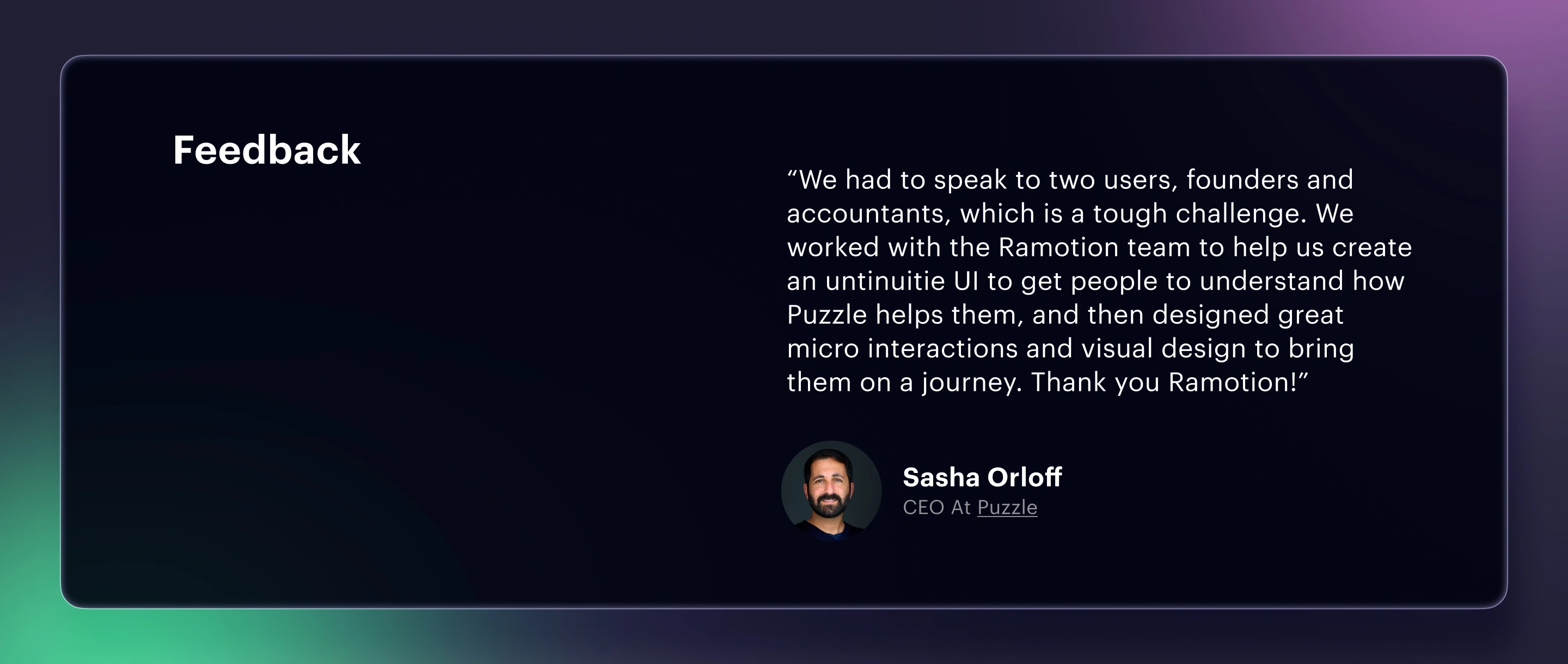 Our website design for Puzzle focused on intuitive navigation, engaging micro-interactions, and modern visuals. This design approach drove a 15% month-over-month growth, highlighting the impact of thoughtful, audience-centric web design.