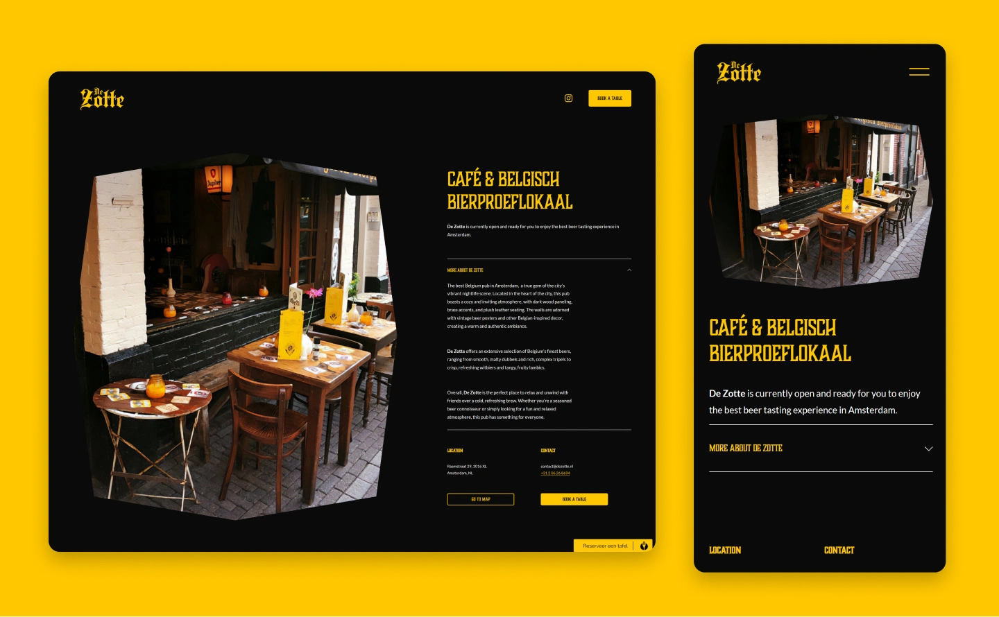 De Zotte, a Belgian Beer Tasting Room located near Leidseplein in Amsterdam, sought to establish a strong brand identity that would reflect its authentic Belgian beer experience and culinary offerings. We were tasked with developing a comprehensive branding strategy, designing a captivating website, and creating engaging social media content to attract beer enthusiasts and gourmands alike.