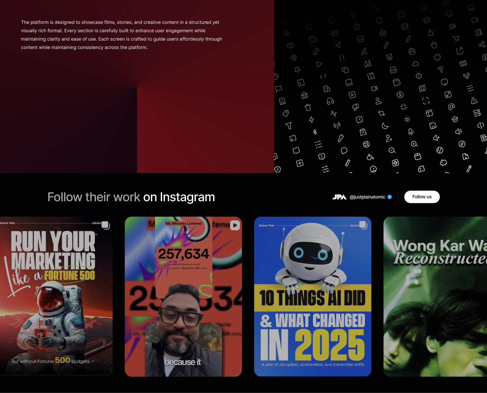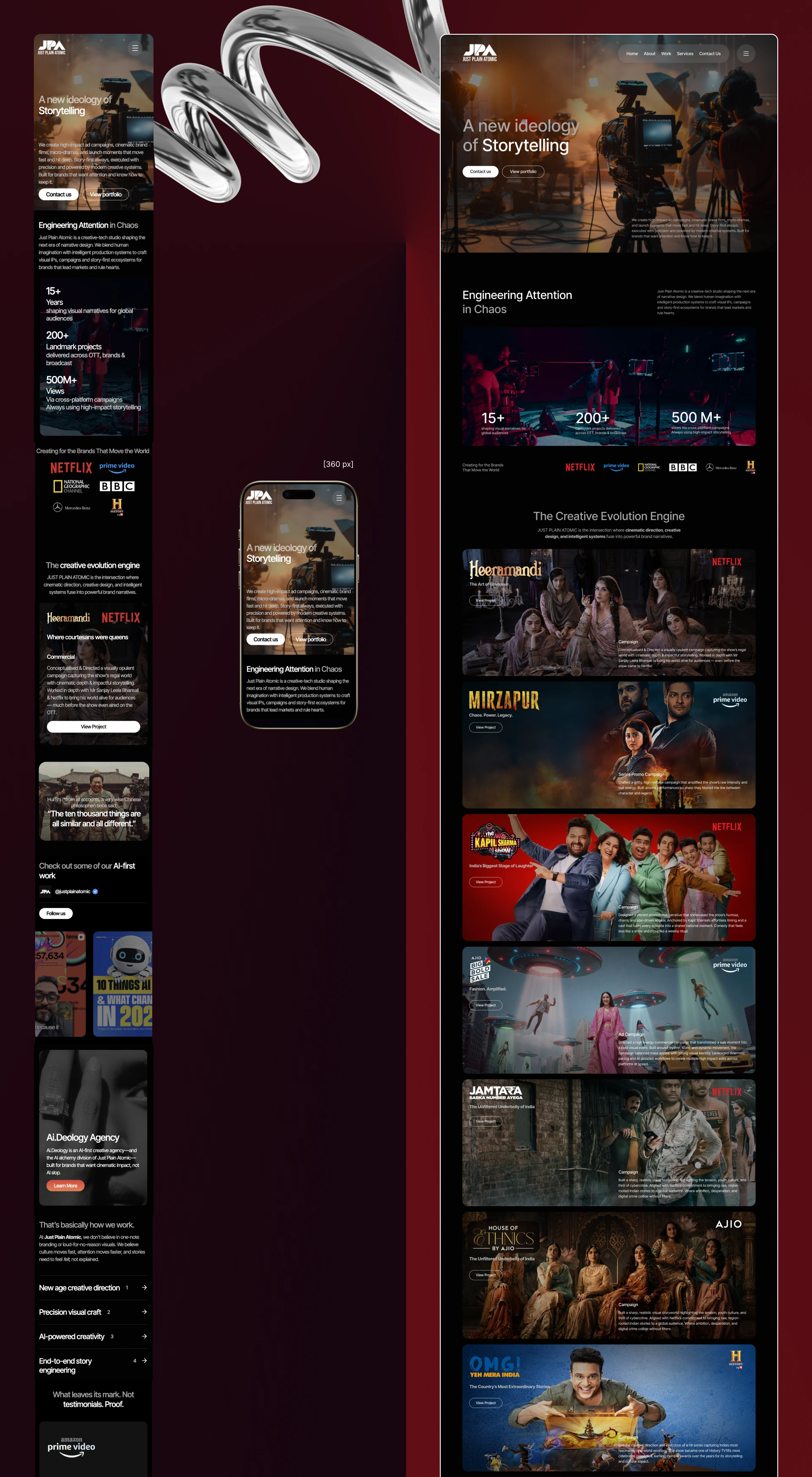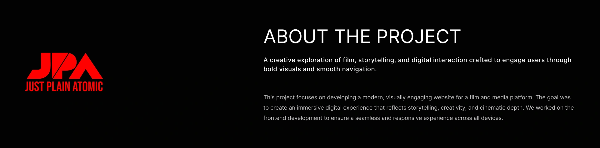 From fluid interactions to dynamic project showcases, we developed each section with precision - maintaining visual fidelity while optimizing for speed, responsiveness, and scalability. Special attention was given to transitions, spacing, and responsiveness to preserve the intended cinematic feel of the design.