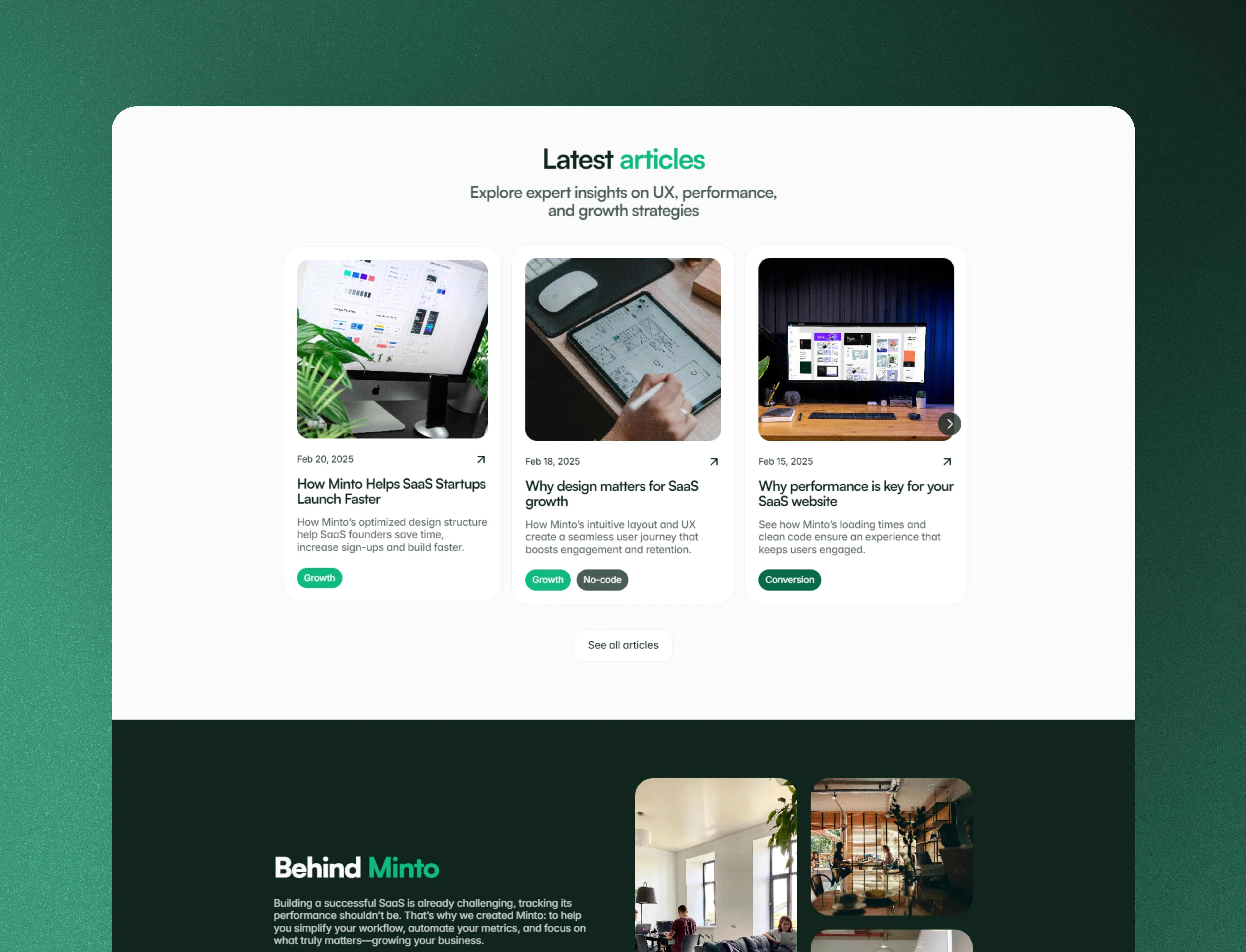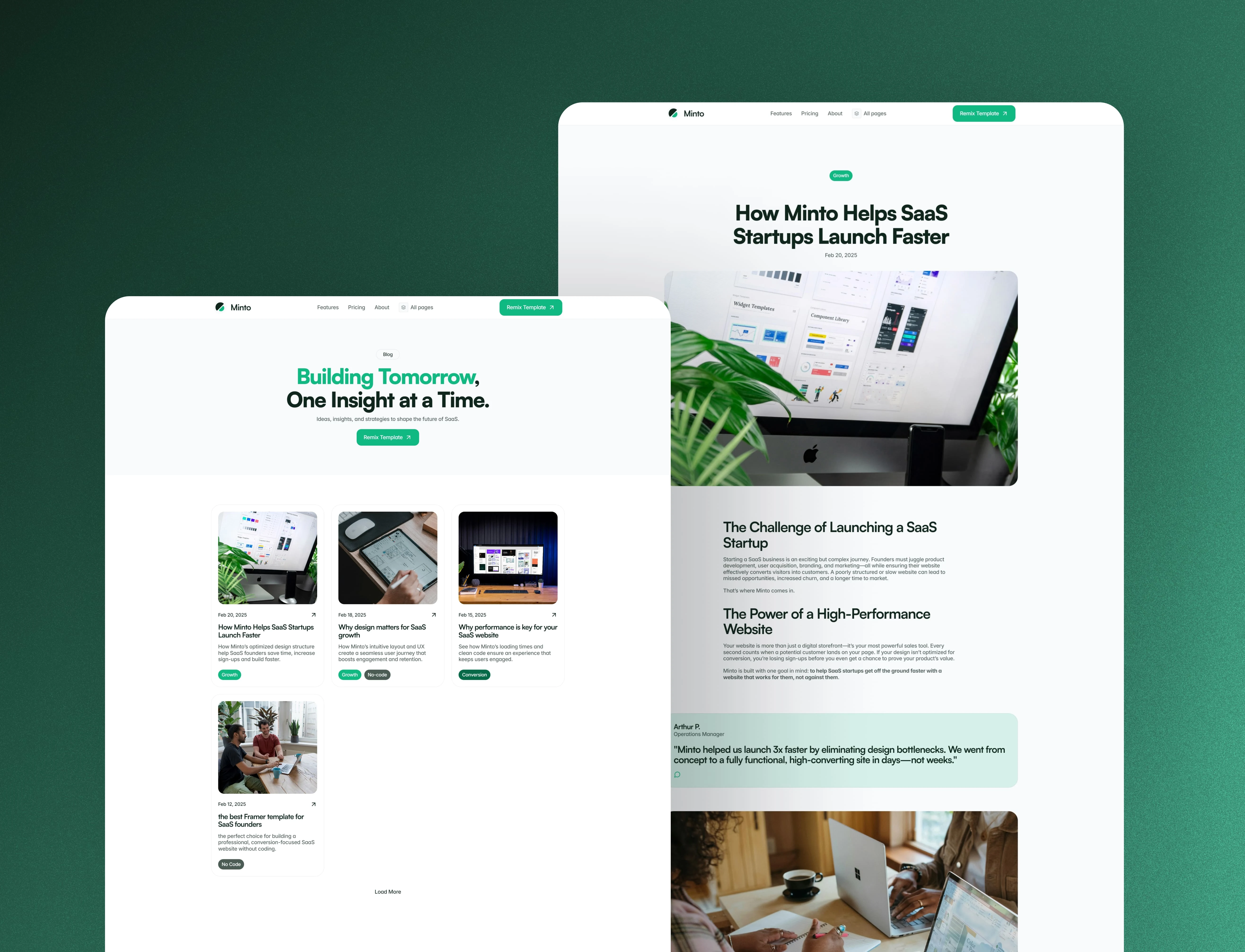 Minto is a Framer template I designed to maximize user engagement. Blending aesthetics with performance to create a high-converting landing page.
