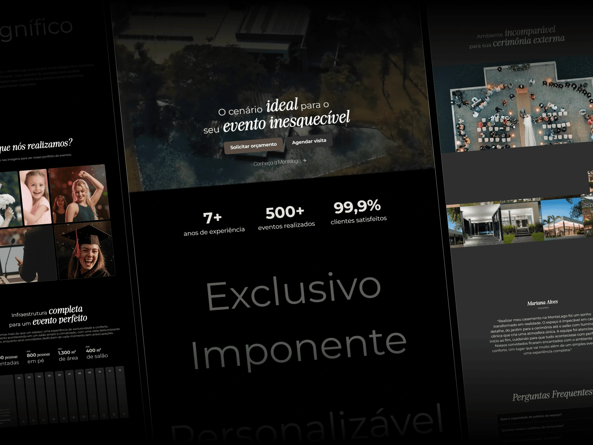 MonteLago is an institutional landing page designed to showcase a premium event venue in Santa Maria, RS, Brazil. Translating its elegant and natural atmosphere into a fluid, conversion-focused digital experience, the new website highlights architecture, structure and key differentials with clarity, using refined typography, a green and gold palette, high-quality imagery and subtle microinteractions.The blend of emotional storytelling and minimalist design positionsMonteLago as a benchmark in premium event spaces.