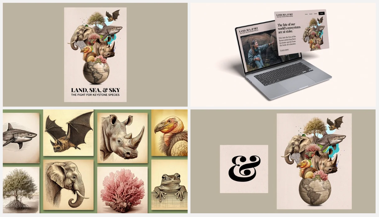 My artwork portrays Earth as a living foundation from which diverse species emerge in a layered collage. This composition illustrates the precarious existence of these creatures—teetering on the edge of extinction while remaining intrinsically connected to our planet. The organic, flowing design mirrors the intertwined narratives of researchers featured in the documentary, with all elements growing from the planetary core to form a unified ecosystem. Through this visual metaphor, I aim to emphasize the beauty of our natural world and our urgent responsibility to preserve it.