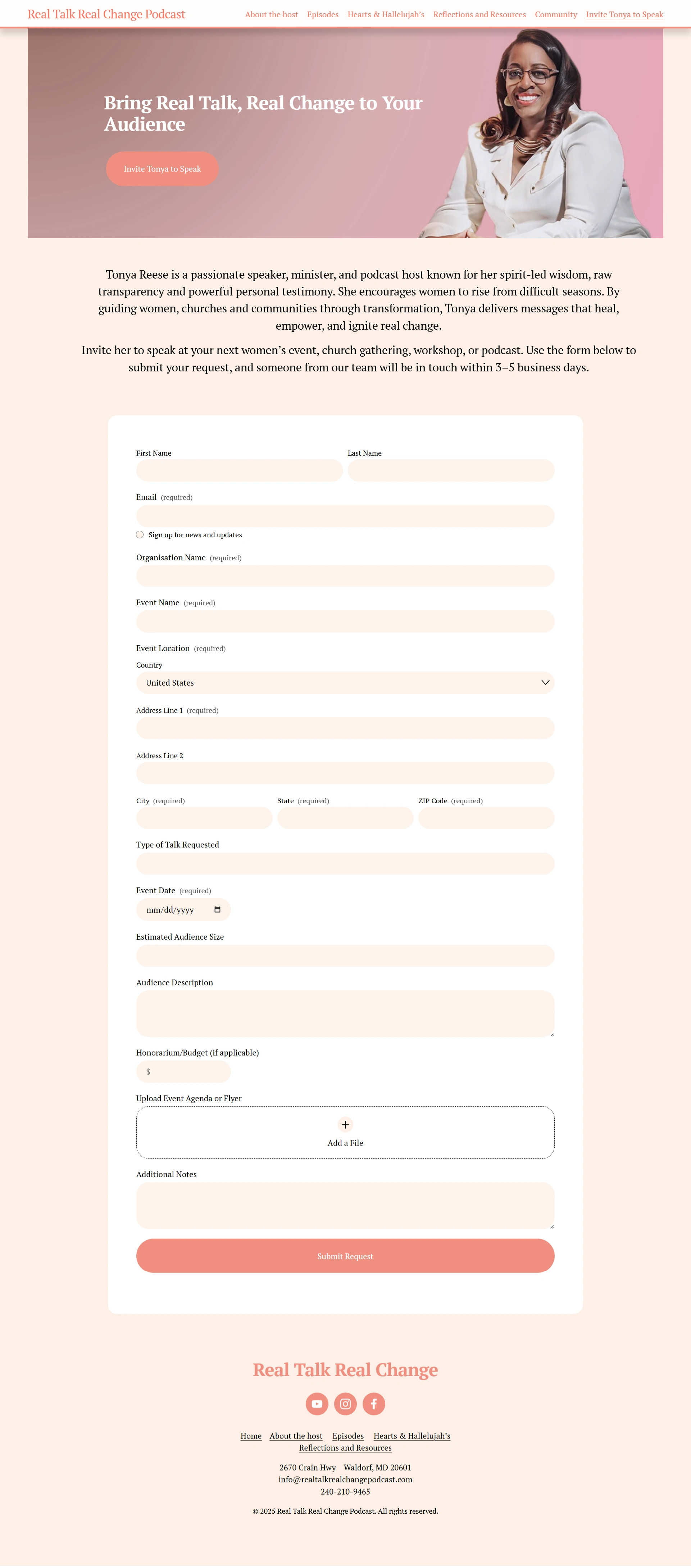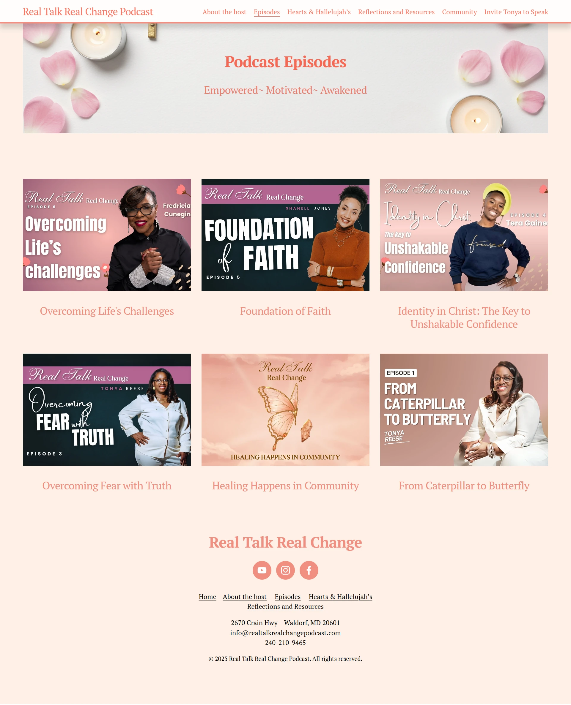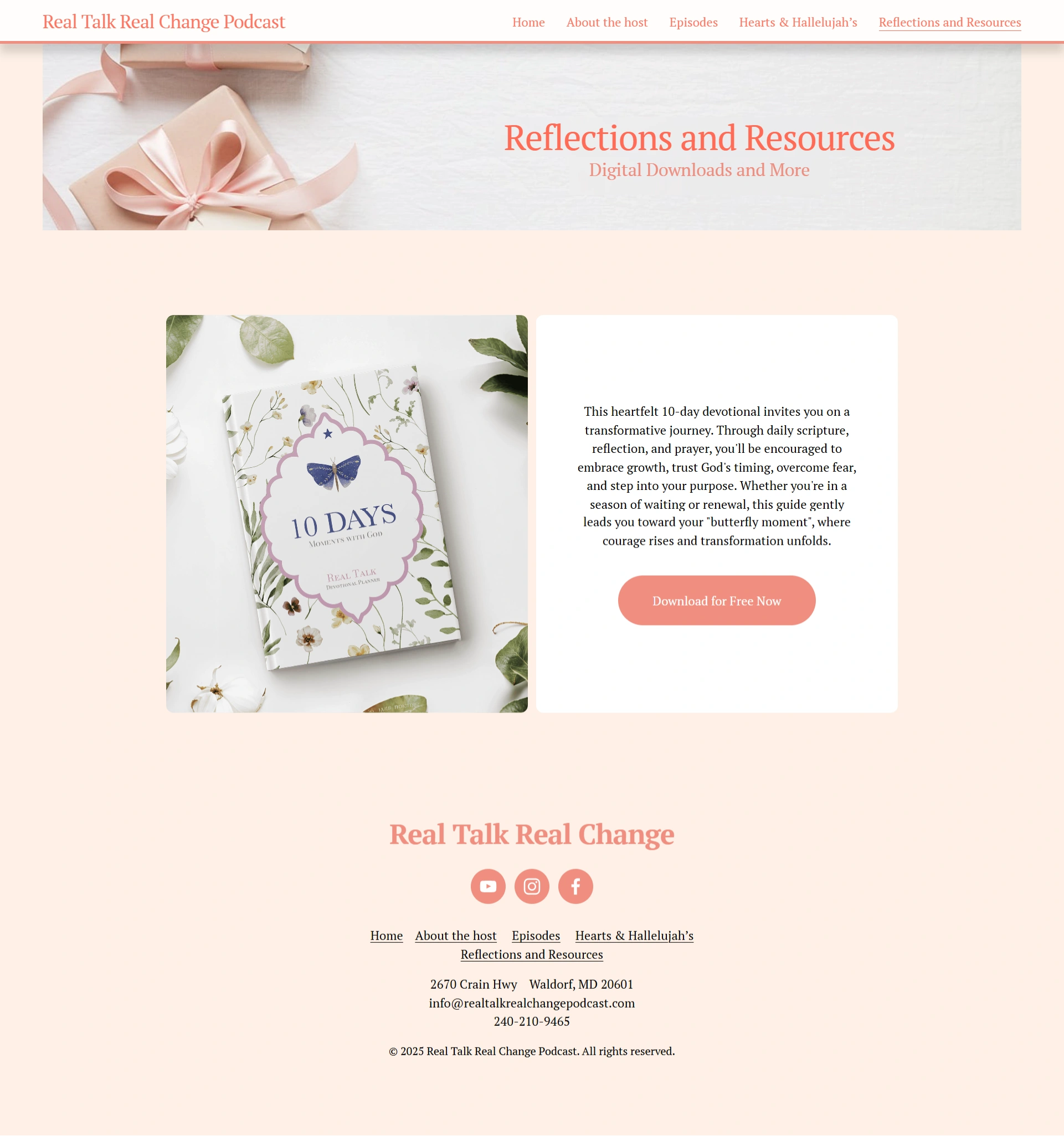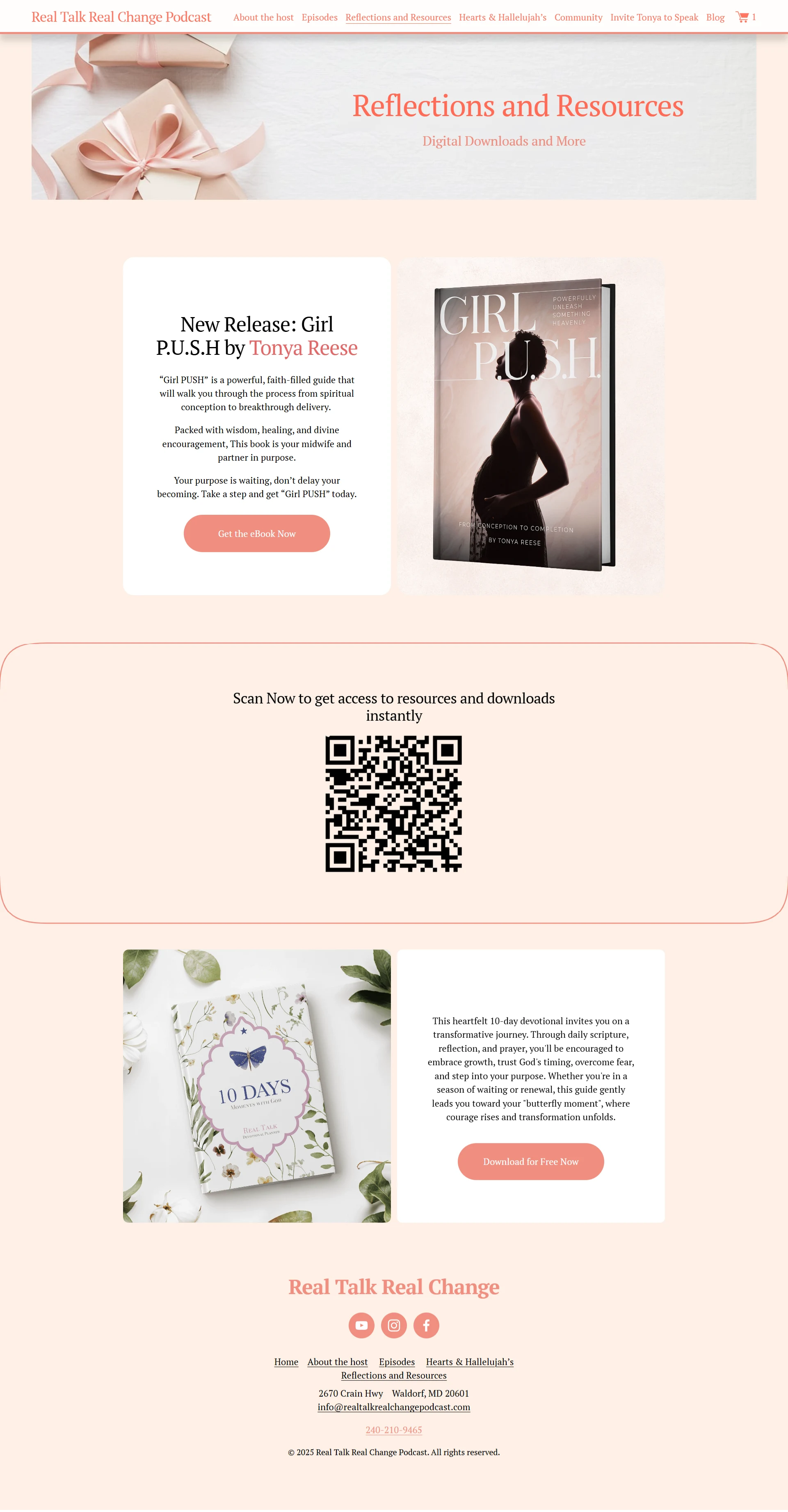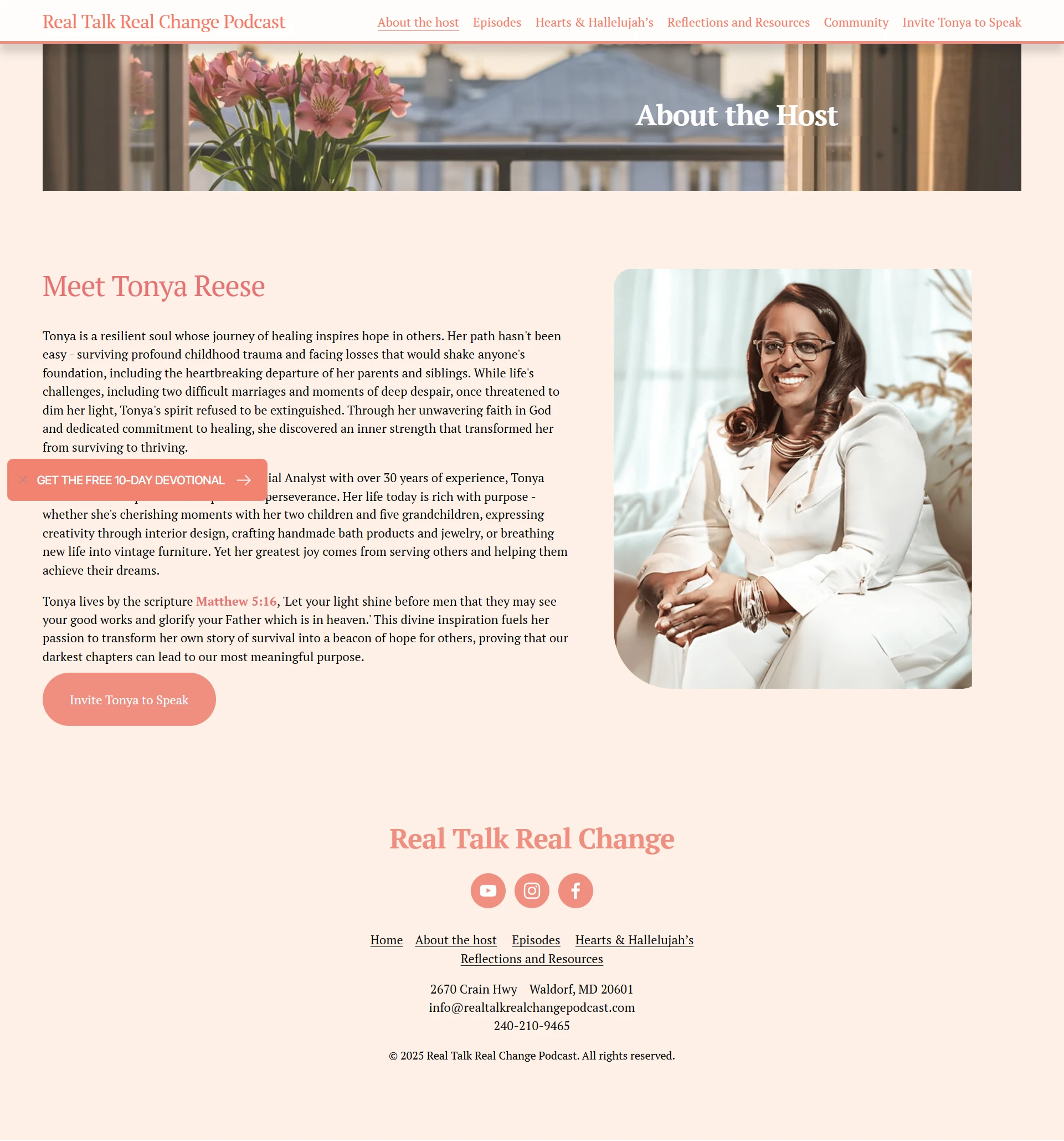 Tonya, a passionate Christian leader and first-time podcaster, reached out to me. More than a website, she needed an online space that felt soft, sacred, and strong.