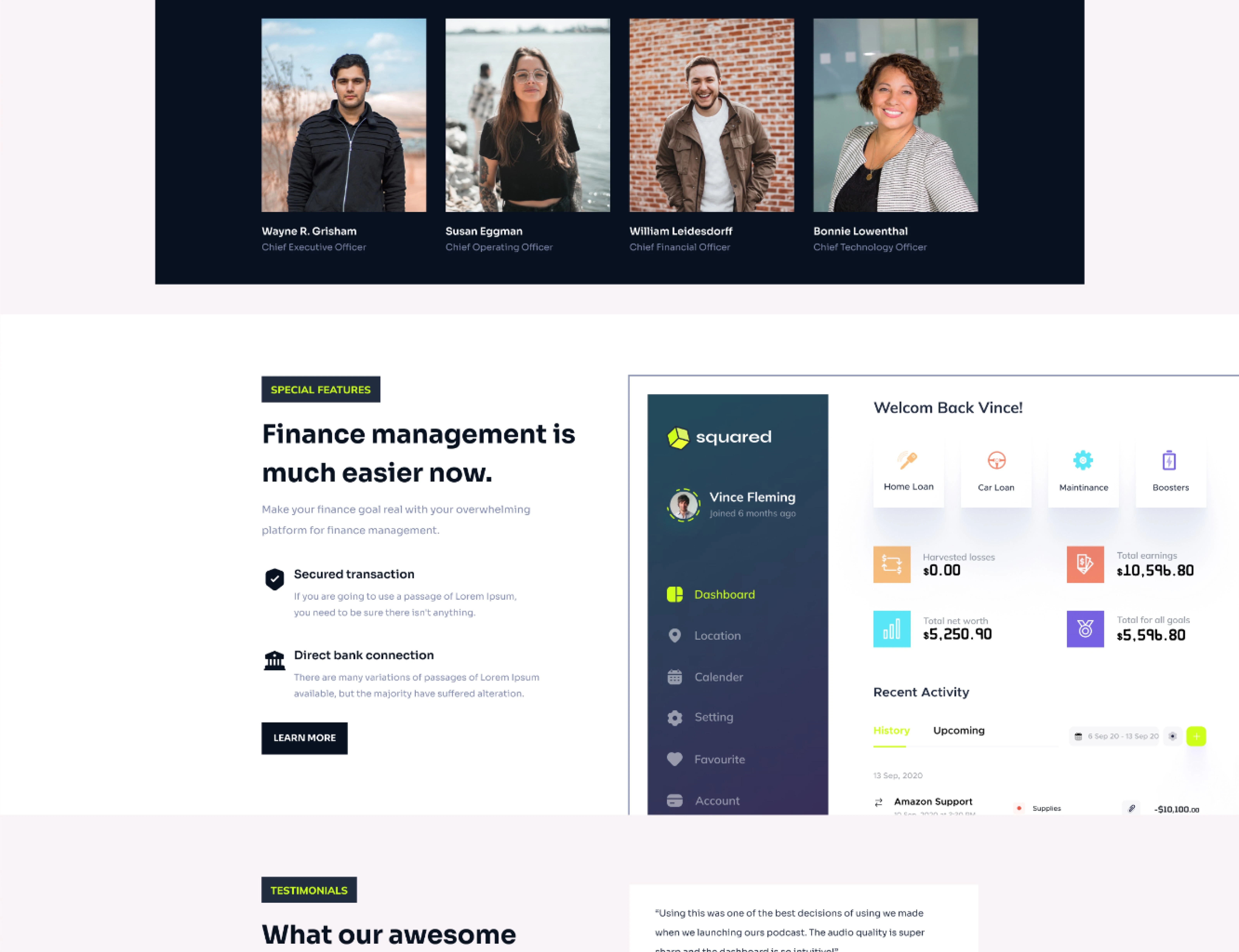 Squared is a modern finance management website designed to simplify how individuals and small businesses track, analyze, and manage their finances. The platform provides real-time insights, smart analytics, and an intuitive dashboard β helping users stay financially aware and make informed decisions with confidence.