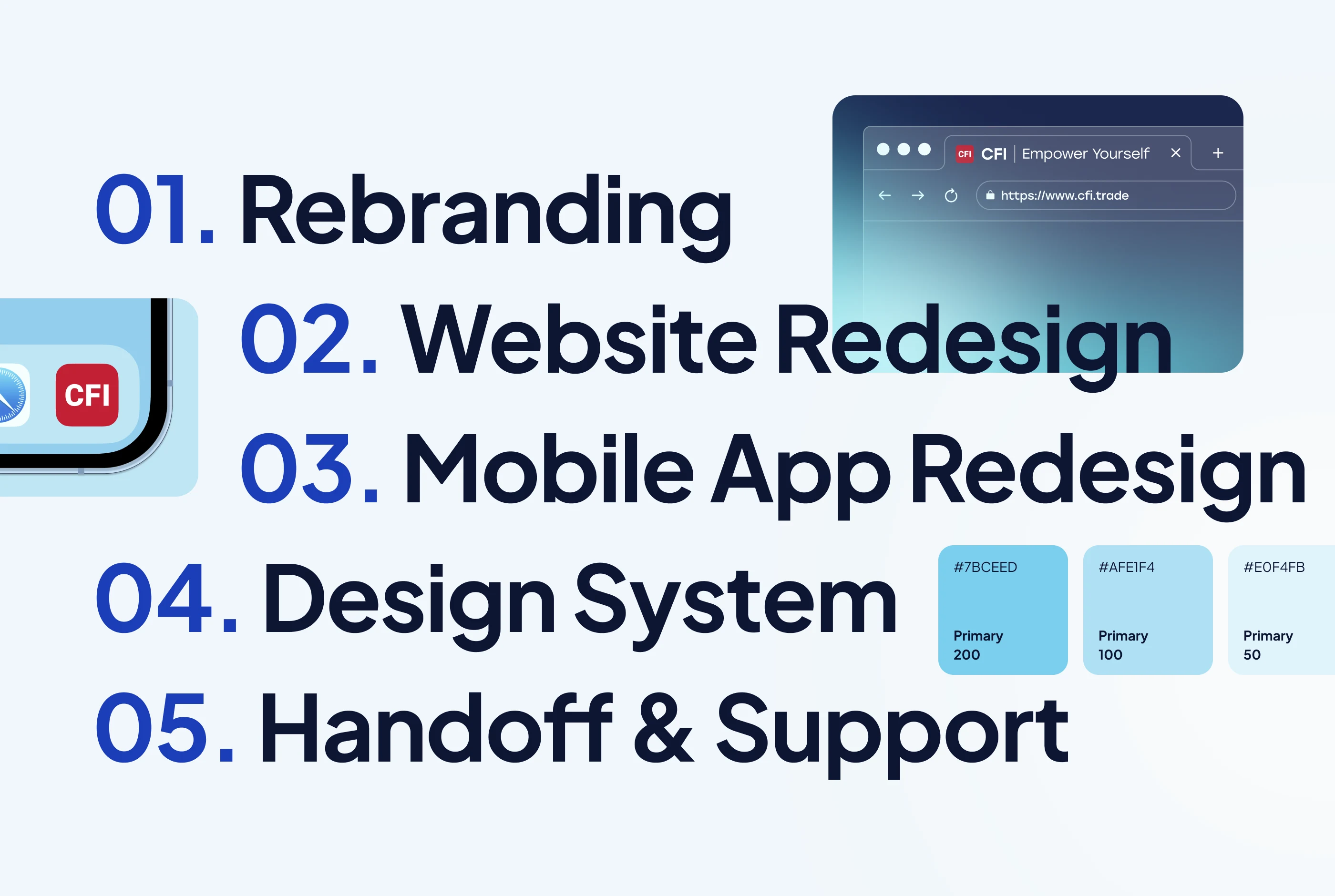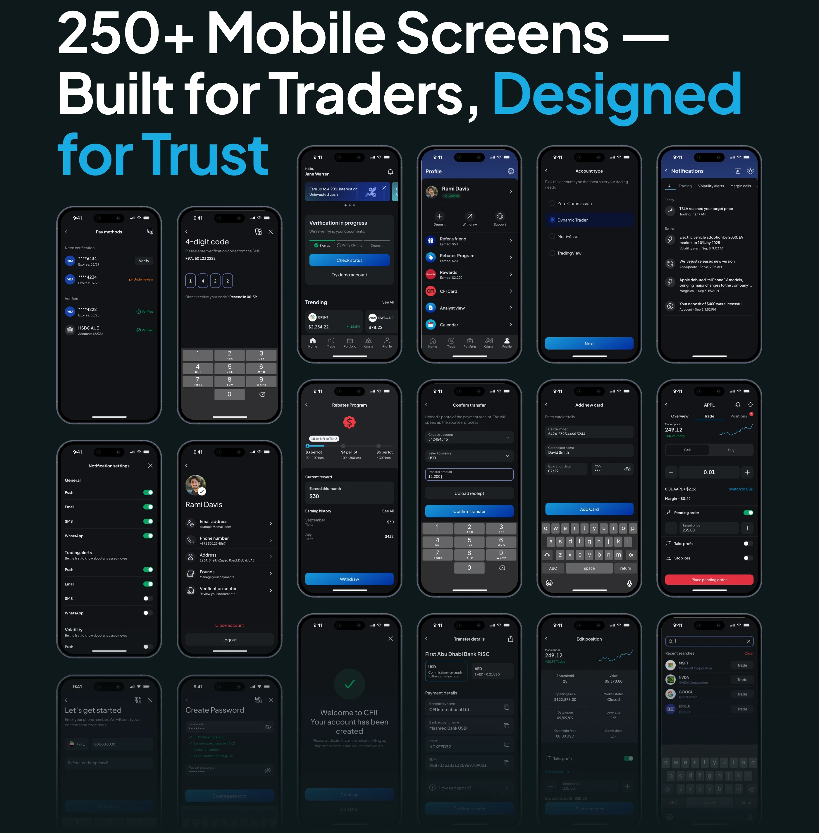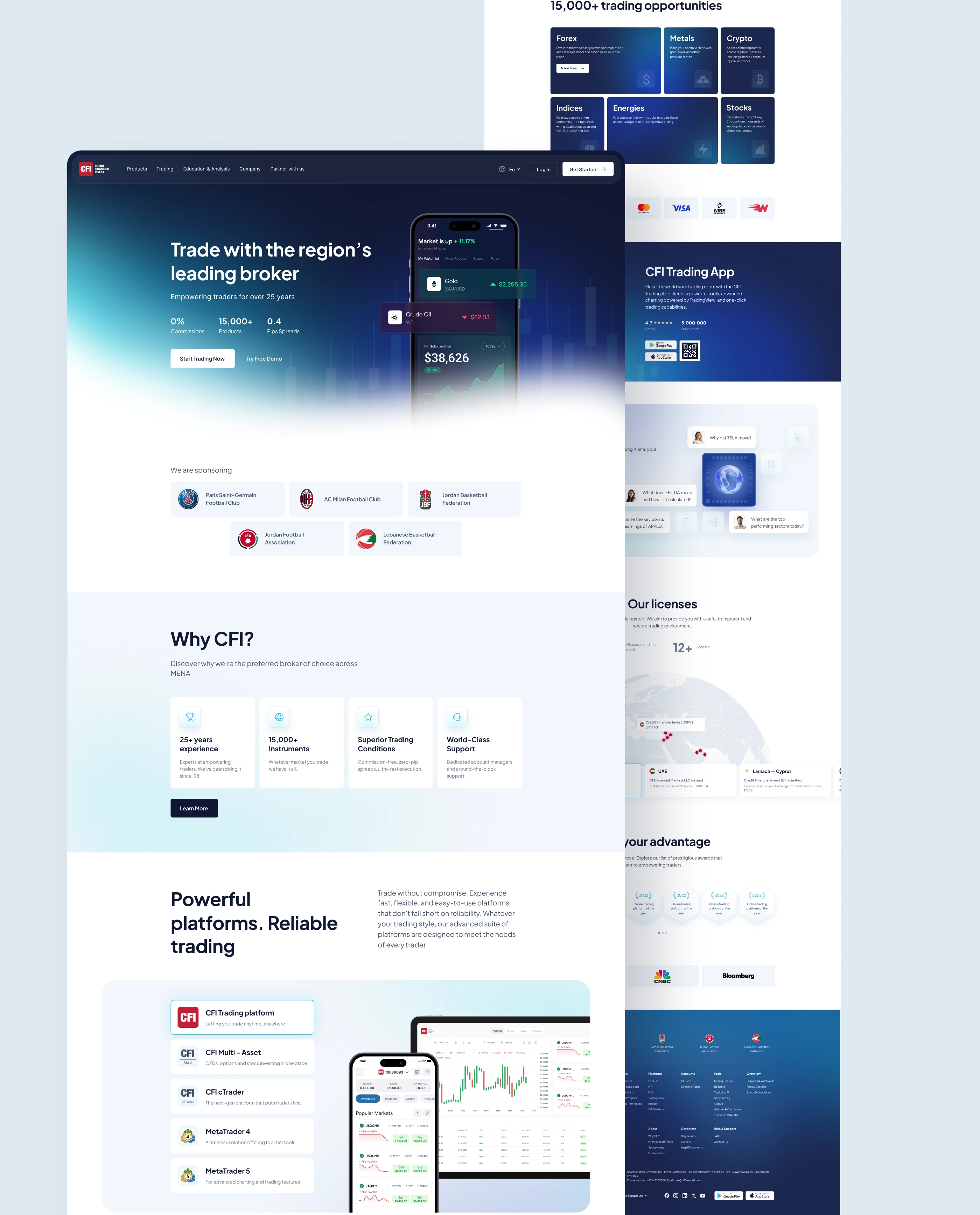 CFI is a global multi-asset brokerage based in the UAE, offering access to stocks, forex, commodities, and indices. The company partnered with Fireart to modernize its digital presence and create a cohesive experience across web, mobile, and marketing touchpoints.