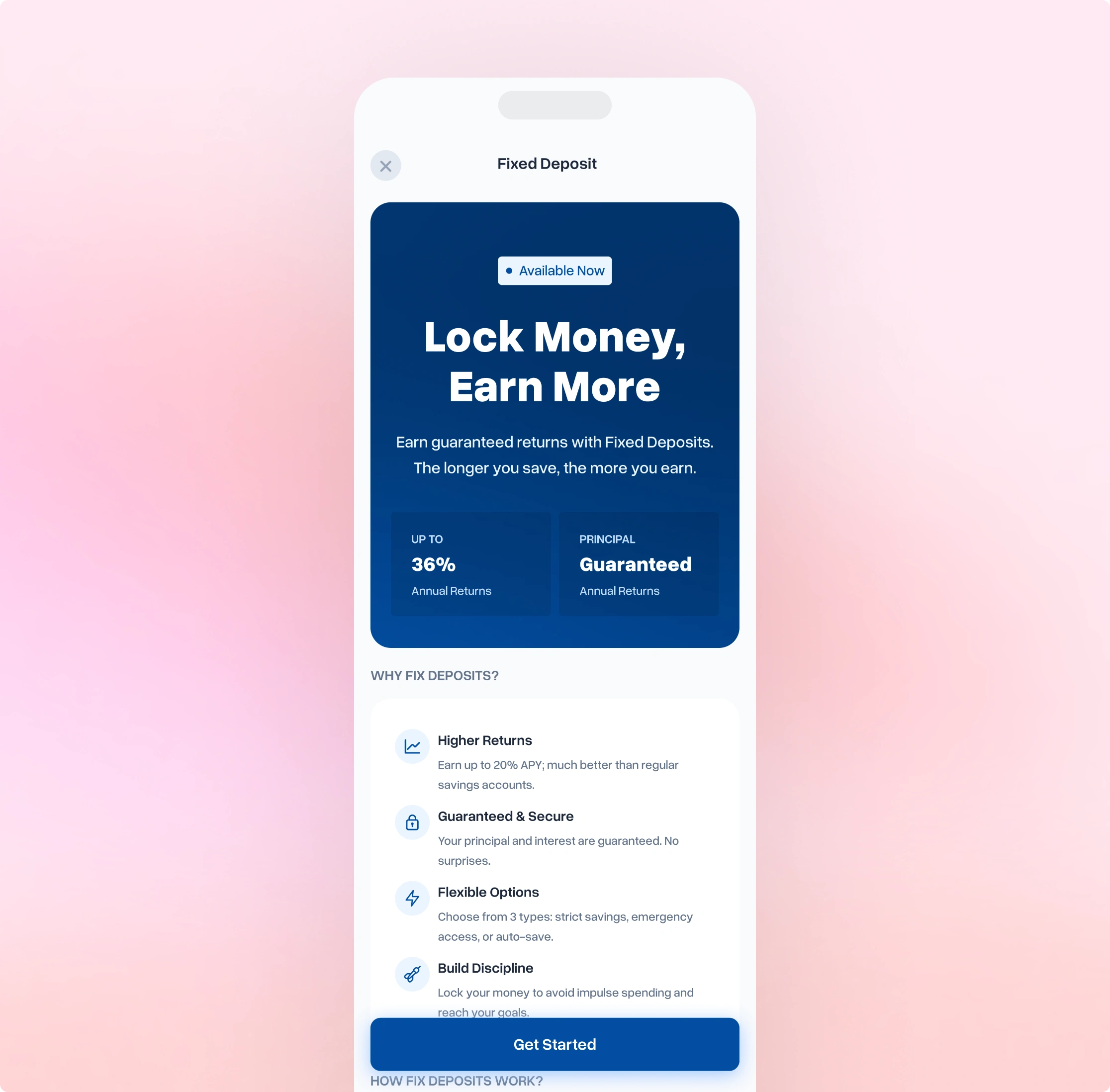 Total Lock, Variable Lock, Spending Control were mechanism-first names that described what the product does to money, not what it does for users. Renaming them in design review felt overdue. This conversation should happen at brief stage, with the designer at the table, not as a late-stage copy polish.