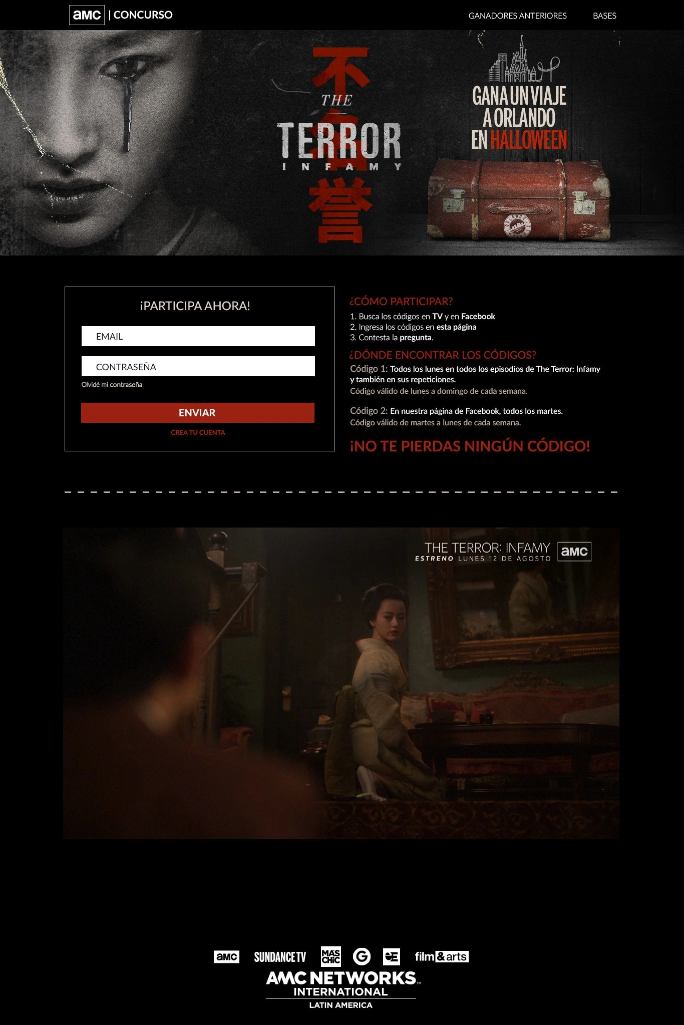 Landing page design for an AMC contest based on a tv show called The Terror.