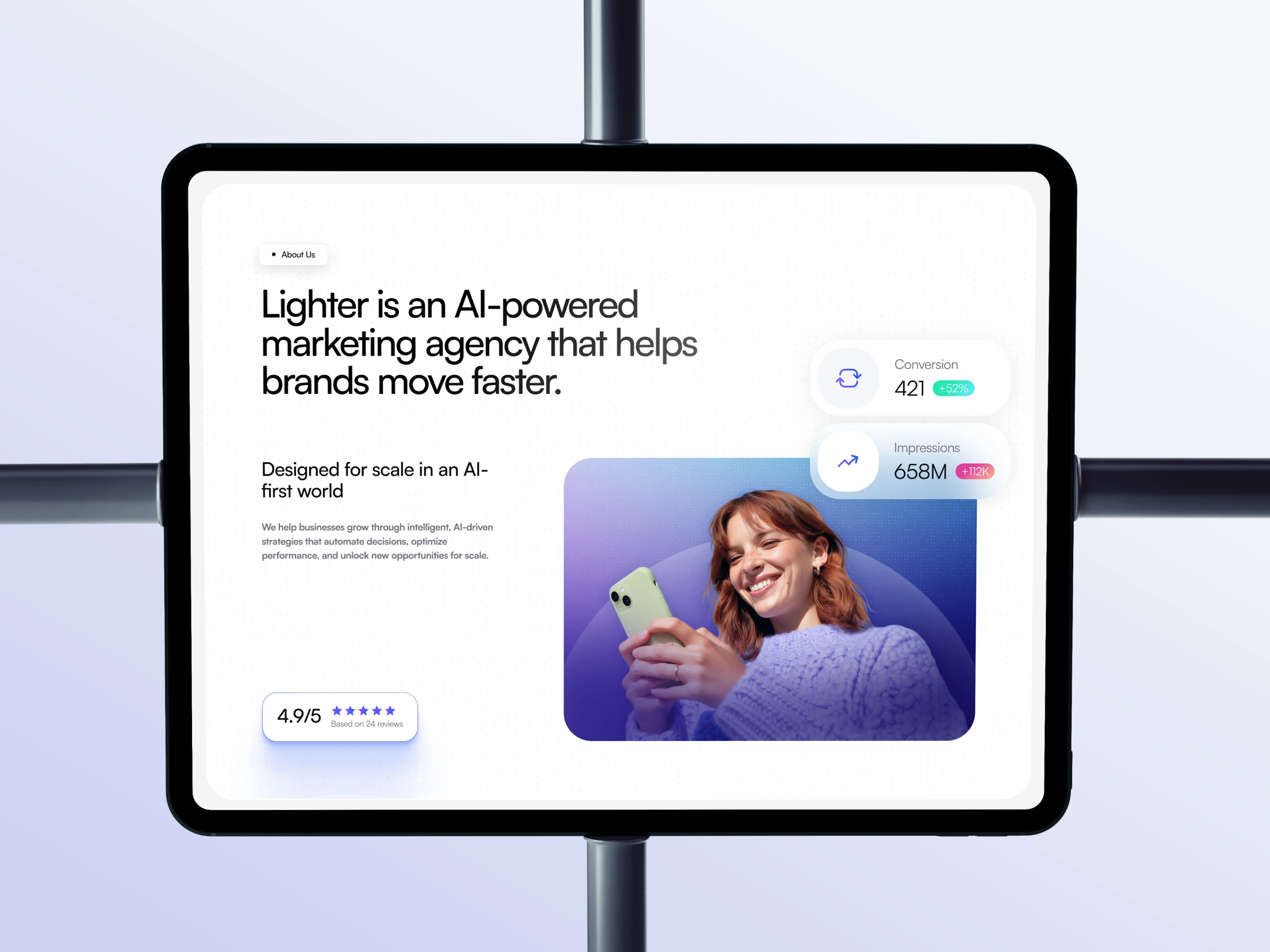 Lighter is a premium WordPress theme designed for modern creative agencies. For this specific demo, the goal was to create a visual identity for a Marketing Agency that leverages AI and data-driven insights. The result is a bold, minimalist, and highly functional interface that prioritizes clarity and conversion.
