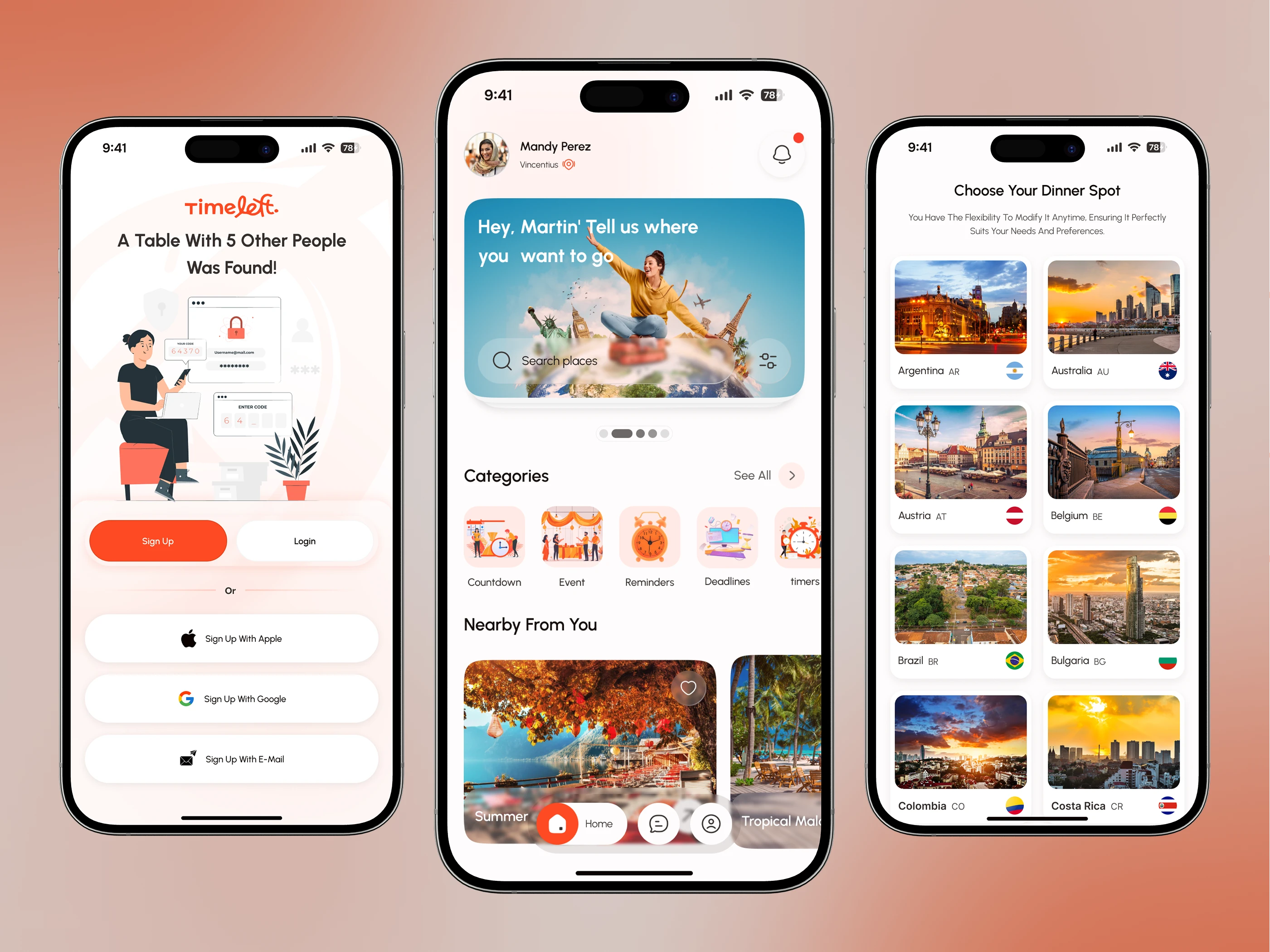 TimeLeft is a stylish and intuitive travel app designed to simplify trip planning and spark your wanderlust. Featuring interactive destination selection, smart countdowns, event reminders, and personalized experiences, it keeps every journey organized and exciting.
