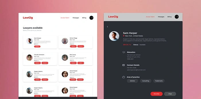 As a UX designer on the Law Gig project, my role was to design a user-friendly and intuitive website that meets the needs of both legal professionals and clients.