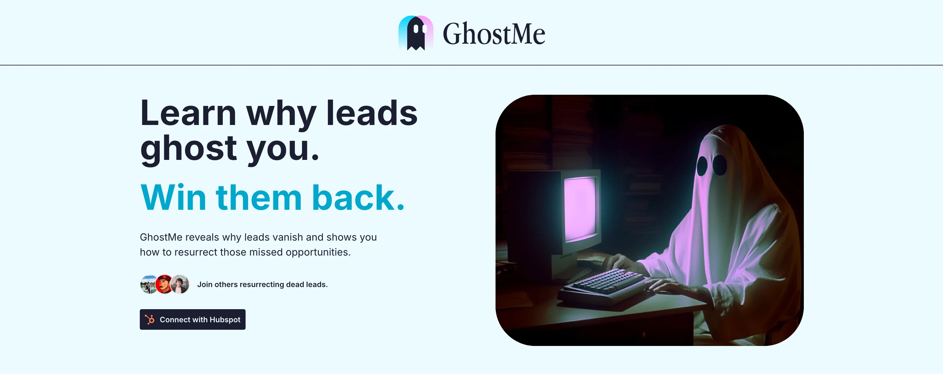 GhostMe helps sales teams understand why leads go silent. The platform integrates with HubSpot, detects ghosted deals, sends anonymous feedback requests, and gives leads the option to reveal their identity if they want to re-engage.