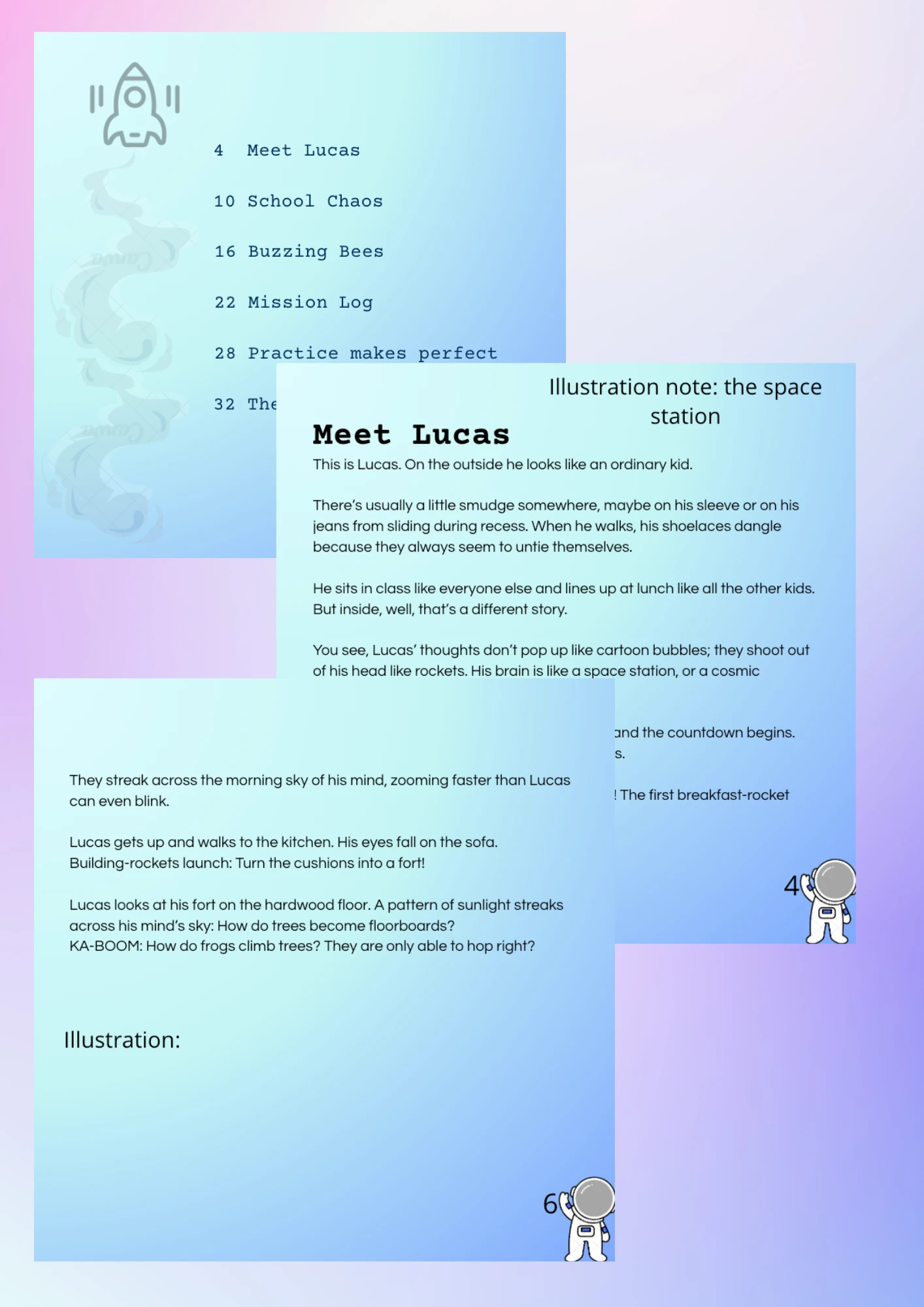 I also provided detailed instructions for the illustrator, including scene guidance, emotional cues, and visual metaphors to represent the child’s inner world.