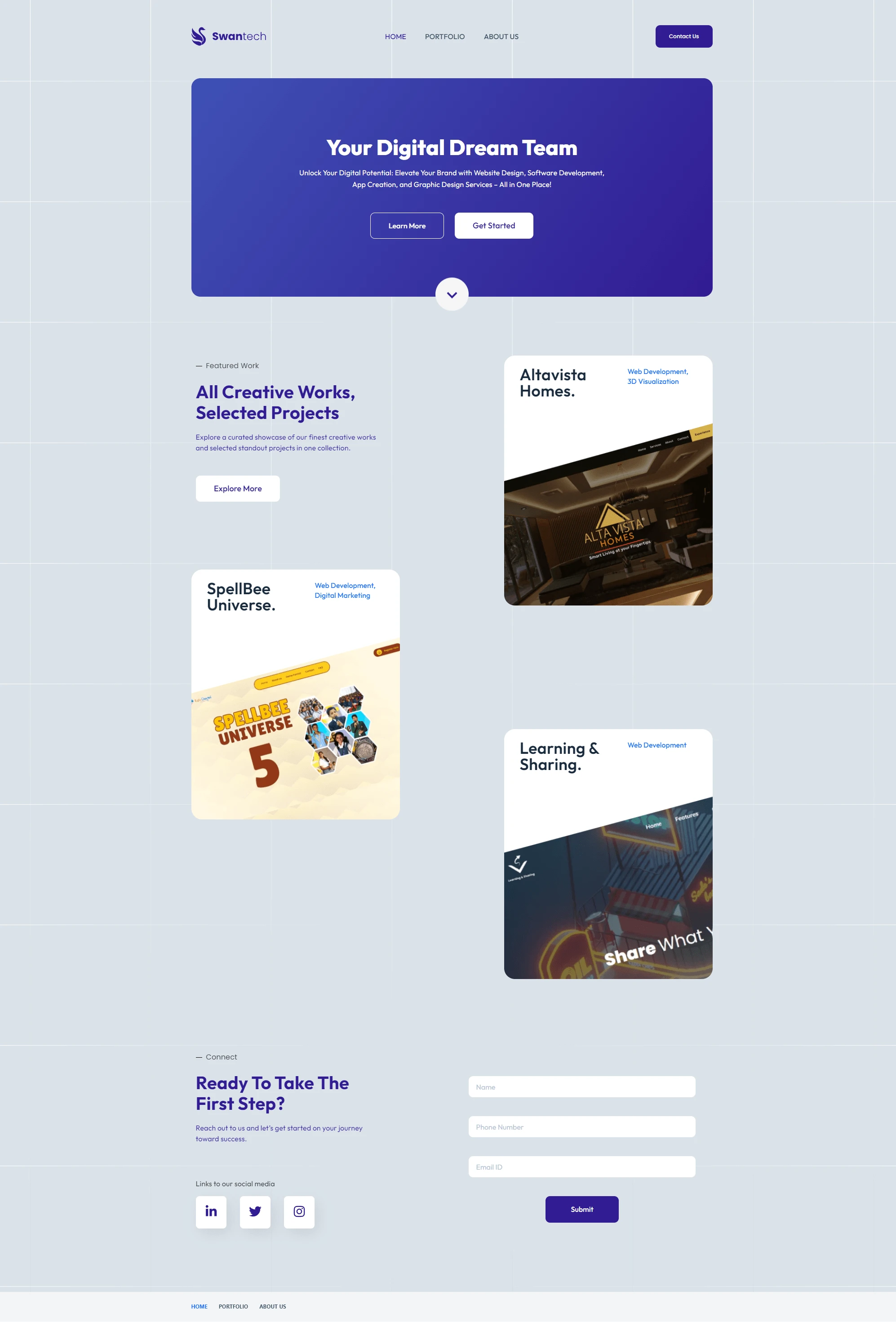Full website design and build for a Tech & Branding Solution company. I designed the pages first and then built a responsive website using Webflow.
