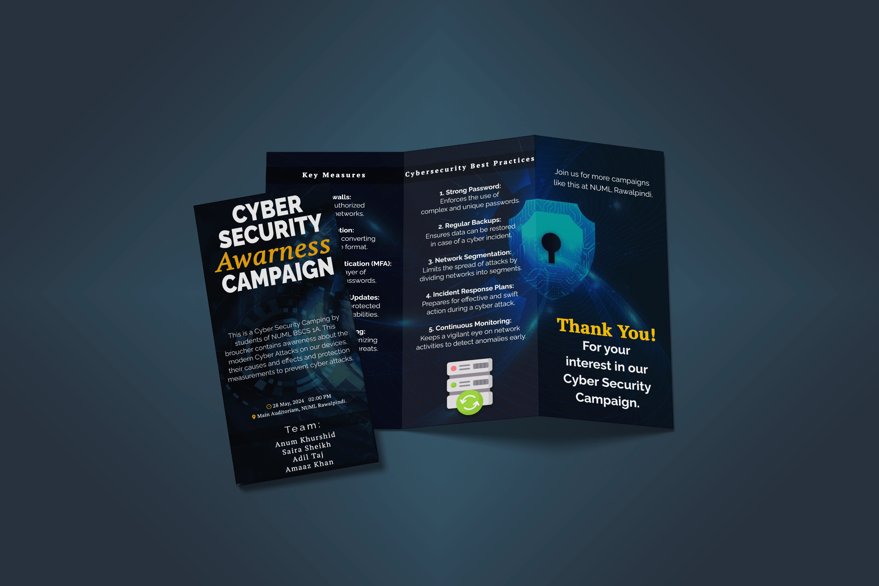 The is a double sided tri fold flyer i created to spread awerness about cyber secuirty why it is important and why we should learn about it.
