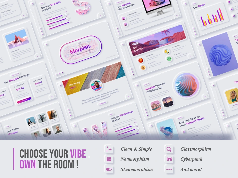 Every brand has a tone. Every message has a mood. Here, your presentation takes your voice — whether it’s playful, modern, sleek, or deeply professional — and gives it a wardrobe that fits perfectly. 👔🎨💃