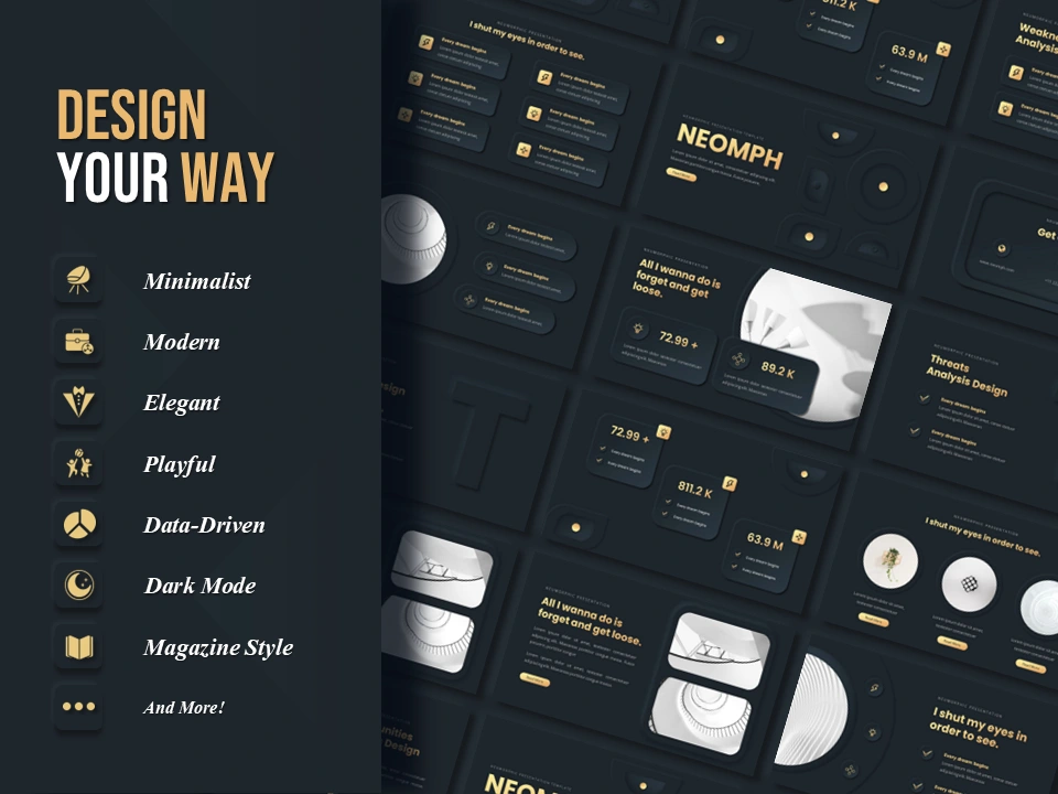 Slide after slide is tailored to match your theme. Minimalist for the focused. Data-driven for the analytical. Magazine-style for the bold. Dark mode for the dramatic. There’s no one-size-fits-all — it’s design your way. 🛠️✨
