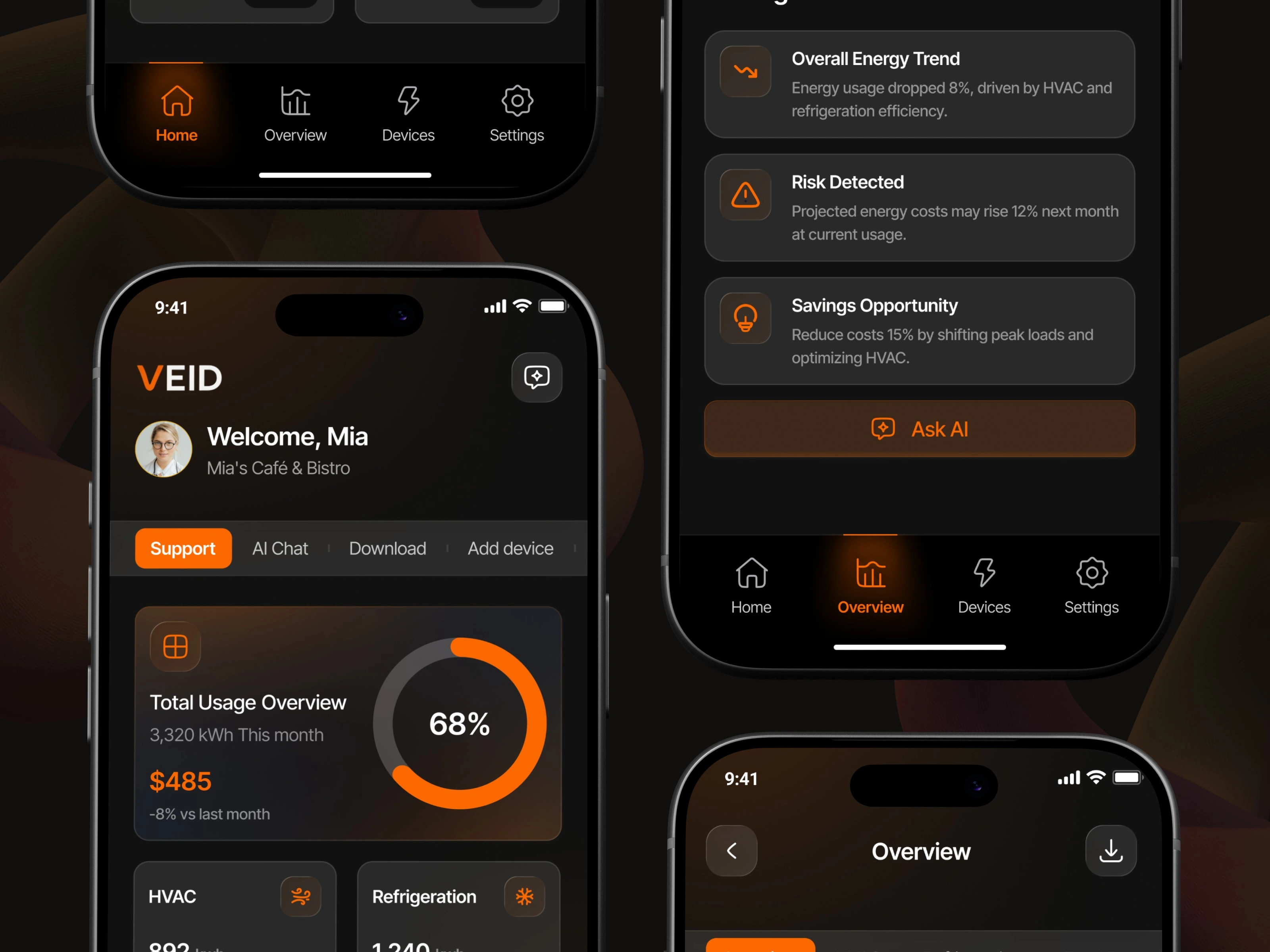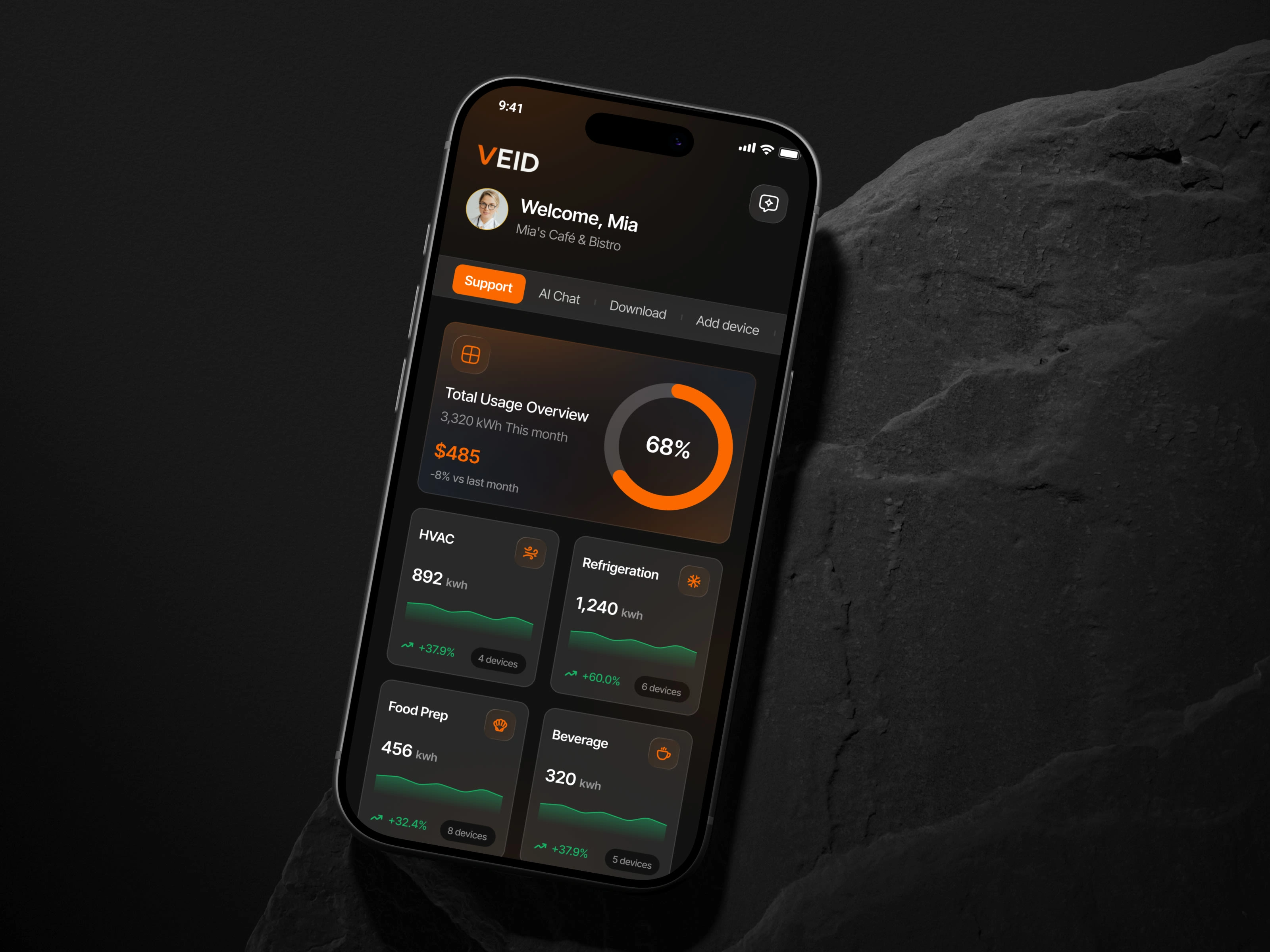 VEID helps users track home energy consumption with AI insights and real-time dashboards, turning complex data into simple savings opportunities.