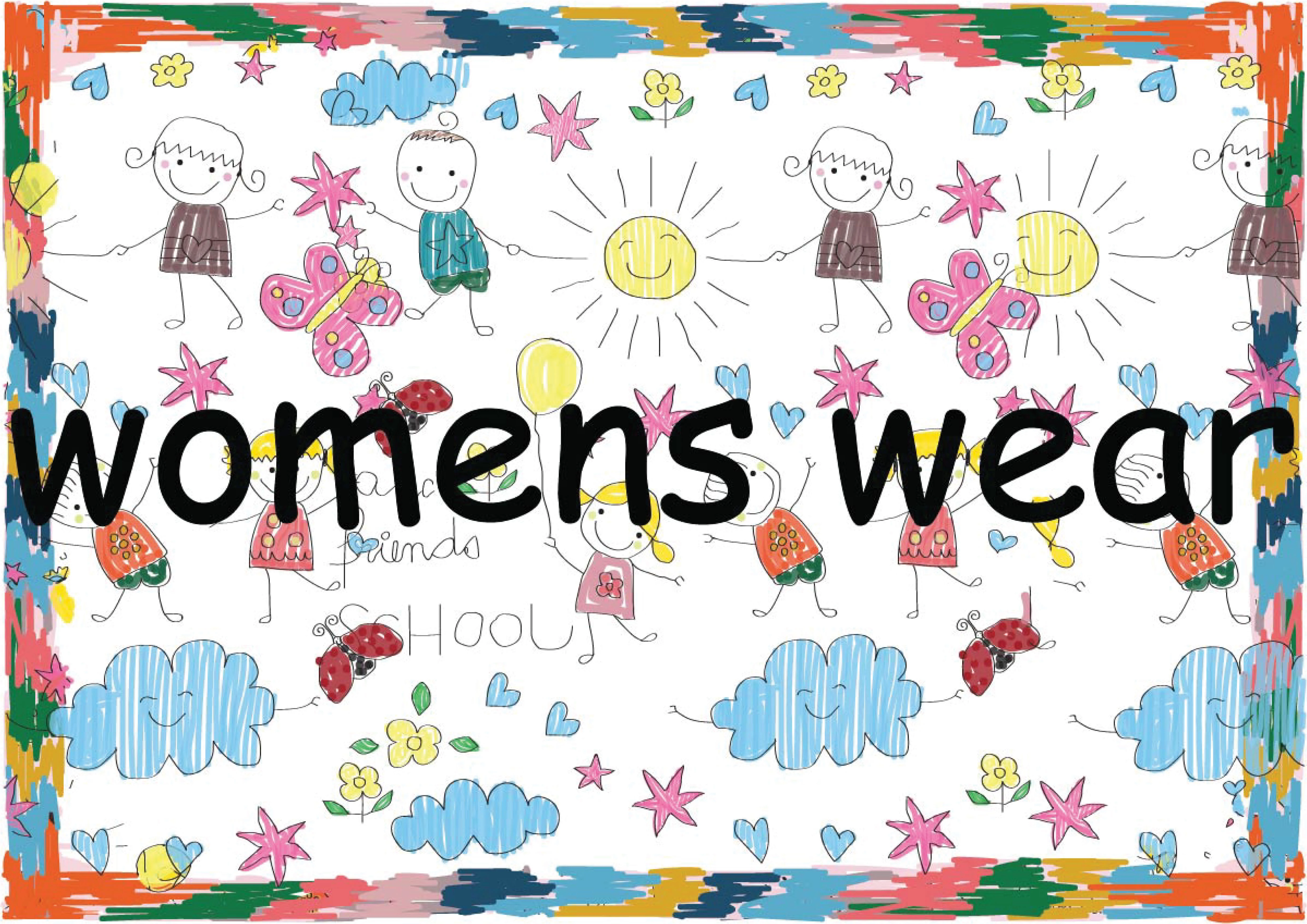 I created a collection inspired by childhood memories, featuring soft pink tones and playful motifs like children's drawings, designed for women's wear.