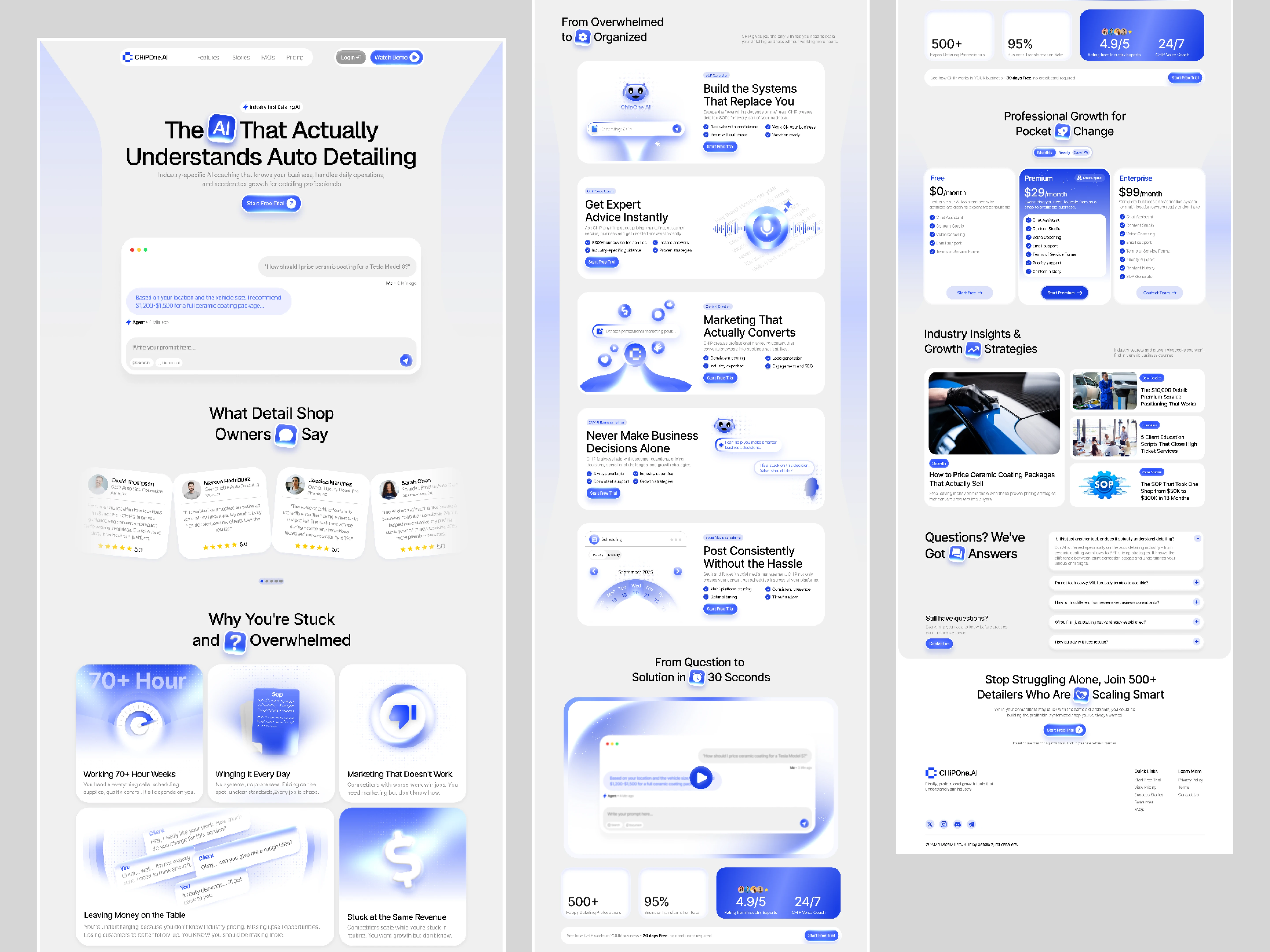 Landing page Redesign and strategy for CHiPOne.ai the first AI built exclusively for auto detailing businesses. High-converting messaging that drives sign-ups