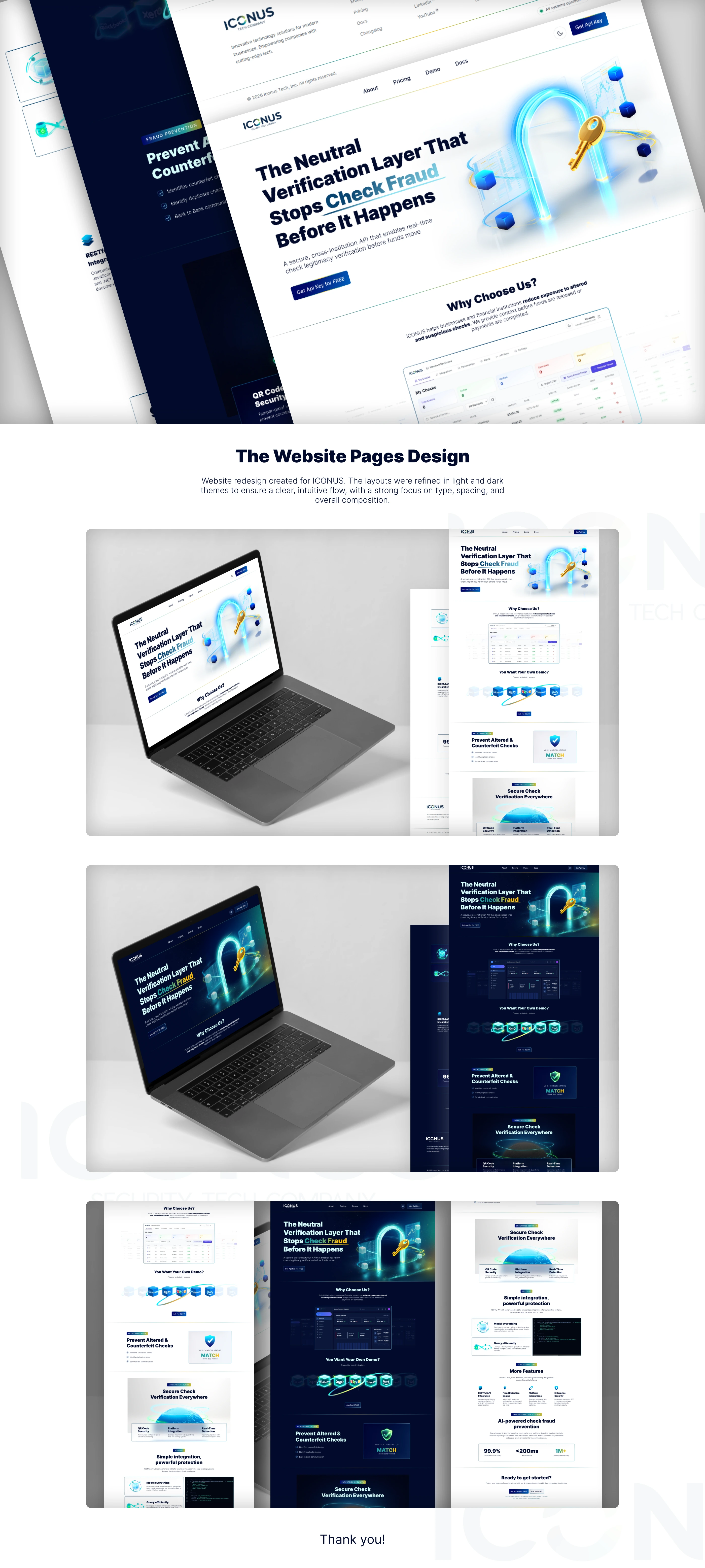 Website redesign created for ICONUS - a tech company. The layouts were refined in both light and dark theme.