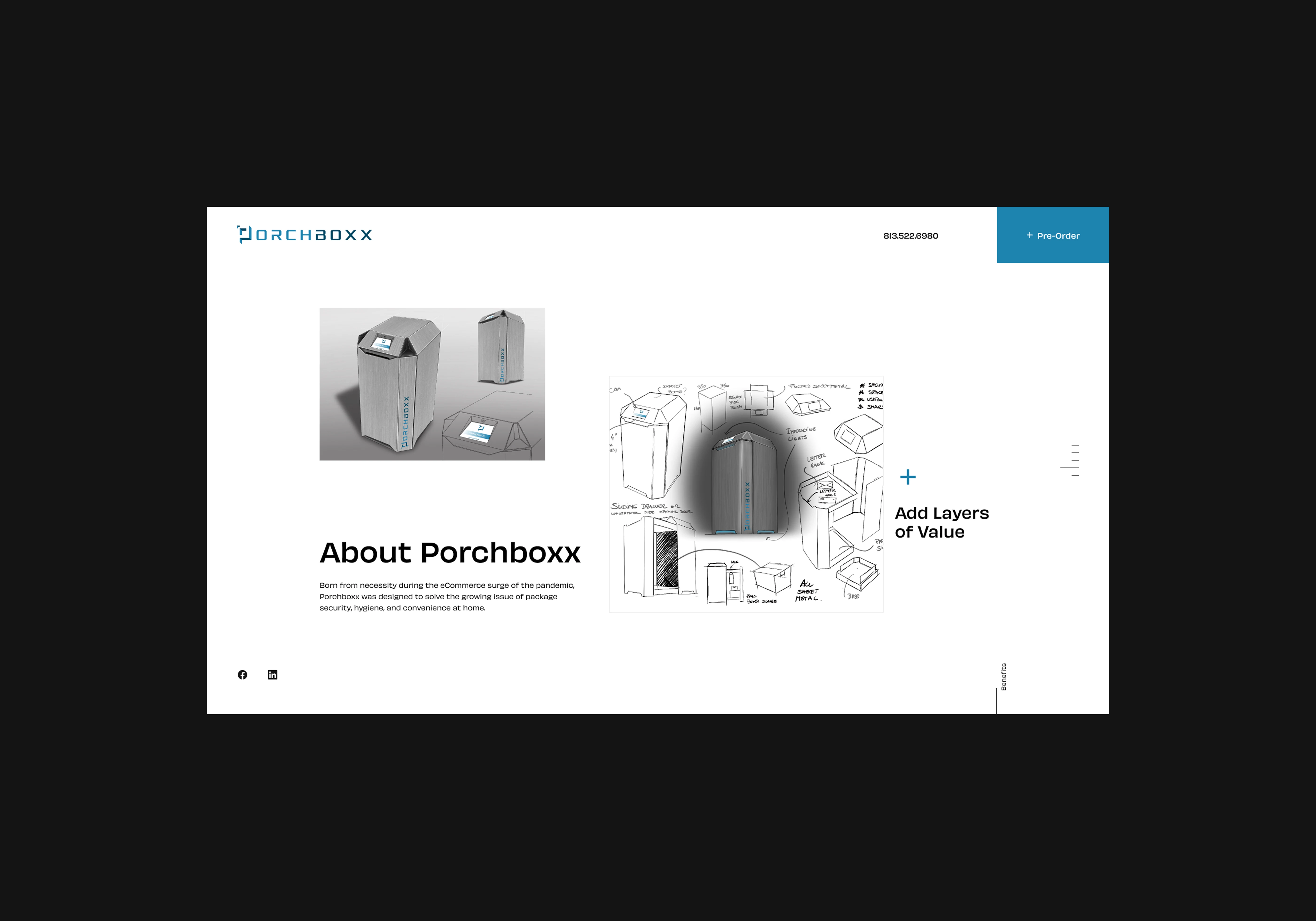 A conversion-focused landing page and interface designed to educate users on secure, hygienic package delivery—driving early adopter trust and action.