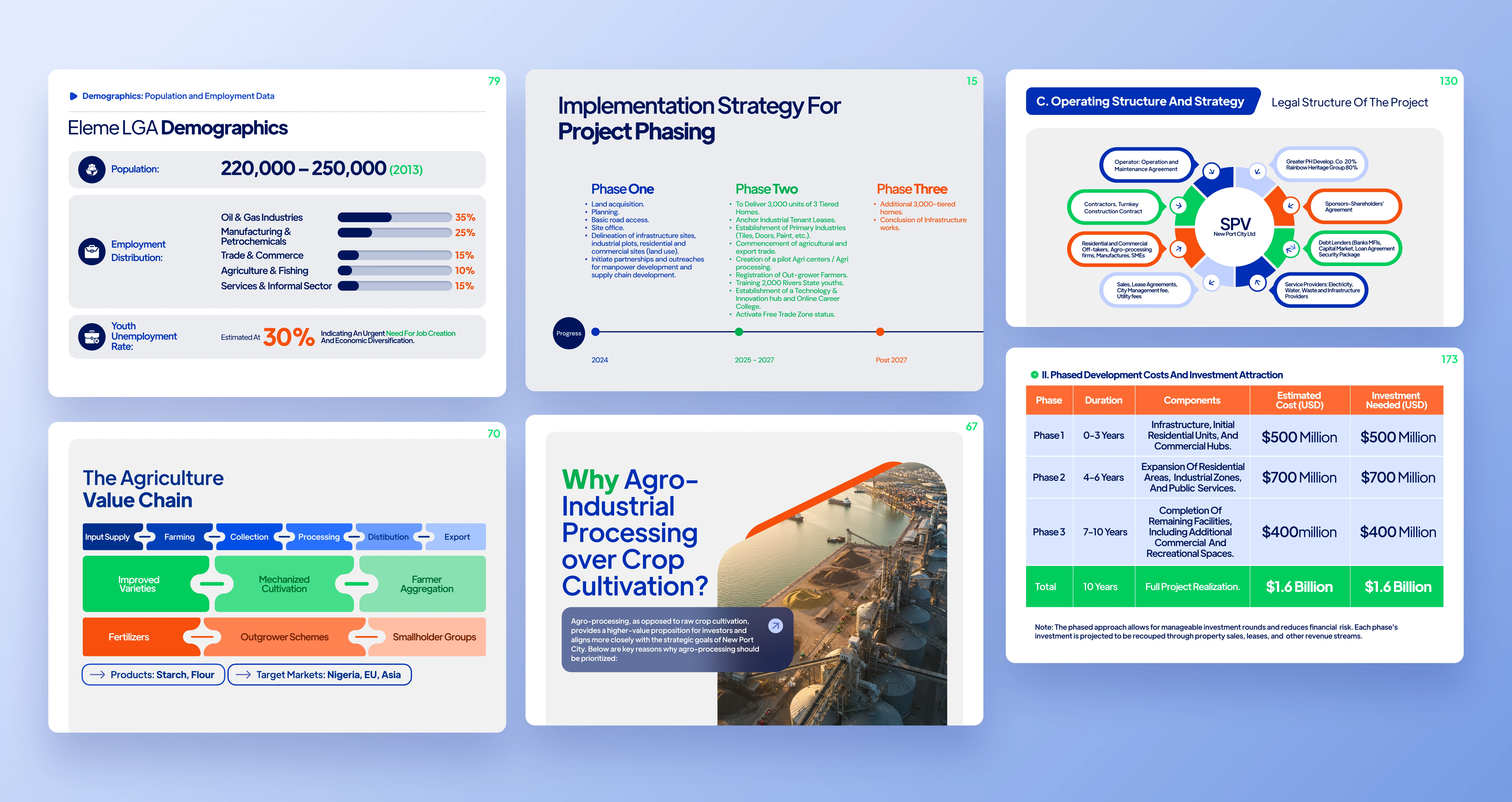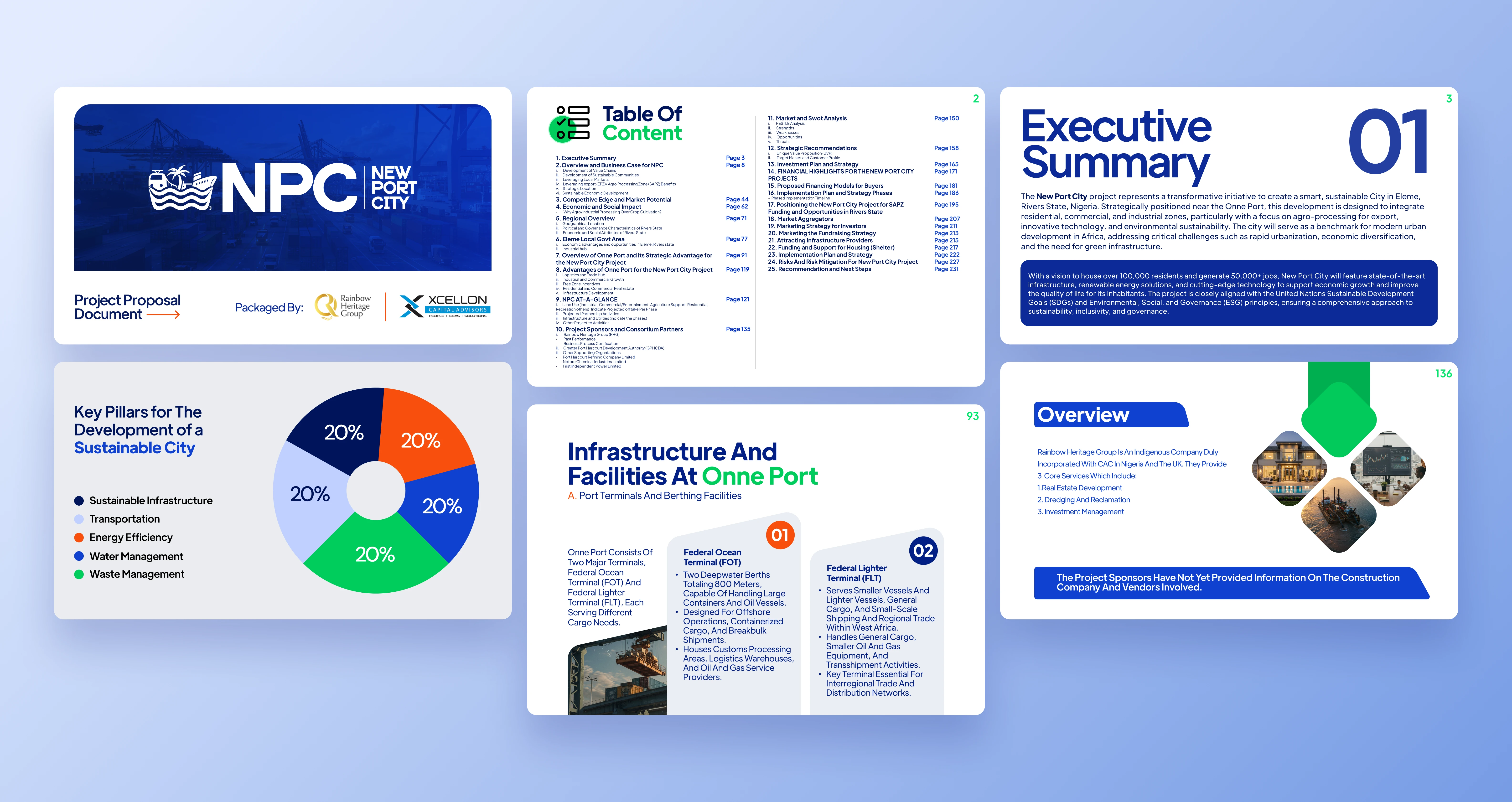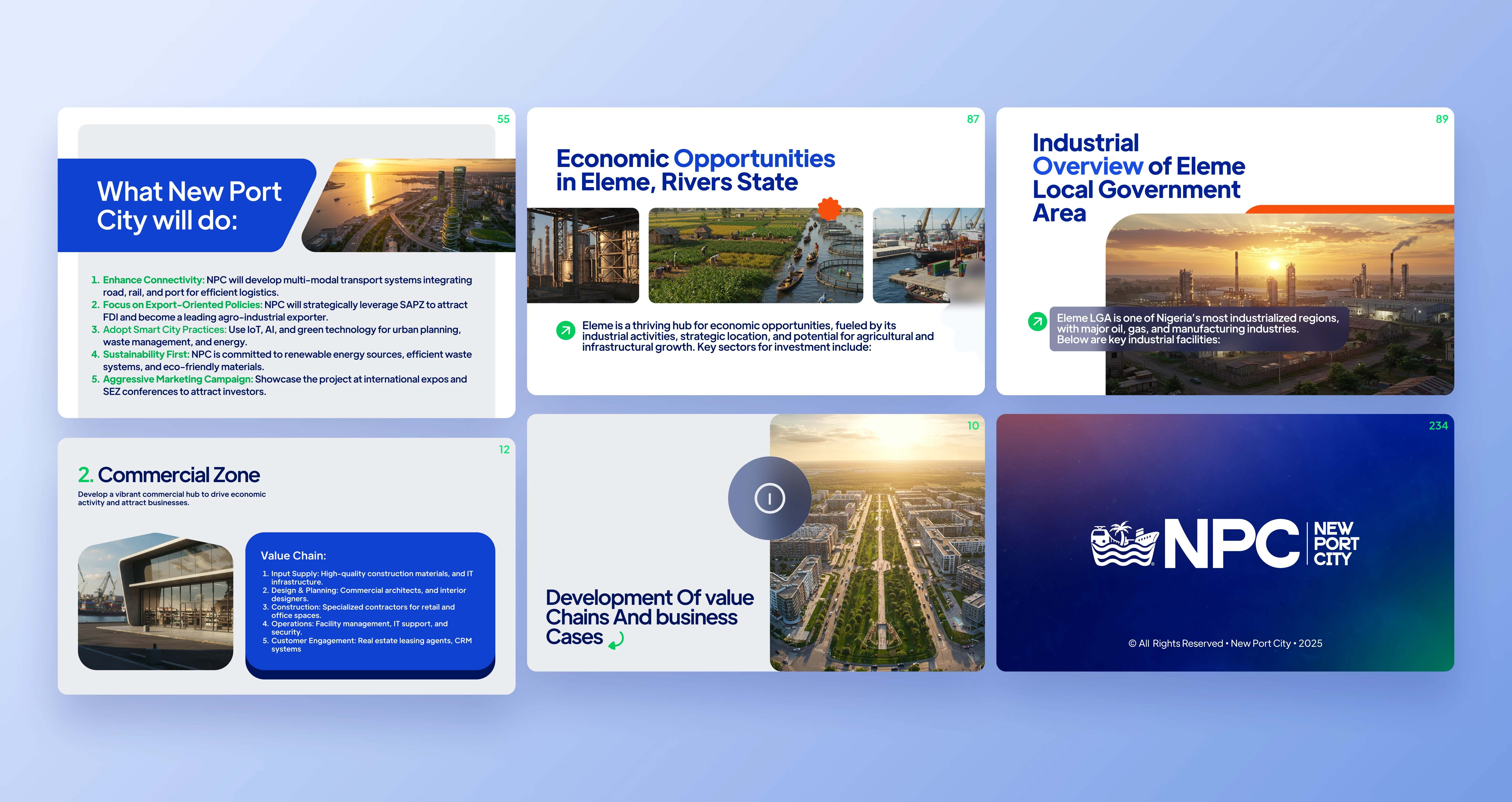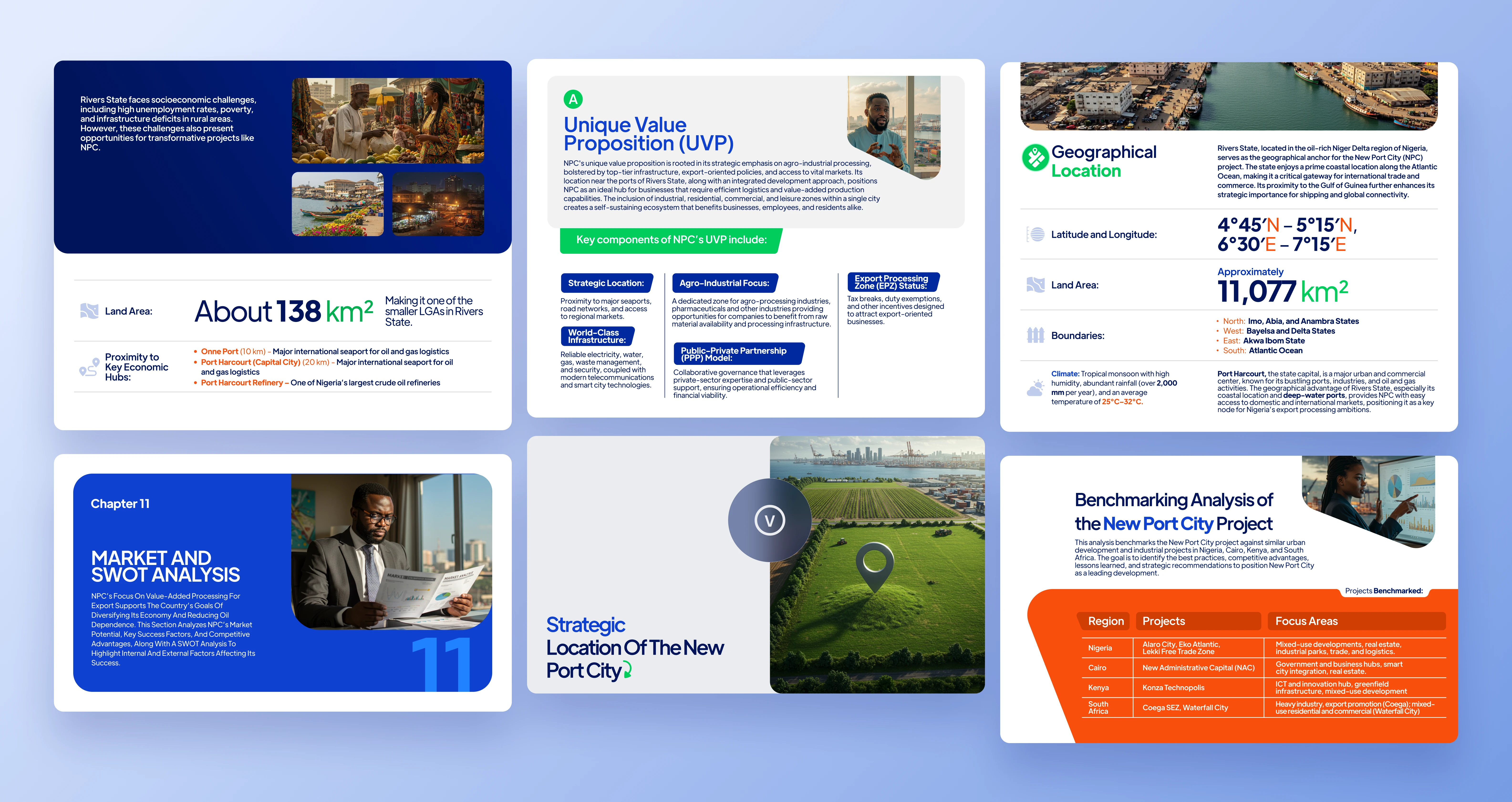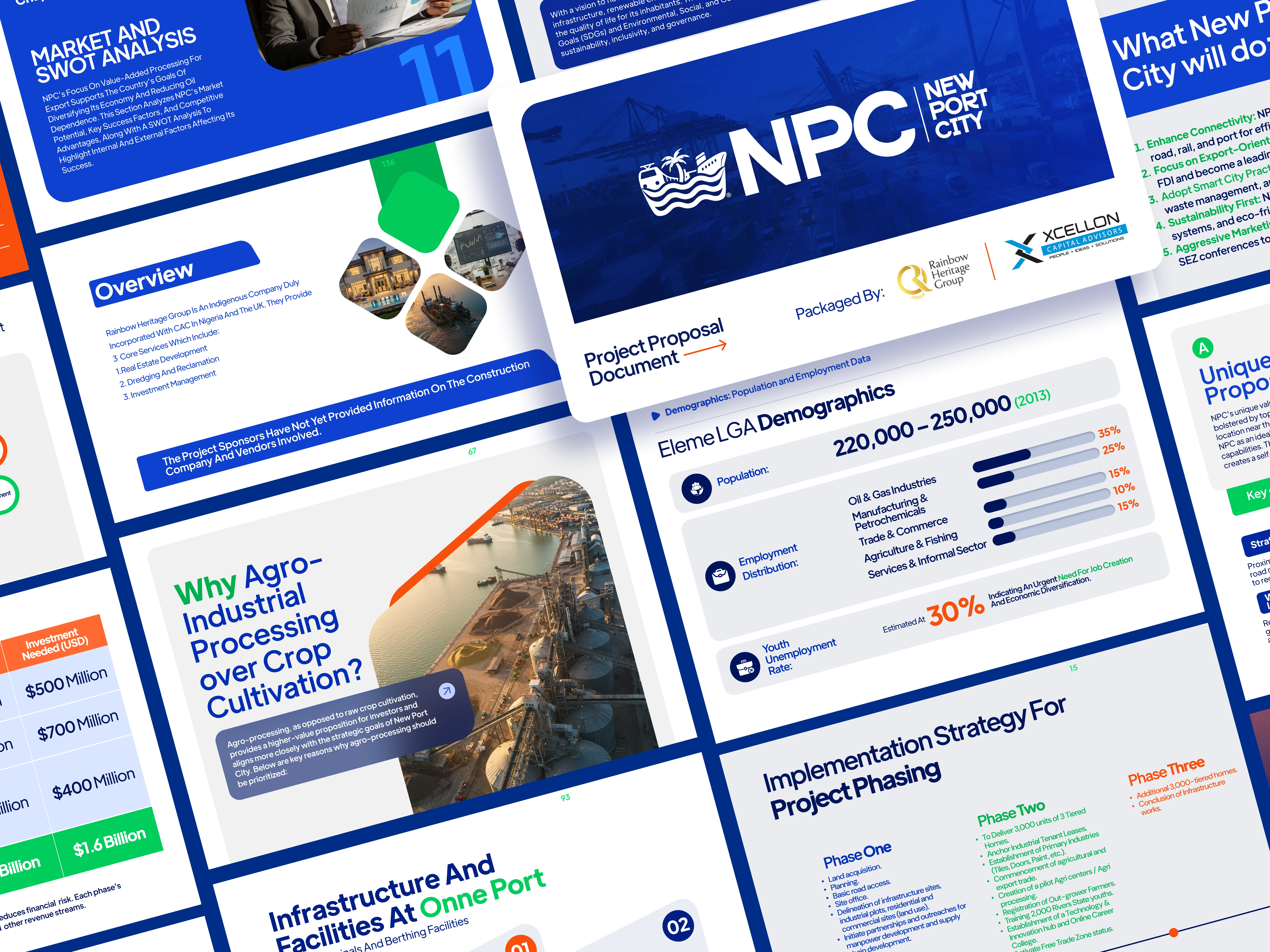 Designed New Port City Nigeria pitch deck, securing $38M Series A with data-driven ROI, timeline & team highlights; project underway 🚀.
